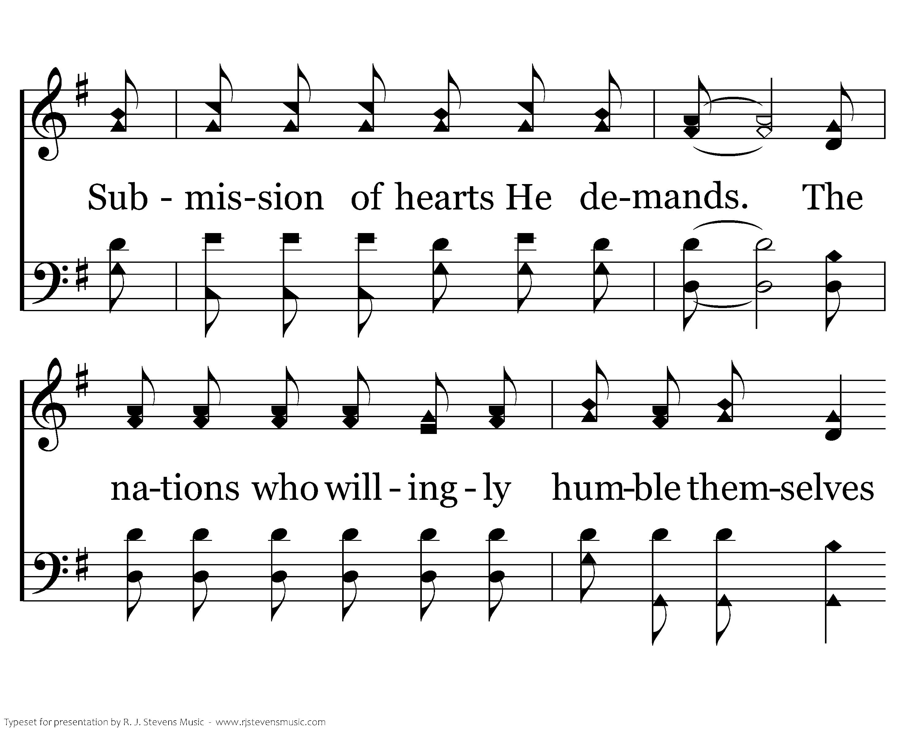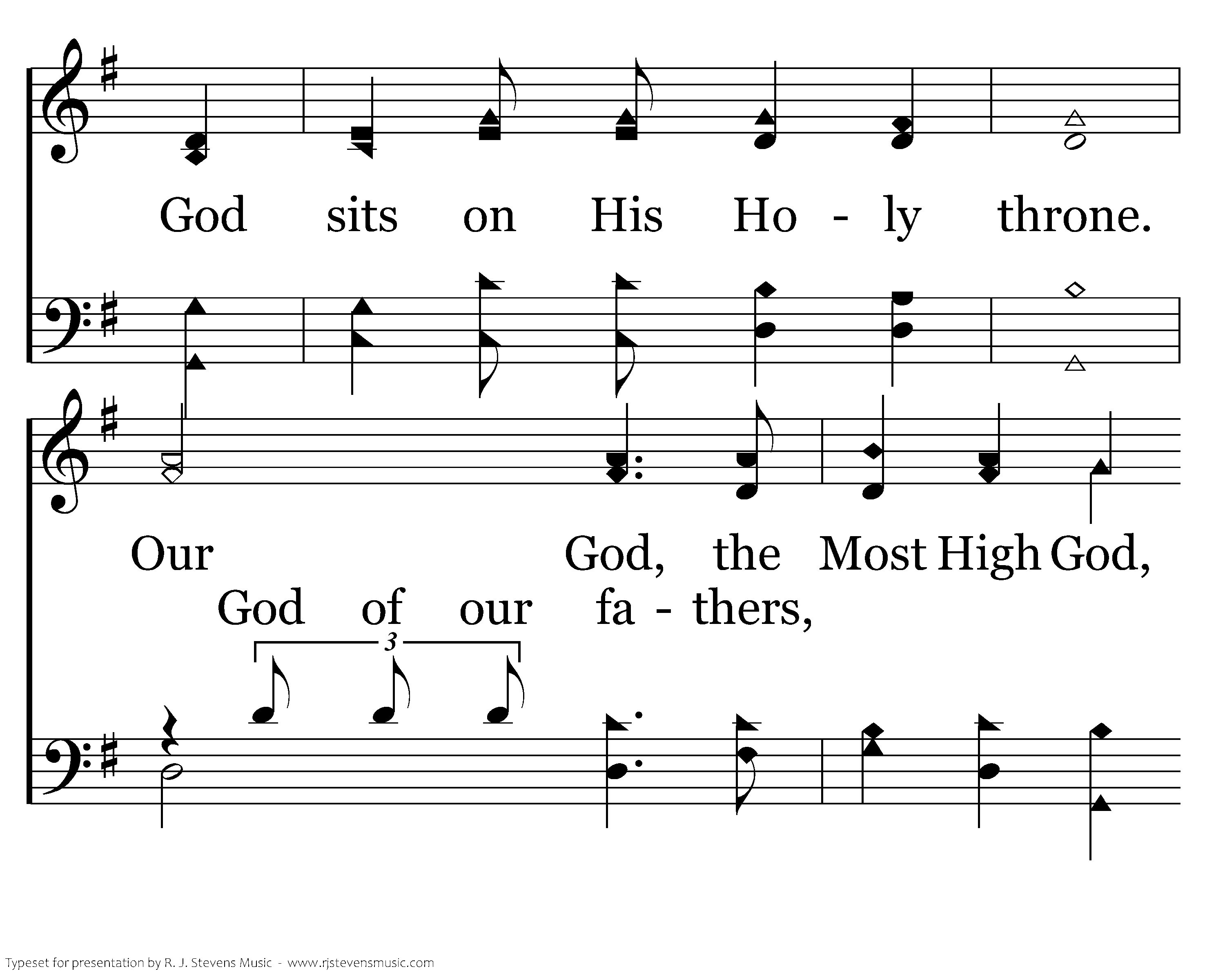 God reigns over the nations; God sits on His Holy throne. Our God, the Most High God, doth rule in the kingdom of men. God of our fathers, The proud He collapses, the lowly He saves, Submission of hearts He demands. The nations who willingly humble themselves Will be the dominions that stand.