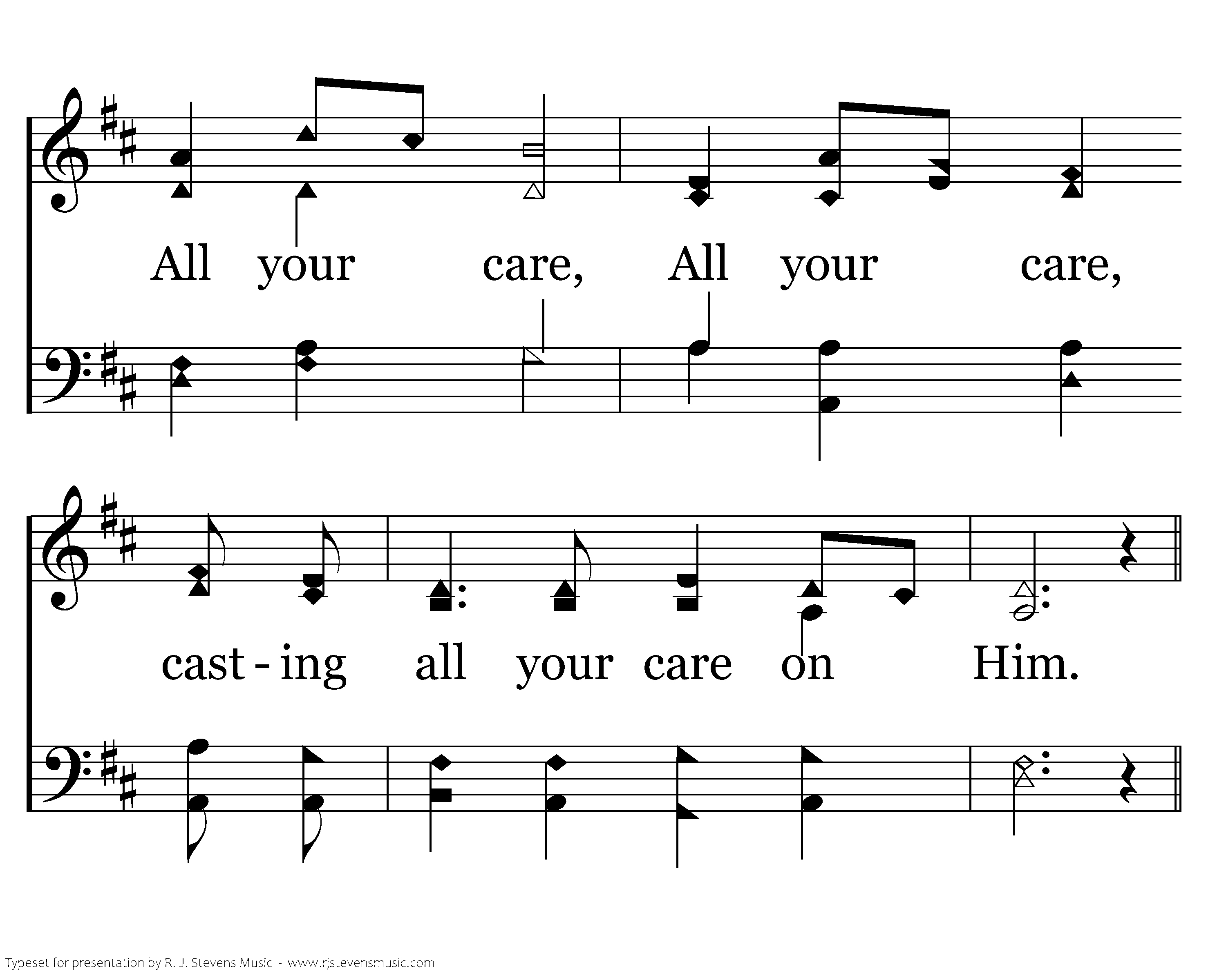 All your care, All your care, Casting all your care on Him. All your care, All your care, casting all your care on Him.