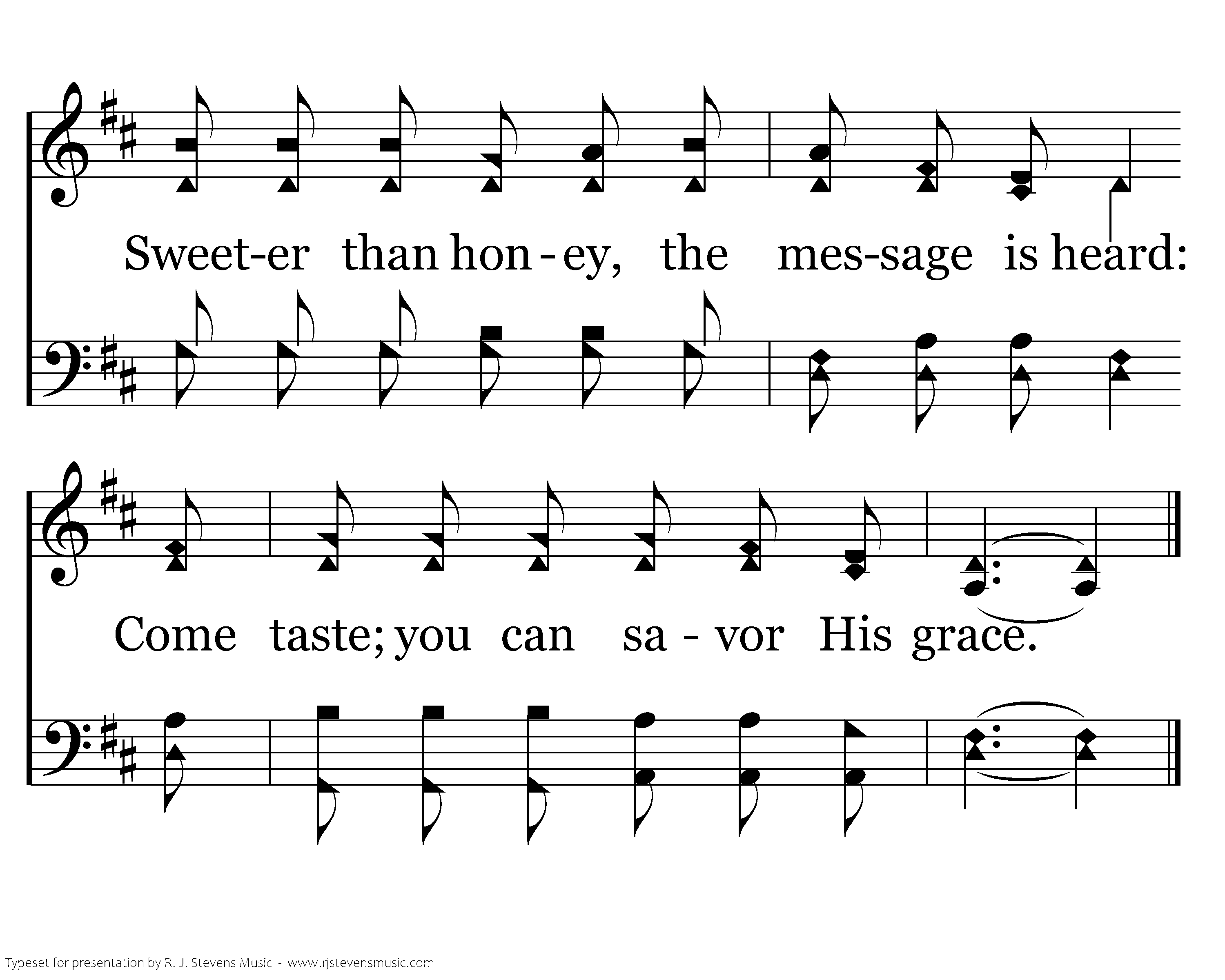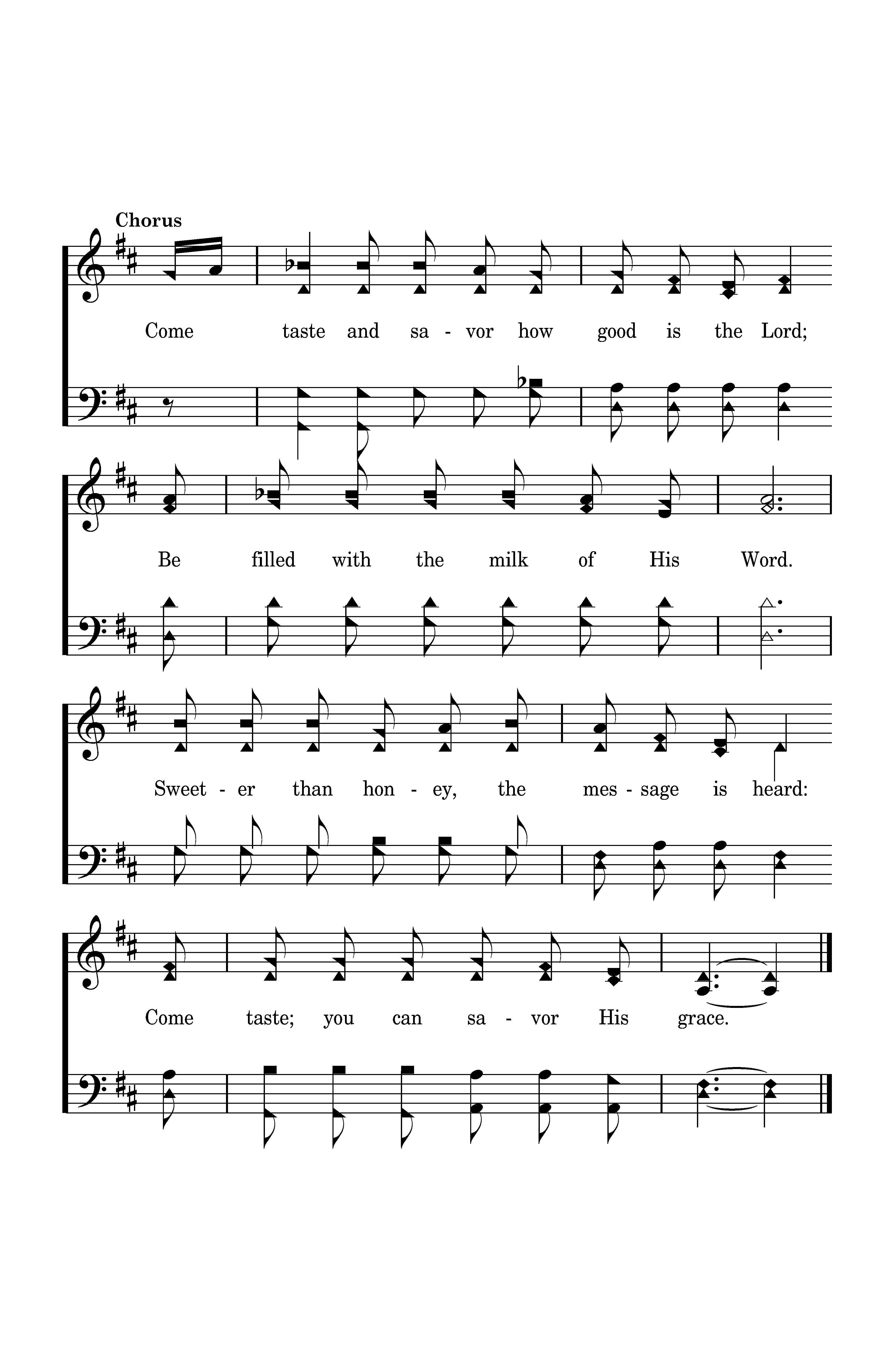 Come taste and savor how good is the Lord; Be filled with the milk of His Word. Sweeter than honey, the message is heard: Come taste; you can savor His grace.