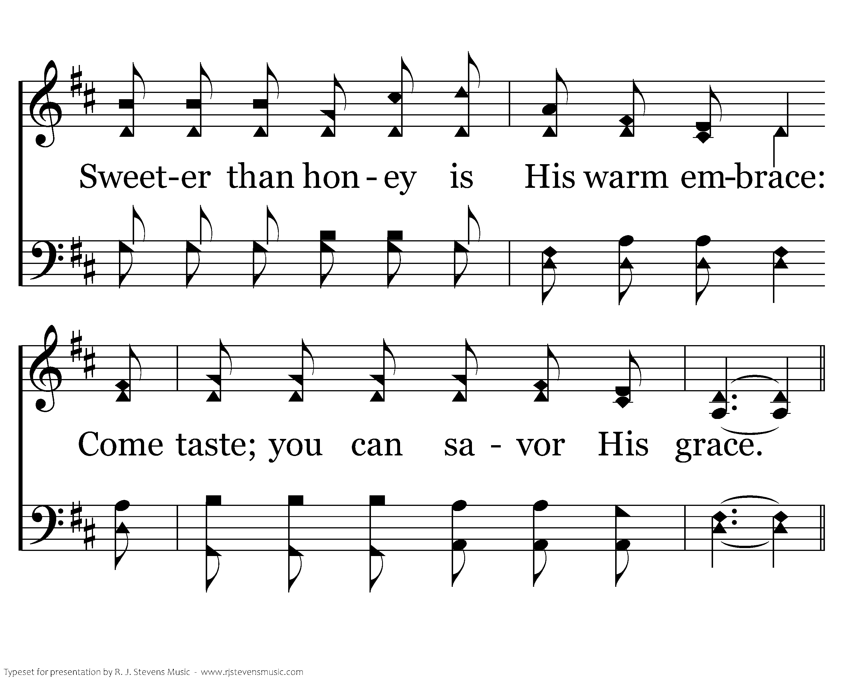 God's Son, the Word, will soon give us a place; Our thirst quenched, we've finished the race. Sweeter than honey is His warm embrace: Come taste; you can savor His grace.