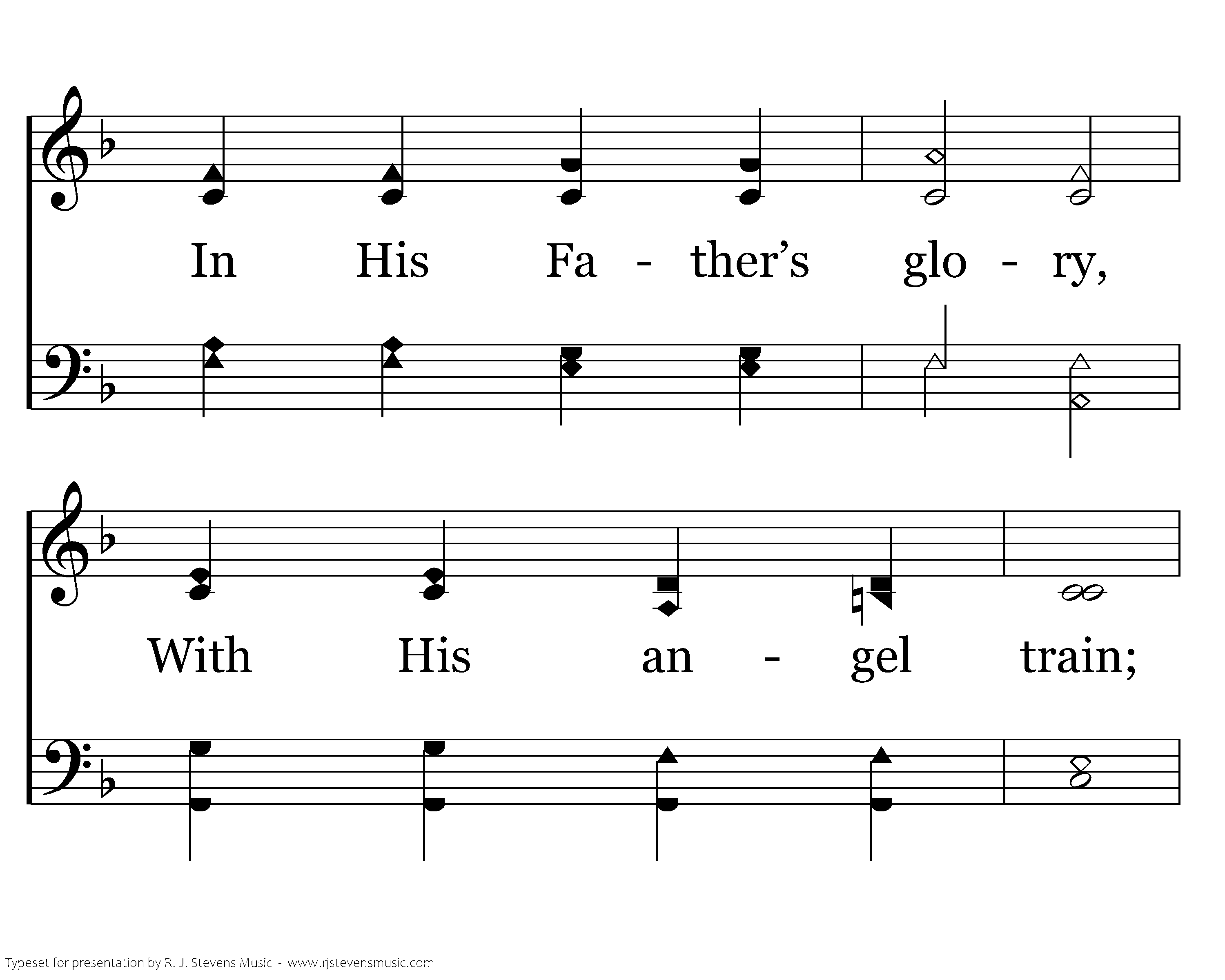 Christians, this Lord Jesus Shall return again in His Father’s glory, With His angel train; For all wreaths of empire Meet upon His brow, And our hearts confess Him King of glory now.