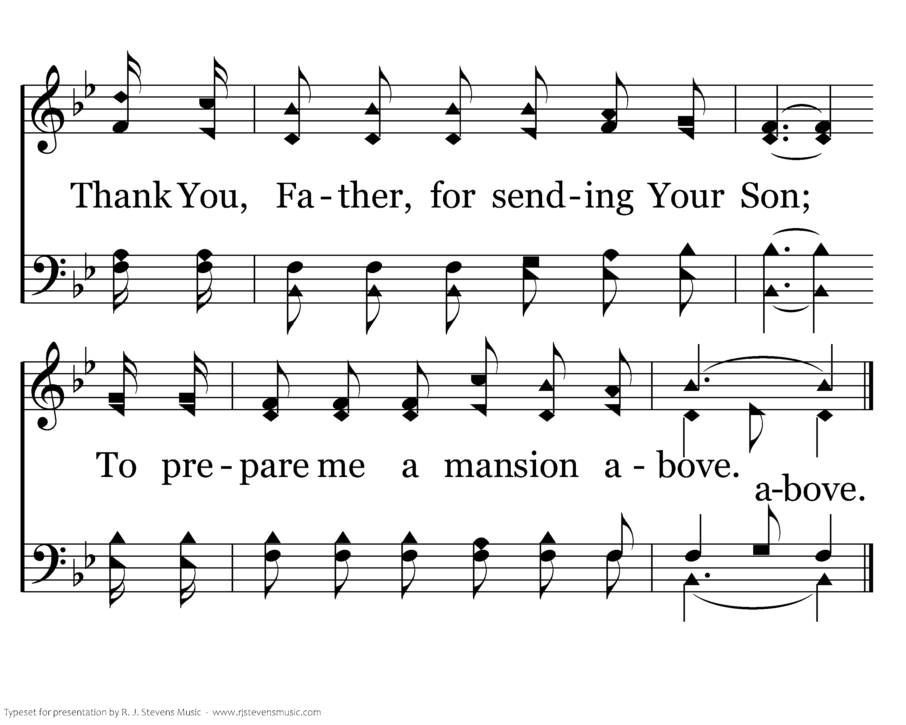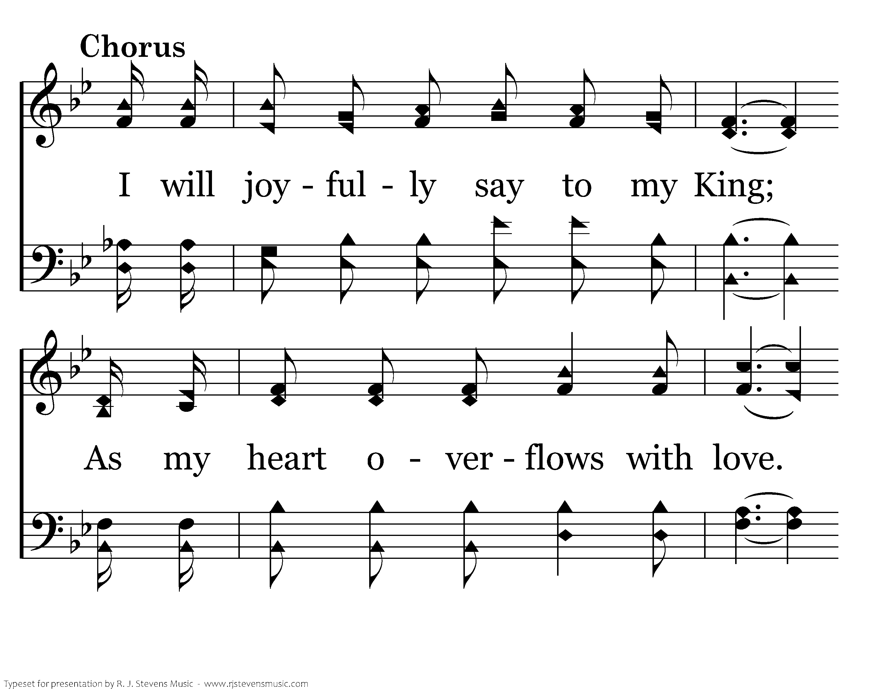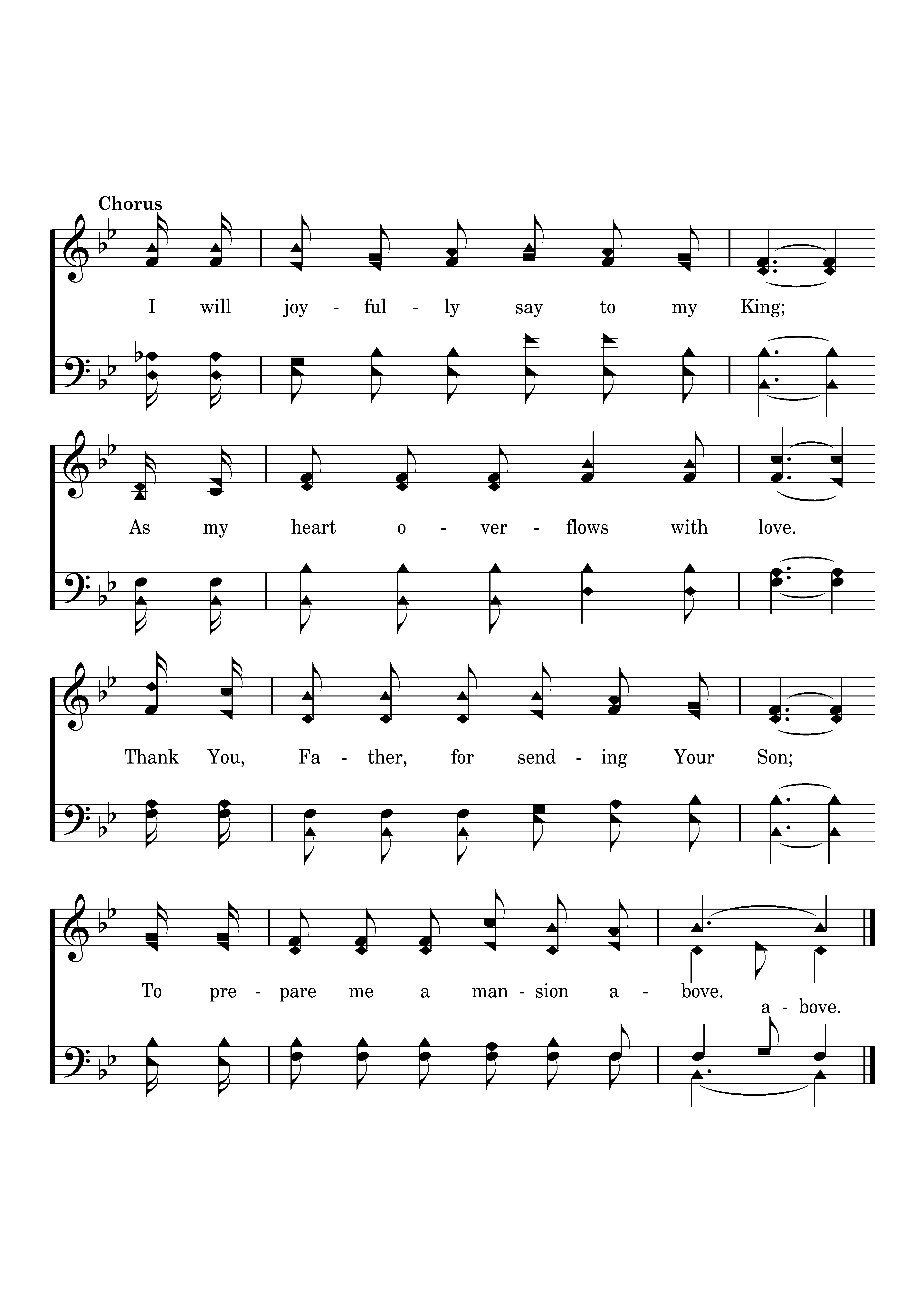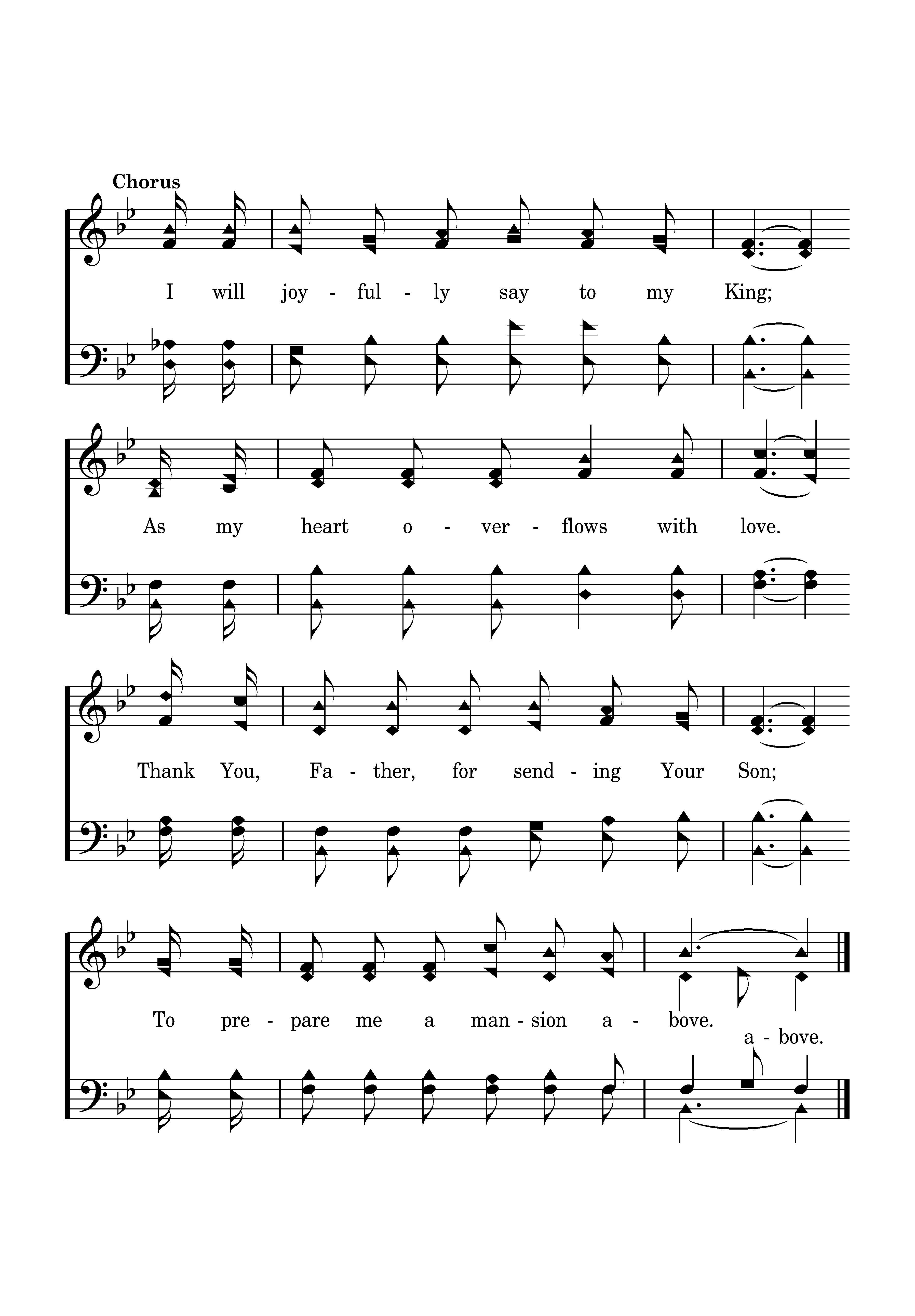 I will joyfully say to my King; As my heart overflows with sweet love. Thank You, Father, for sending Your Son; To prepare me a mansion above.