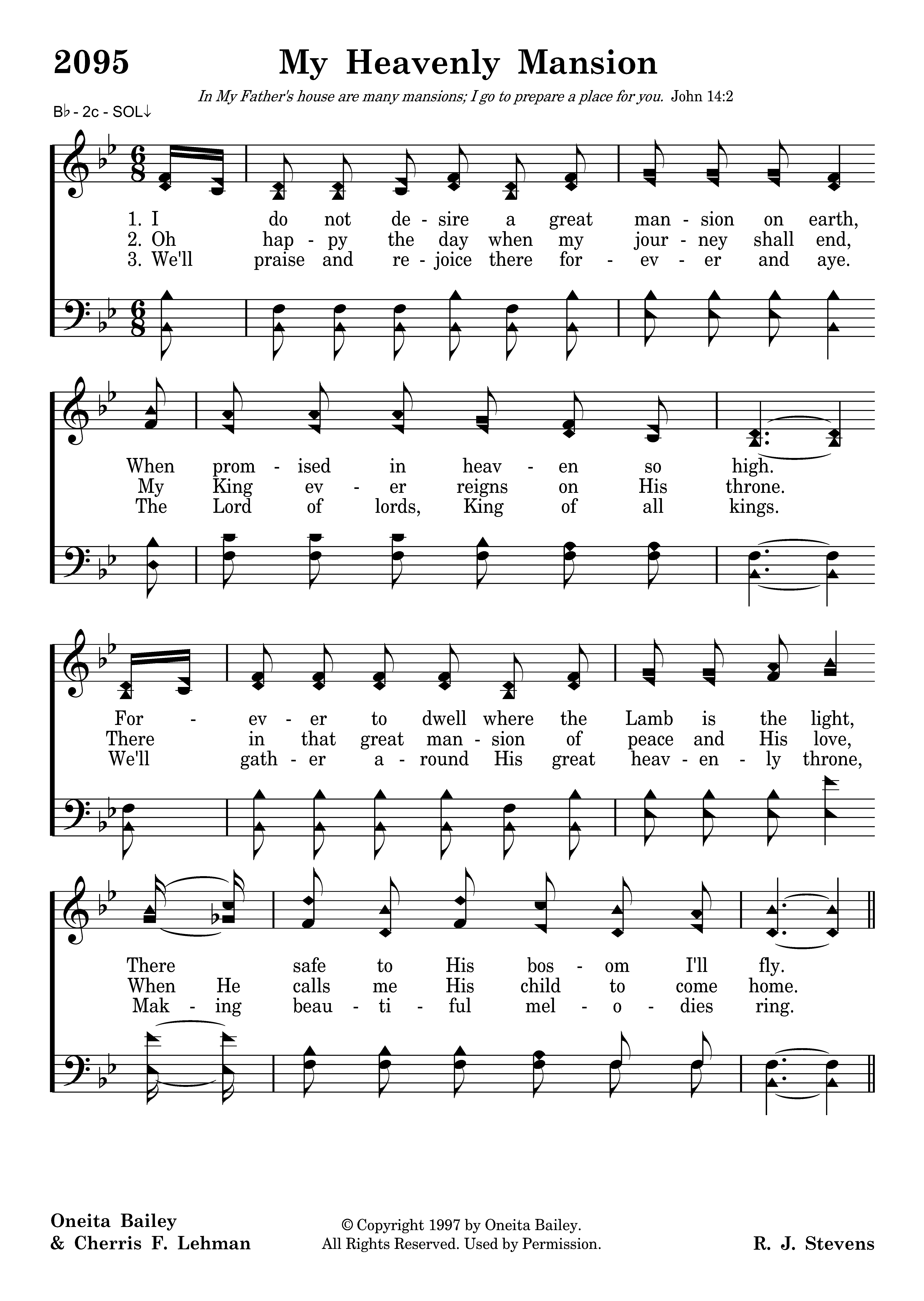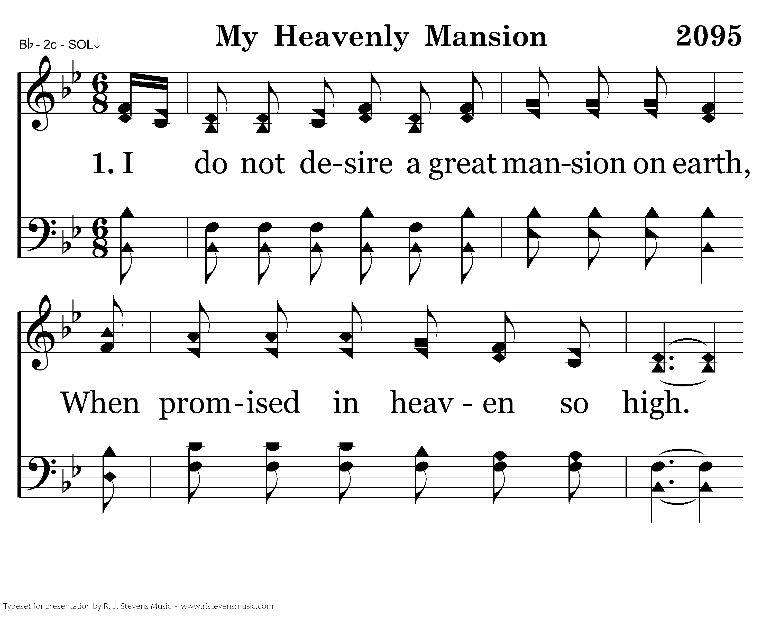 I do not desire a great mansion on earth, When promised in heaven so high. Forever to dwell where the Lamb is the light, There safe to His bosom I'll fly.