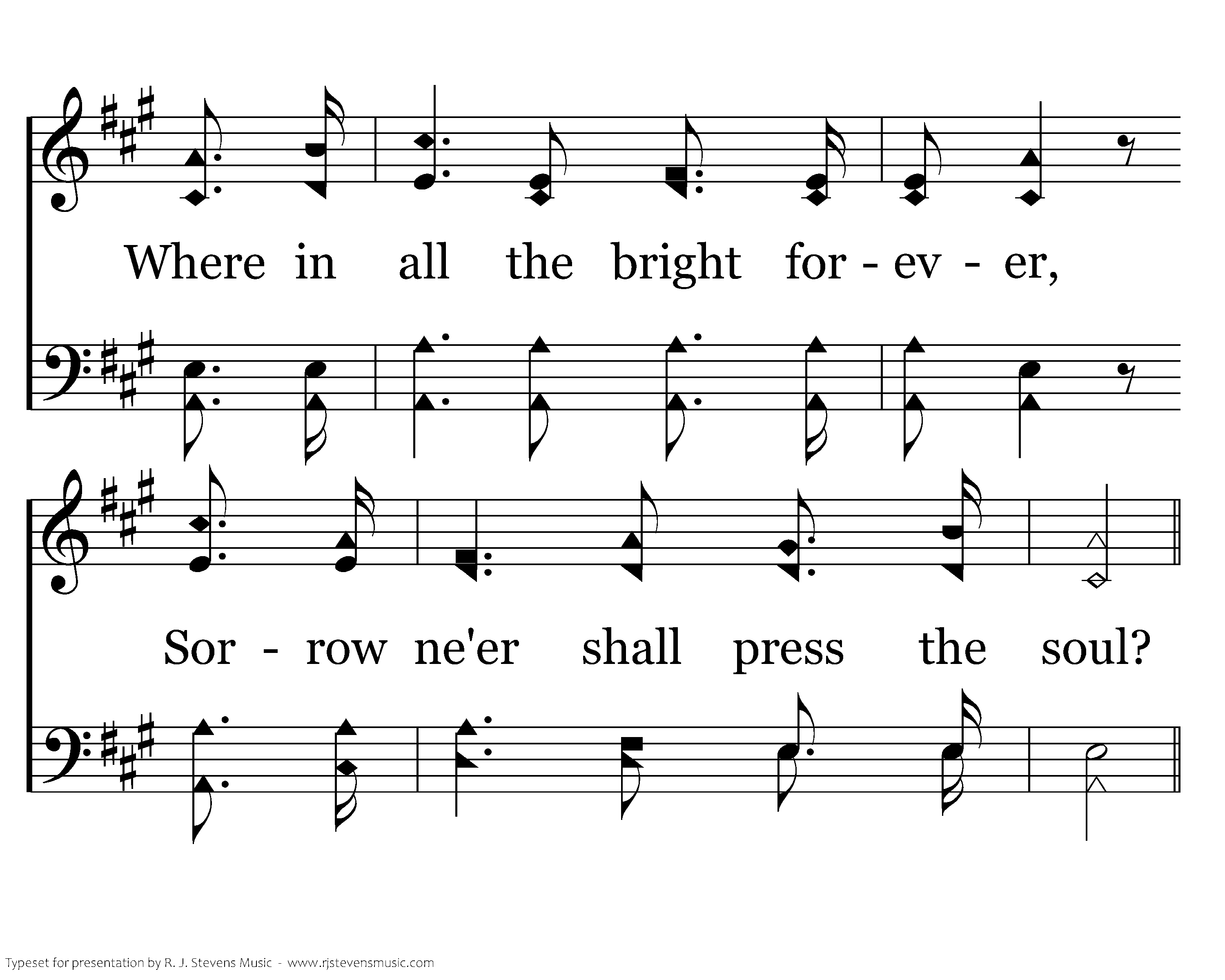 Shall we meet beyond the river, Where the surges cease to roll; Where in all the bright forever, Sorrow ne'er shall press the soul?