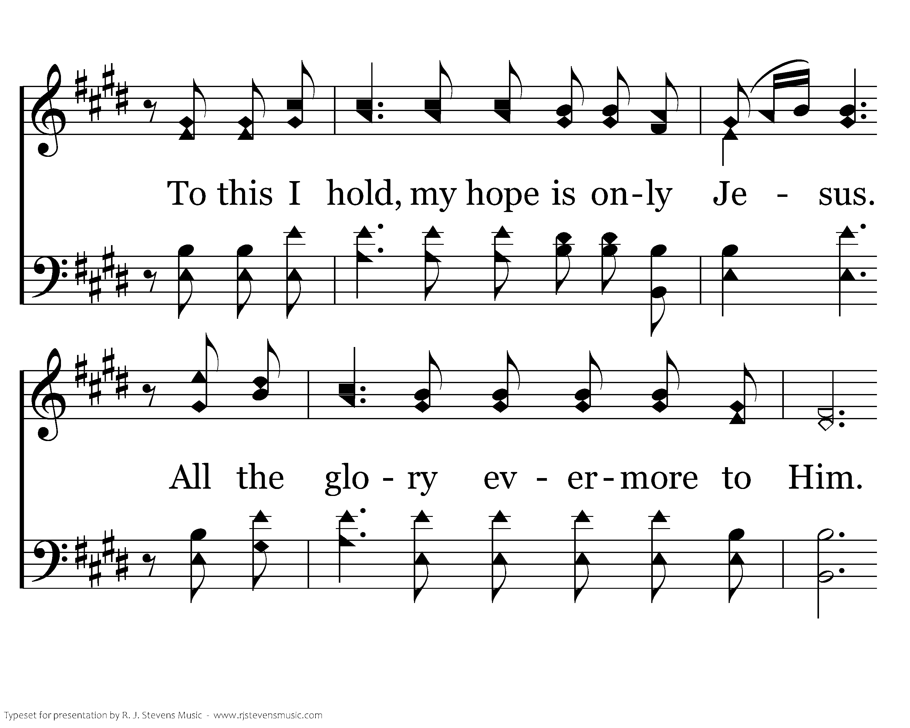 What gift of grace is Jesus my redeemer, There is no more for heaven now to give. He is my joy, my righteousness and freedom, My steadfast love, my deep and boundless peace. To this I hold, my hope is only Jesus. For my life is wholly bound to His. Oh how strange and divine, I can sing, "All is mine, Yet not I, but through Christ in me."