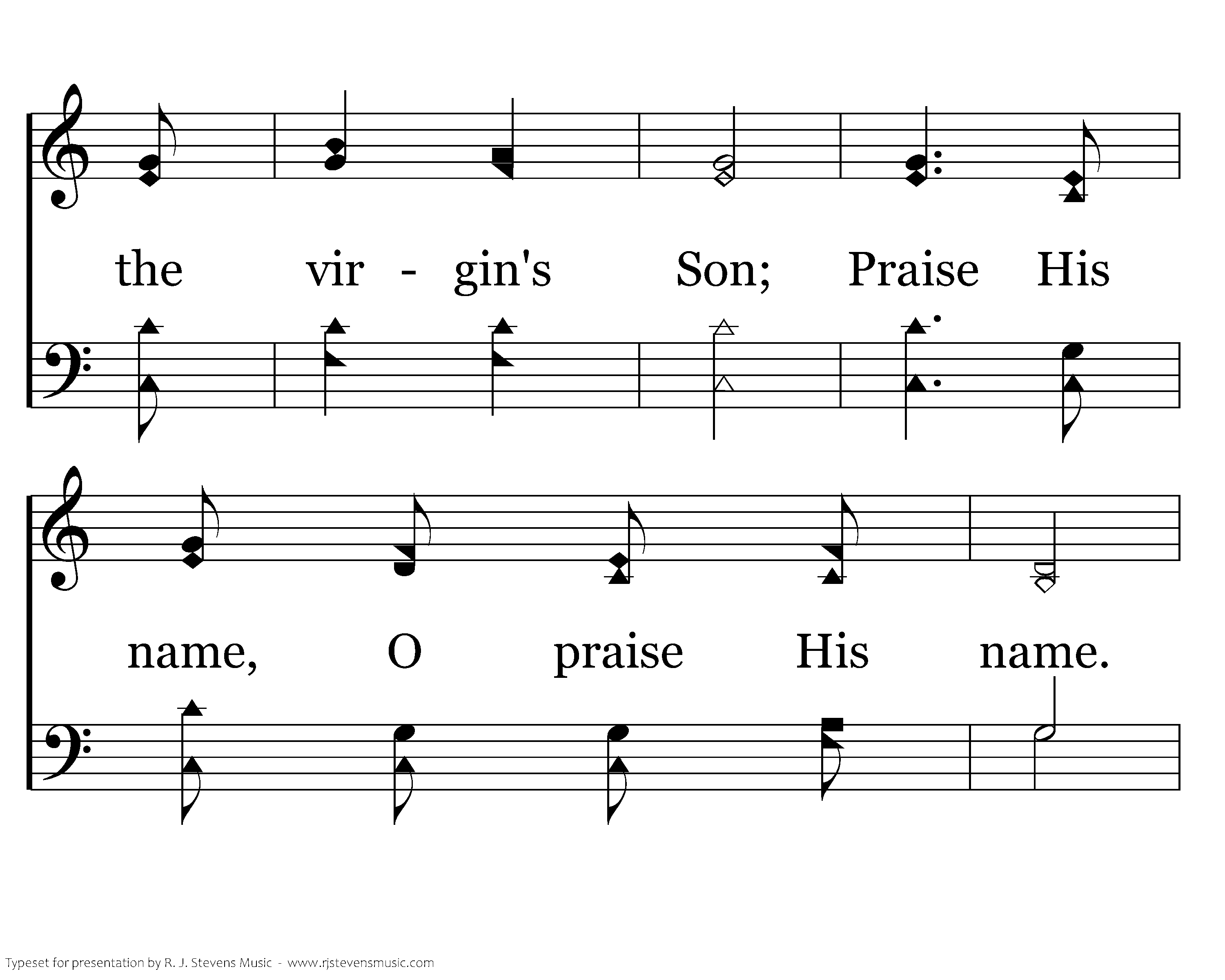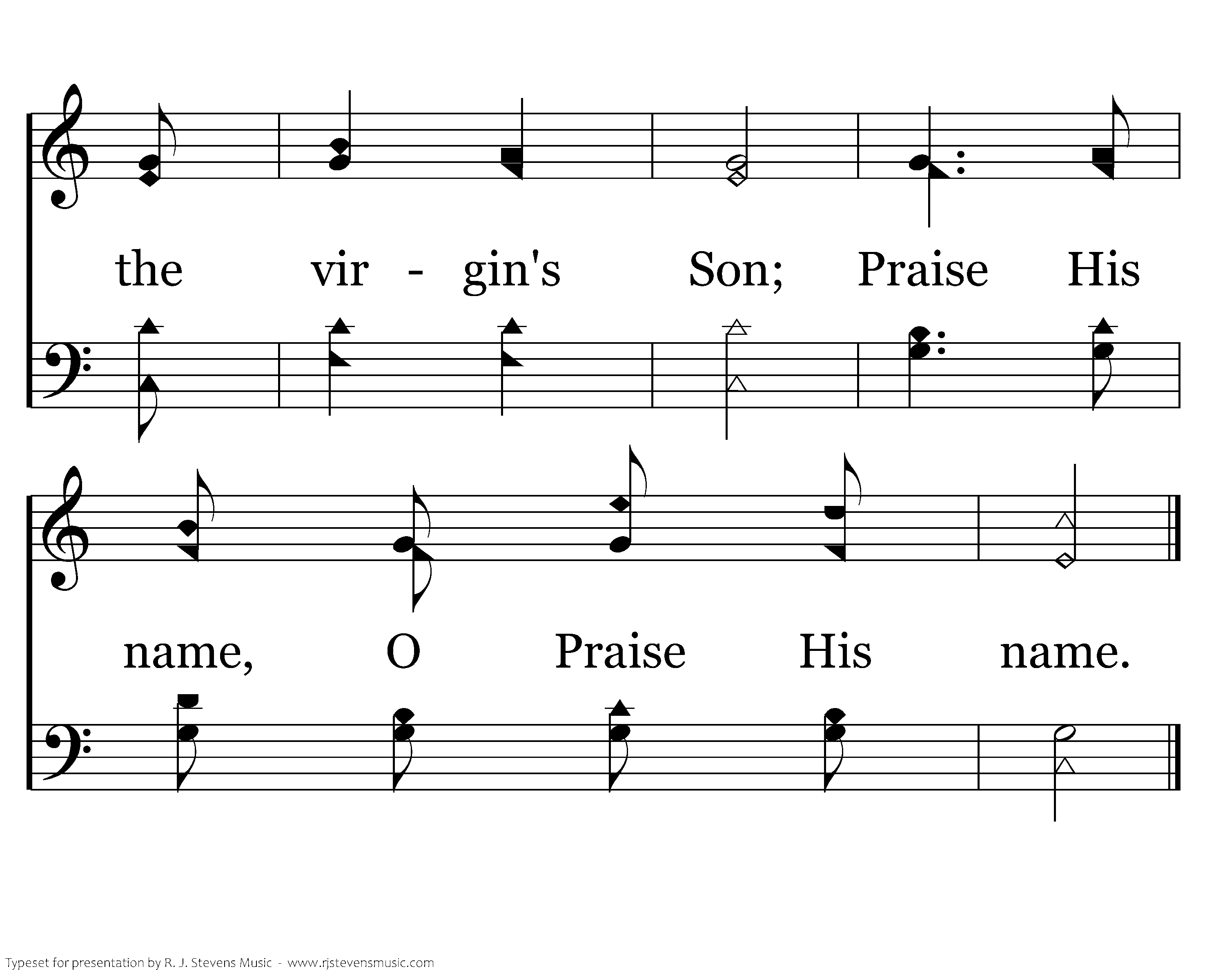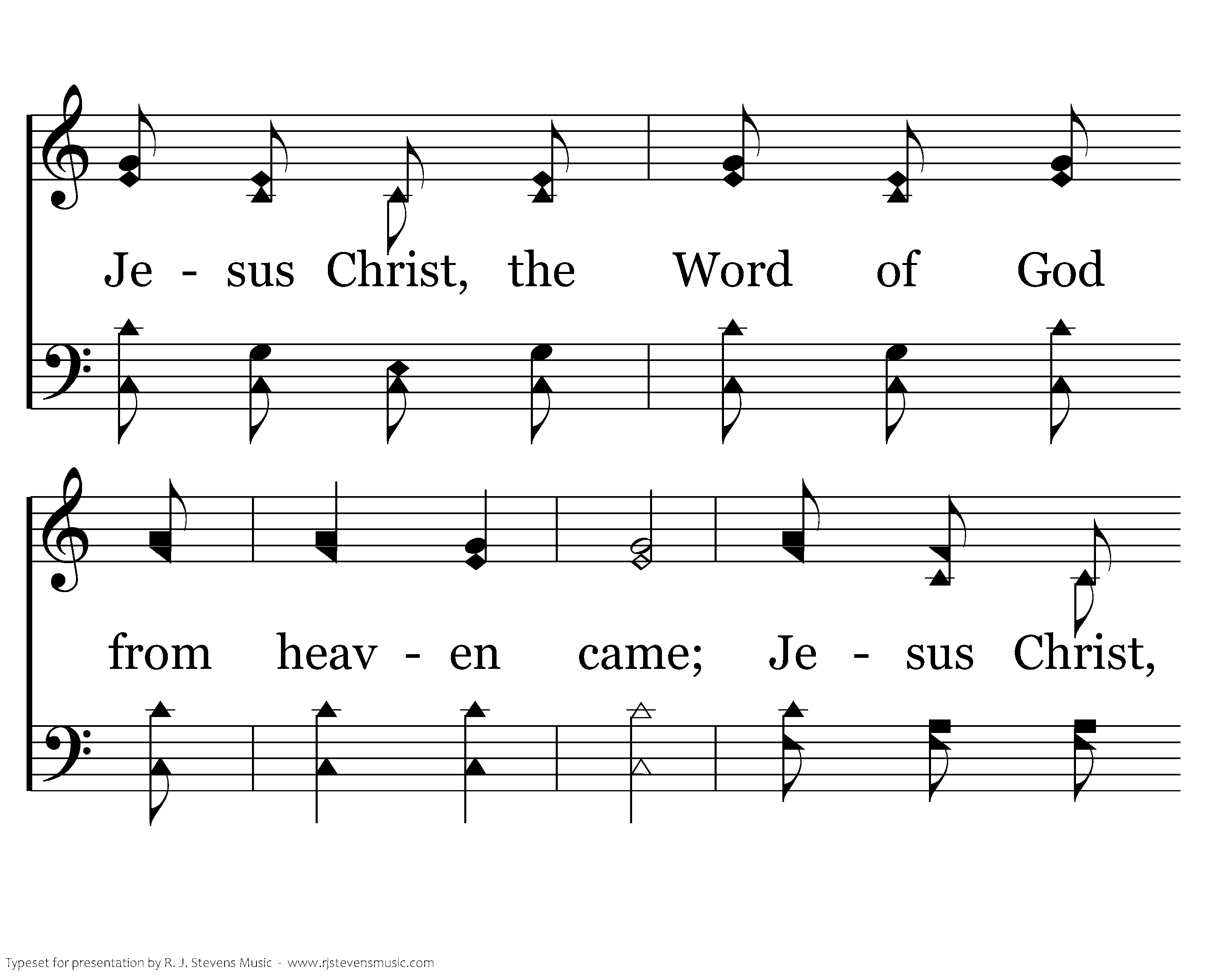 Jesus Christ, the Word of God from heaven came; Jesus Christ, the Son of God, the Promised One; Jesus Christ, the life of God, the virgin's Son; Praise His name, O praise His name. Praise His name, O Praise His name. Jesus Christ, the Word of God from heaven came; Jesus Christ, the Son of God, the Promised One; Jesus Christ, the life of God, the virgin's Son; Praise His name, O praise His name. Praise His name, O Praise His name.