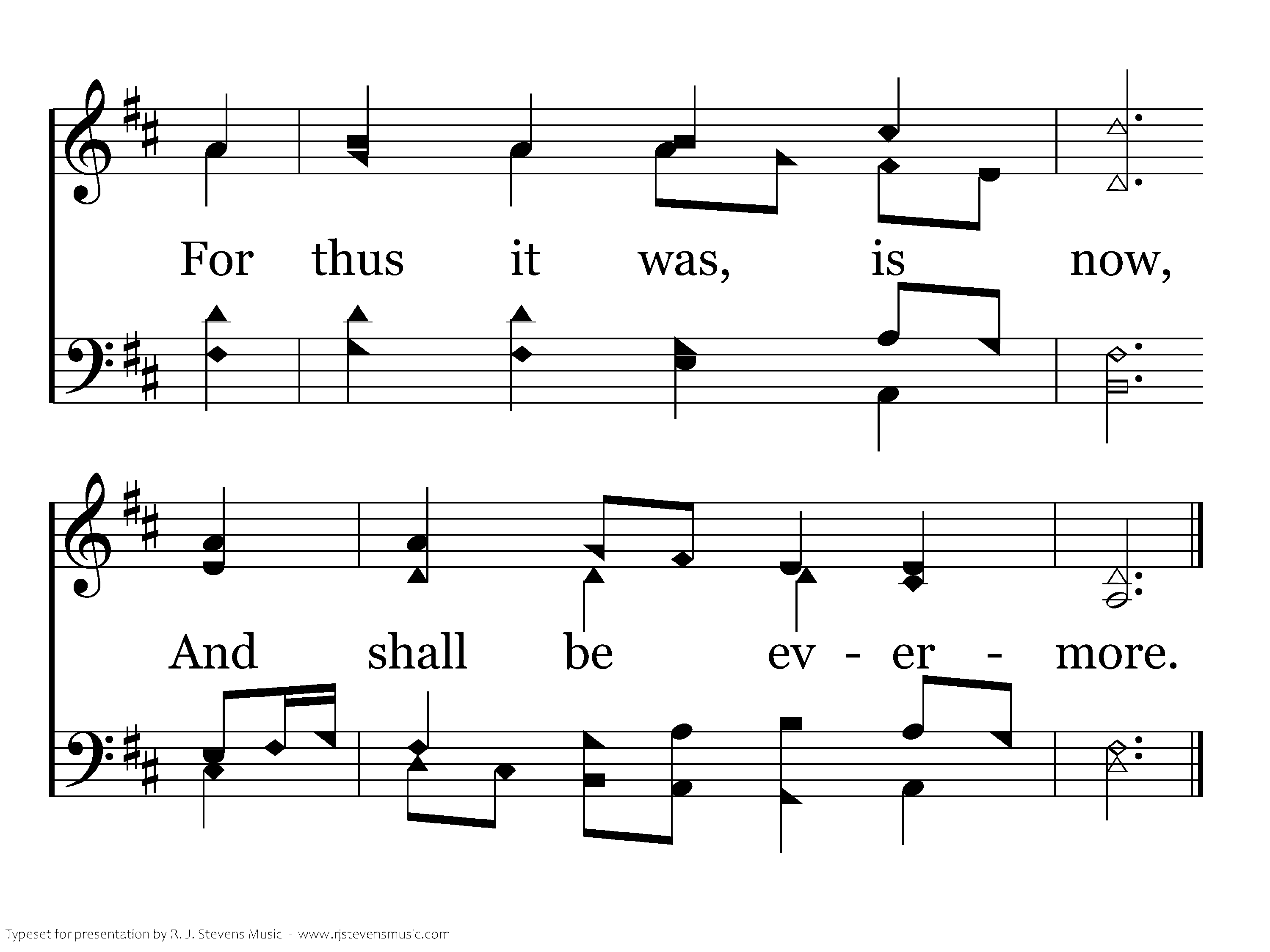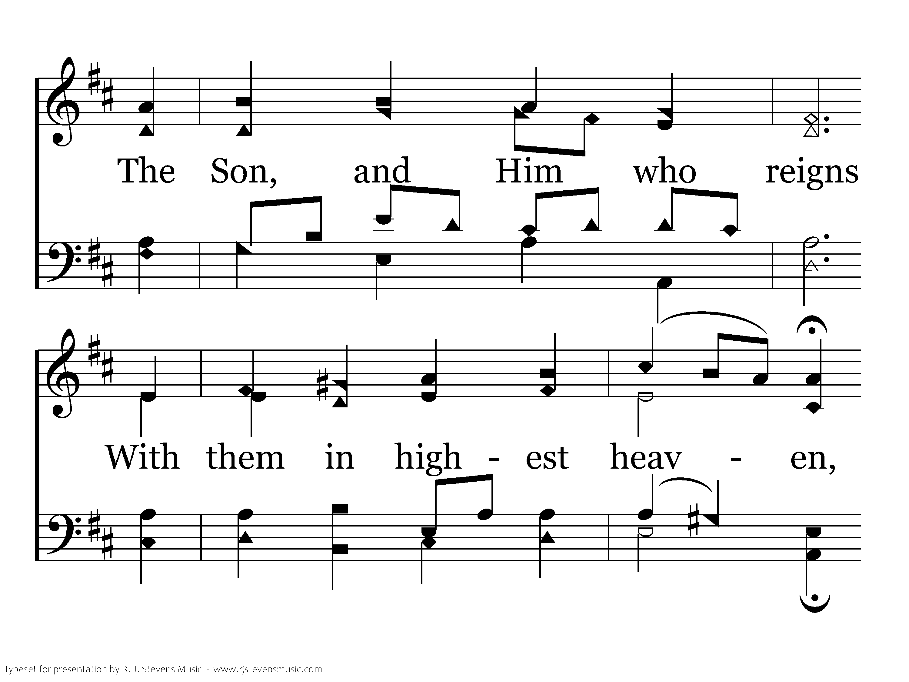 All praise and thanks to God The Father now be given, The Son, and Him who reigns With them in highest heaven, The one eternal God, Whom earth and heav'n adore; For thus it was, is now, And shall be evermore.