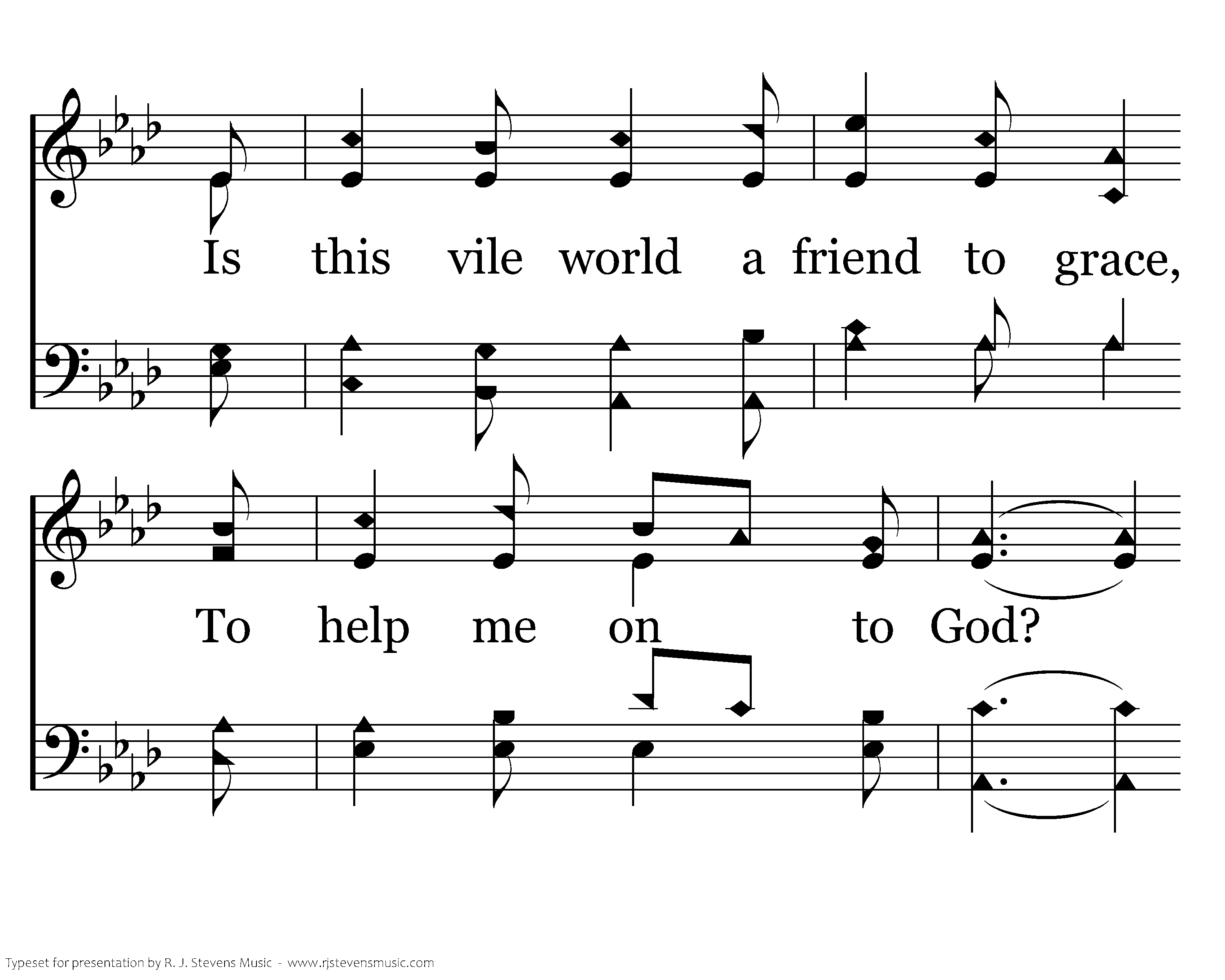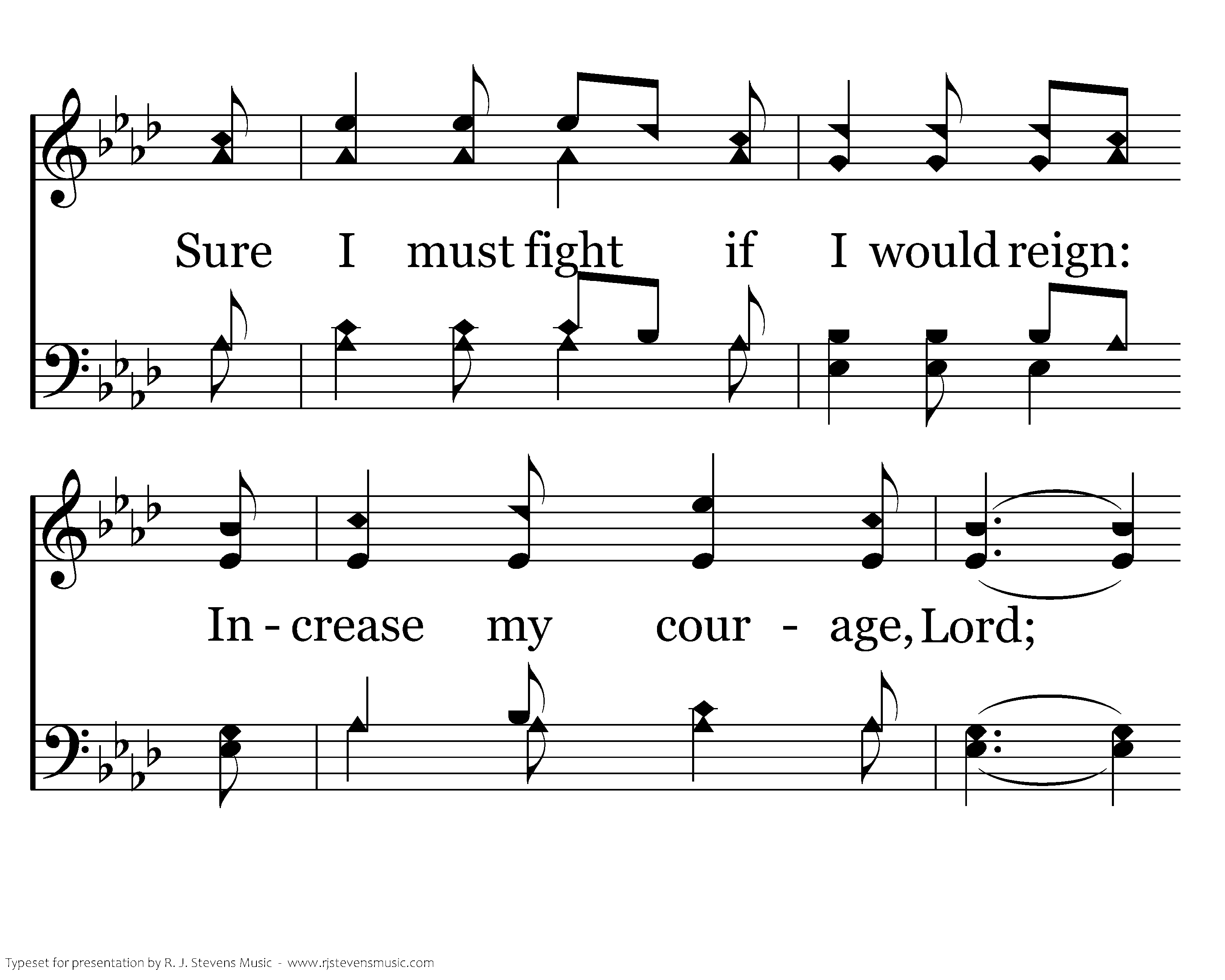 Are there no foes for me to face? Must I not stem the flood? Is this vile world a friend to grace, To help me on to God? Sure I must fight if I would reign: Increase my courage, Lord; I'll bear the toil, endure the pain, Supported by Thy word.