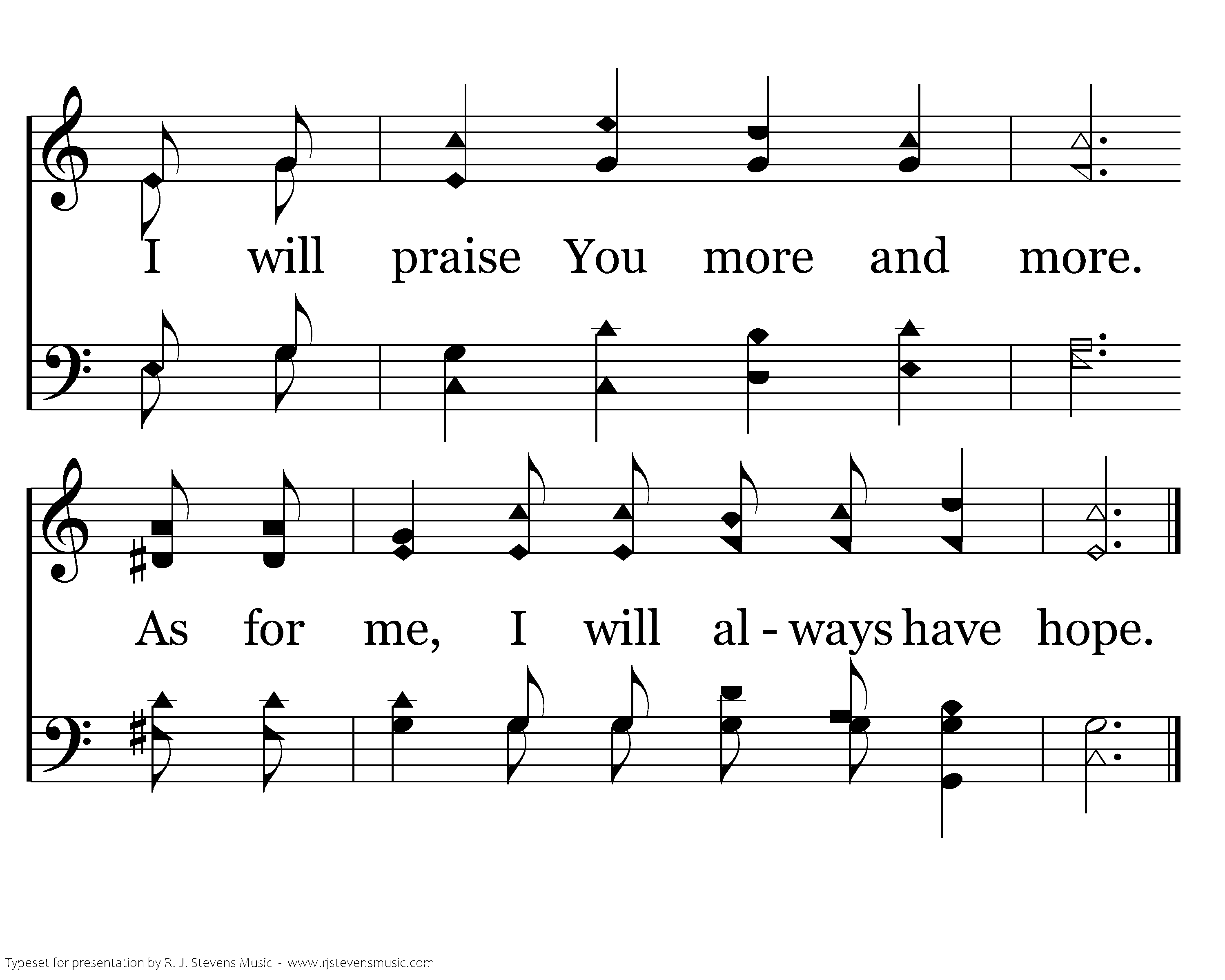 As for me, I will always have hope; As for me I will always have hope. I will praise You more and more. As for me, I will always have hope.