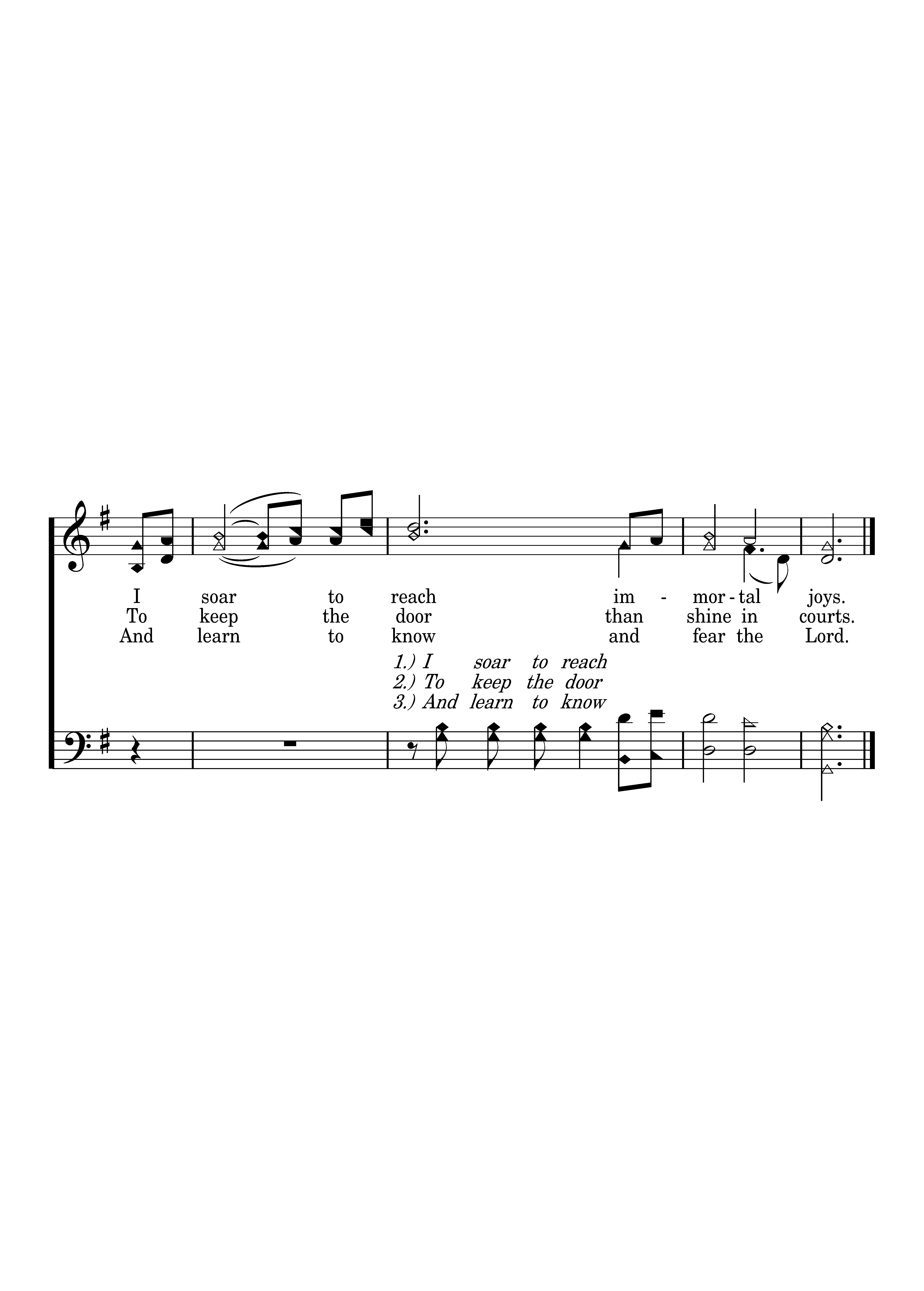 To spend one sacred day Where God and saints abide Affords diviner joy than thousand days beside; I love it more where God resorts, To keep the door than shine in courts, To keep the door than shine in courts.