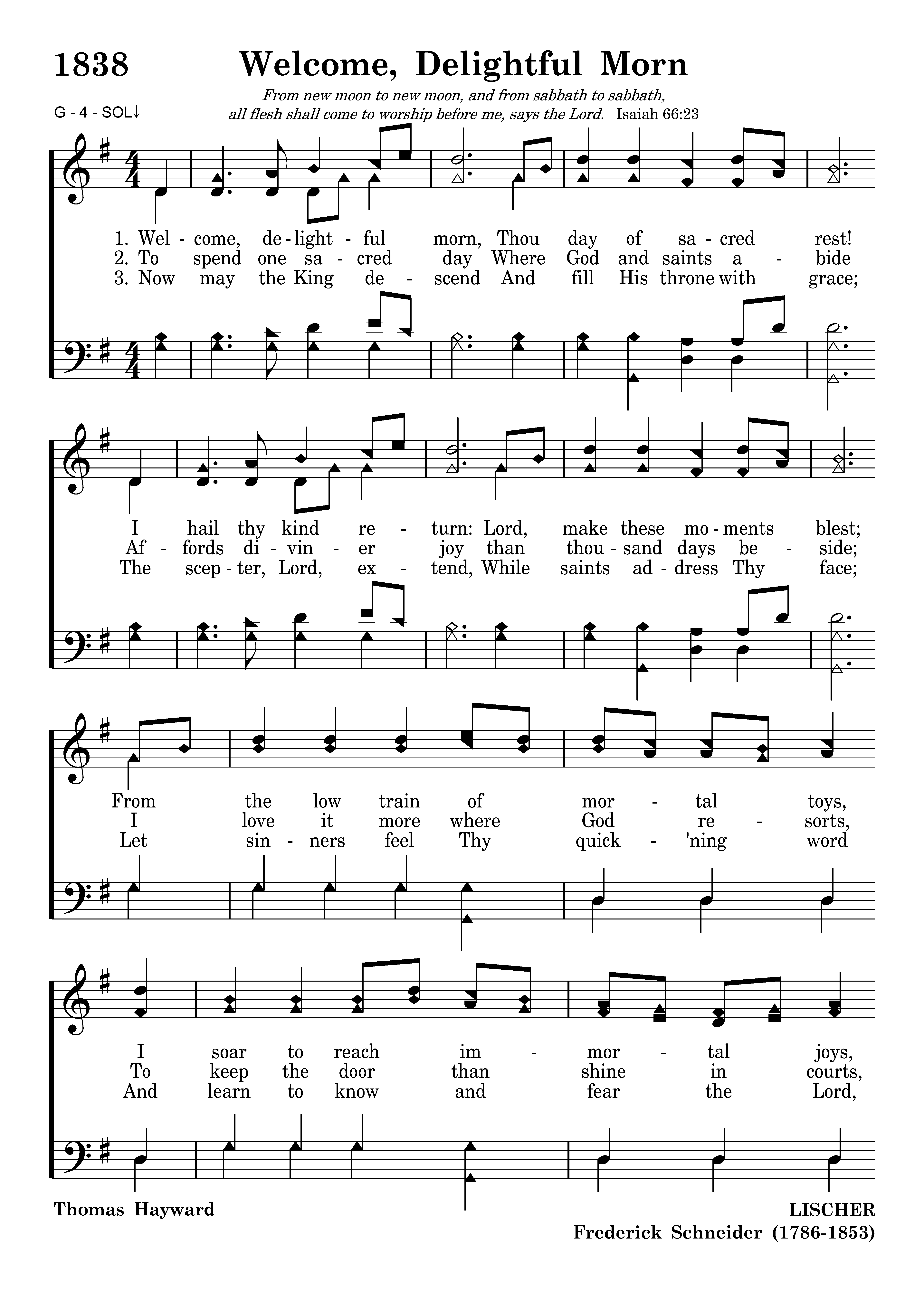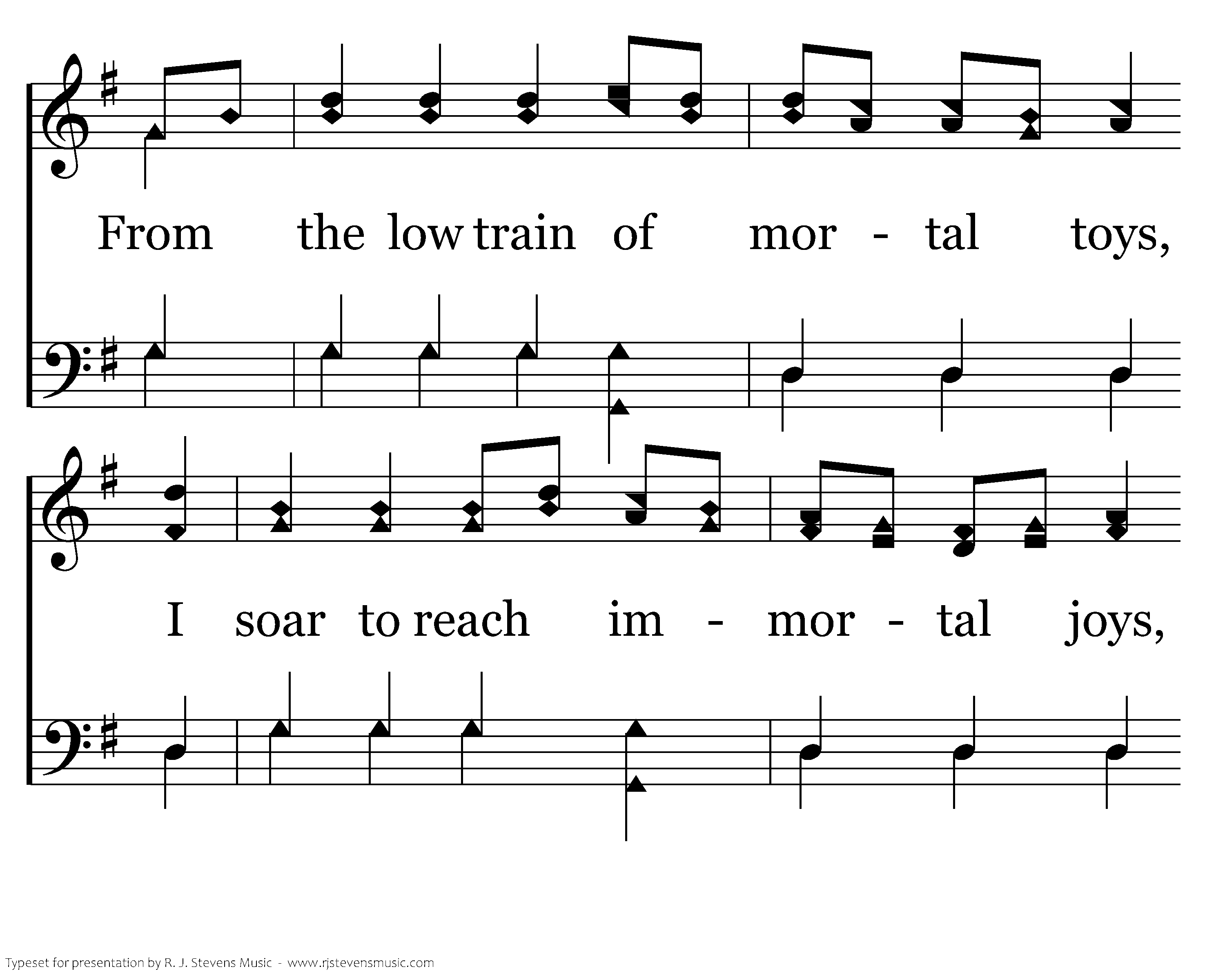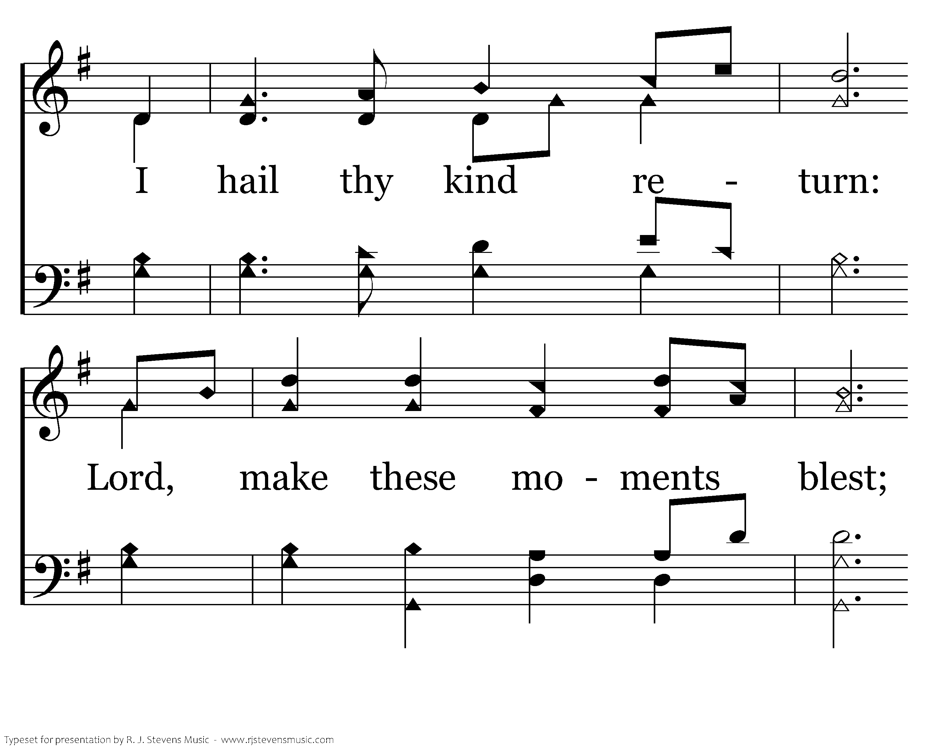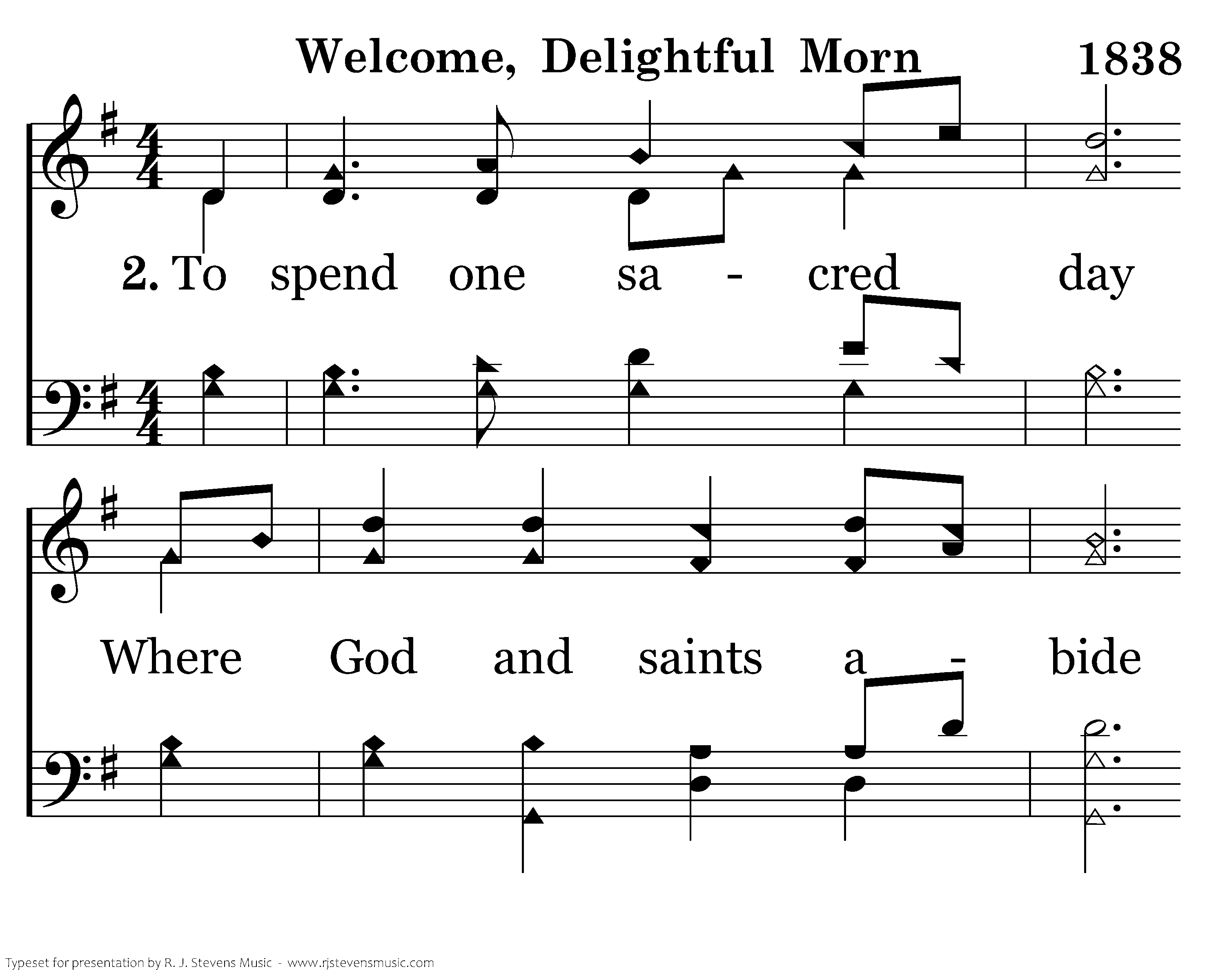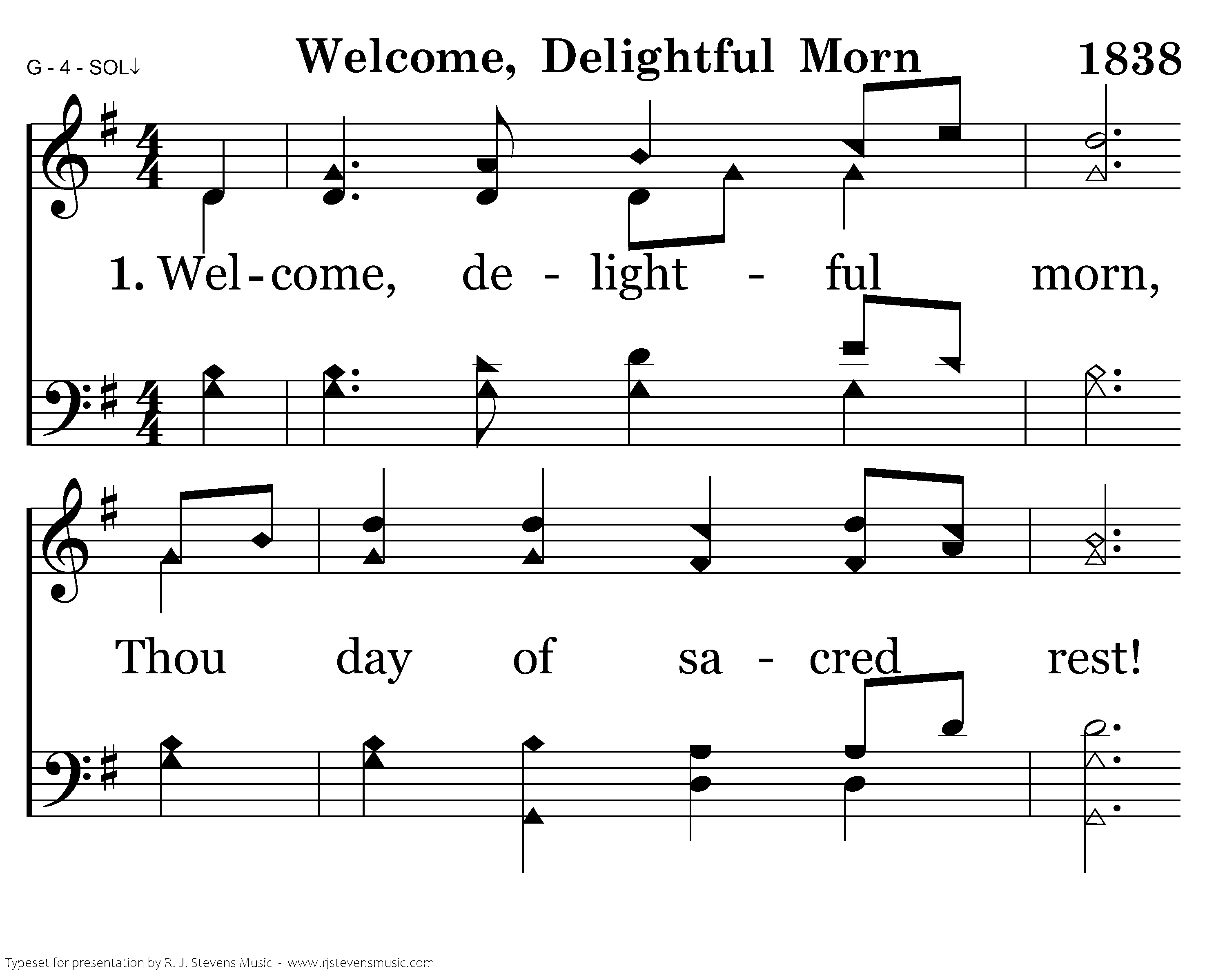 Welcome, delightful morn, Thou day of sacred rest! I hail thy kind return: Lord, make these moments blest; From the low train of mortal toys, I soar to reach immortal joys, I soar to reach immortal joys.