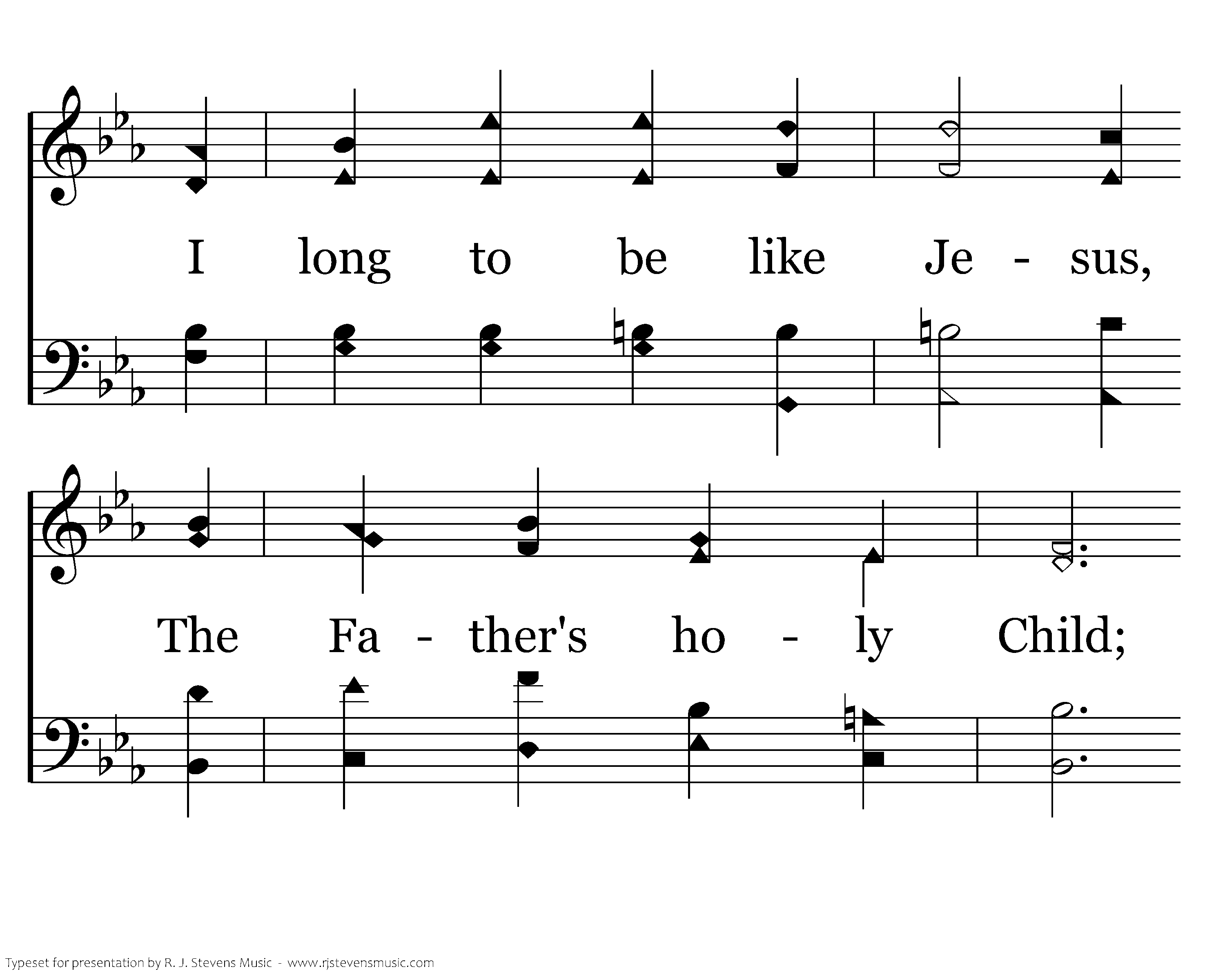 I long to be like Jesus, Meek, loving, lowly, mild; I long to be like Jesus, The Father's holy Child; I long to be with Jesus