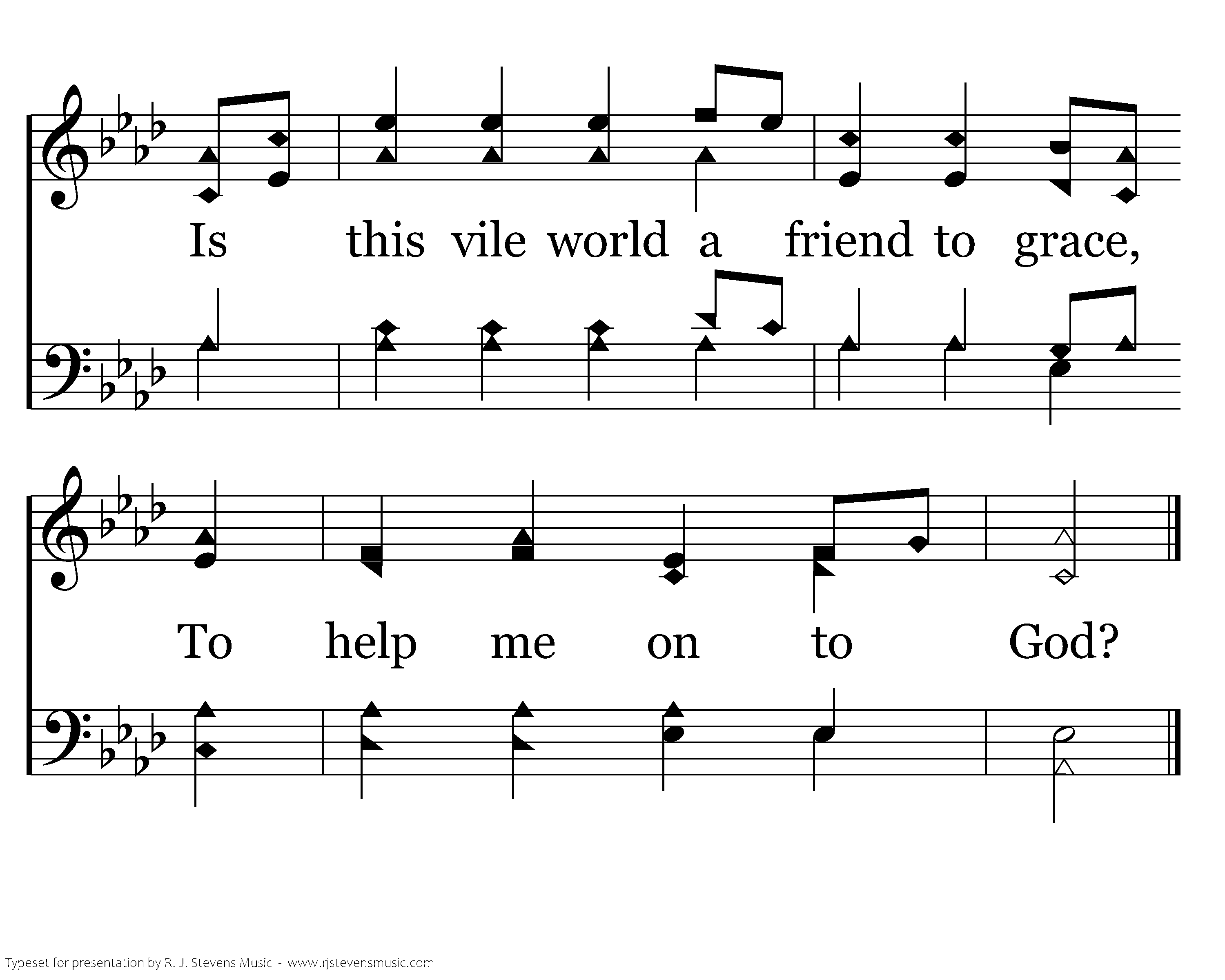 Are there no foes for me to face? Must I not stem the flood? Is this vile world a friend to grace, To help me on to God?