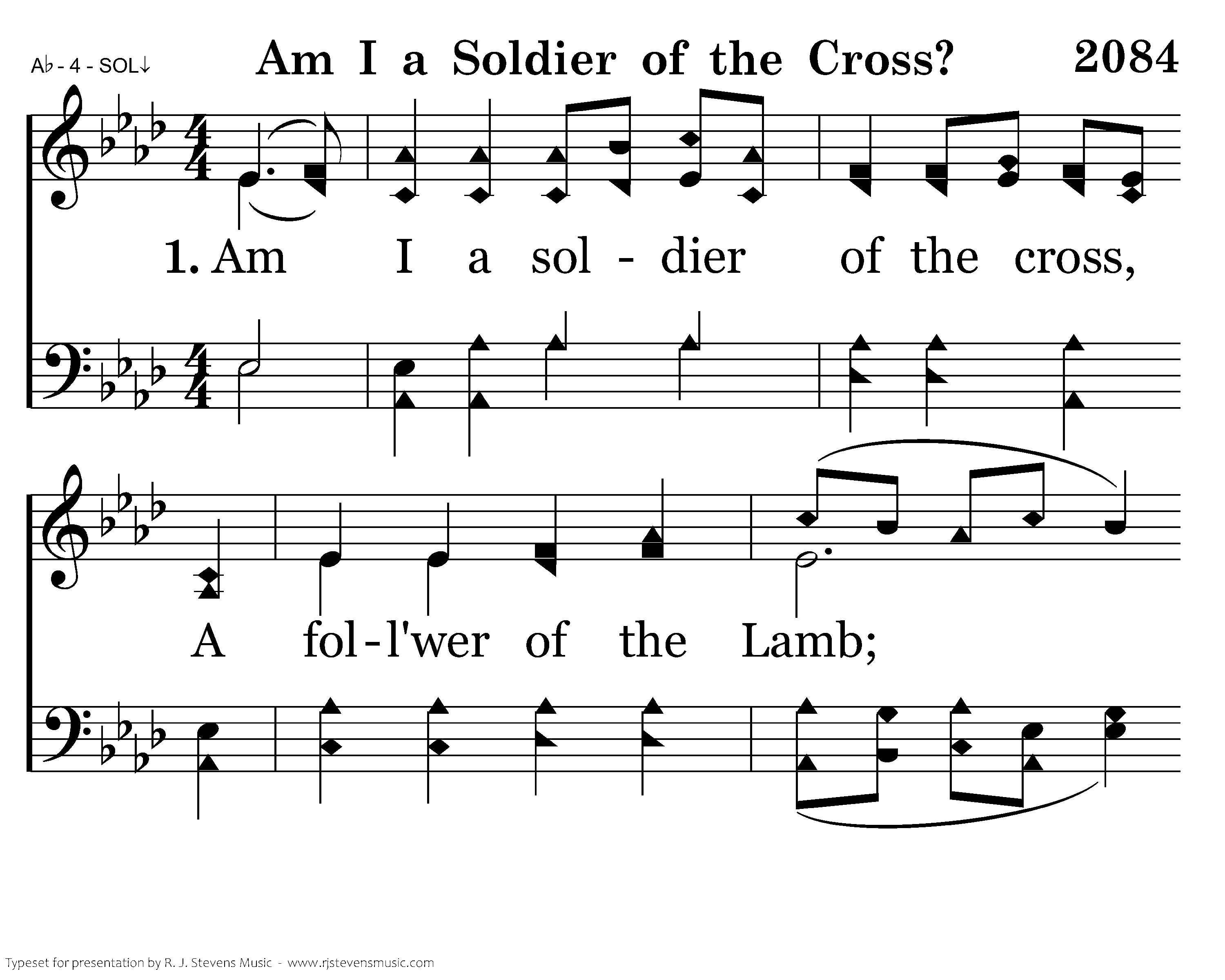 Am I a soldier of the cross, A foll'wer of the Lamb; And shall I fear to own His cause, Or blush to speak His name?