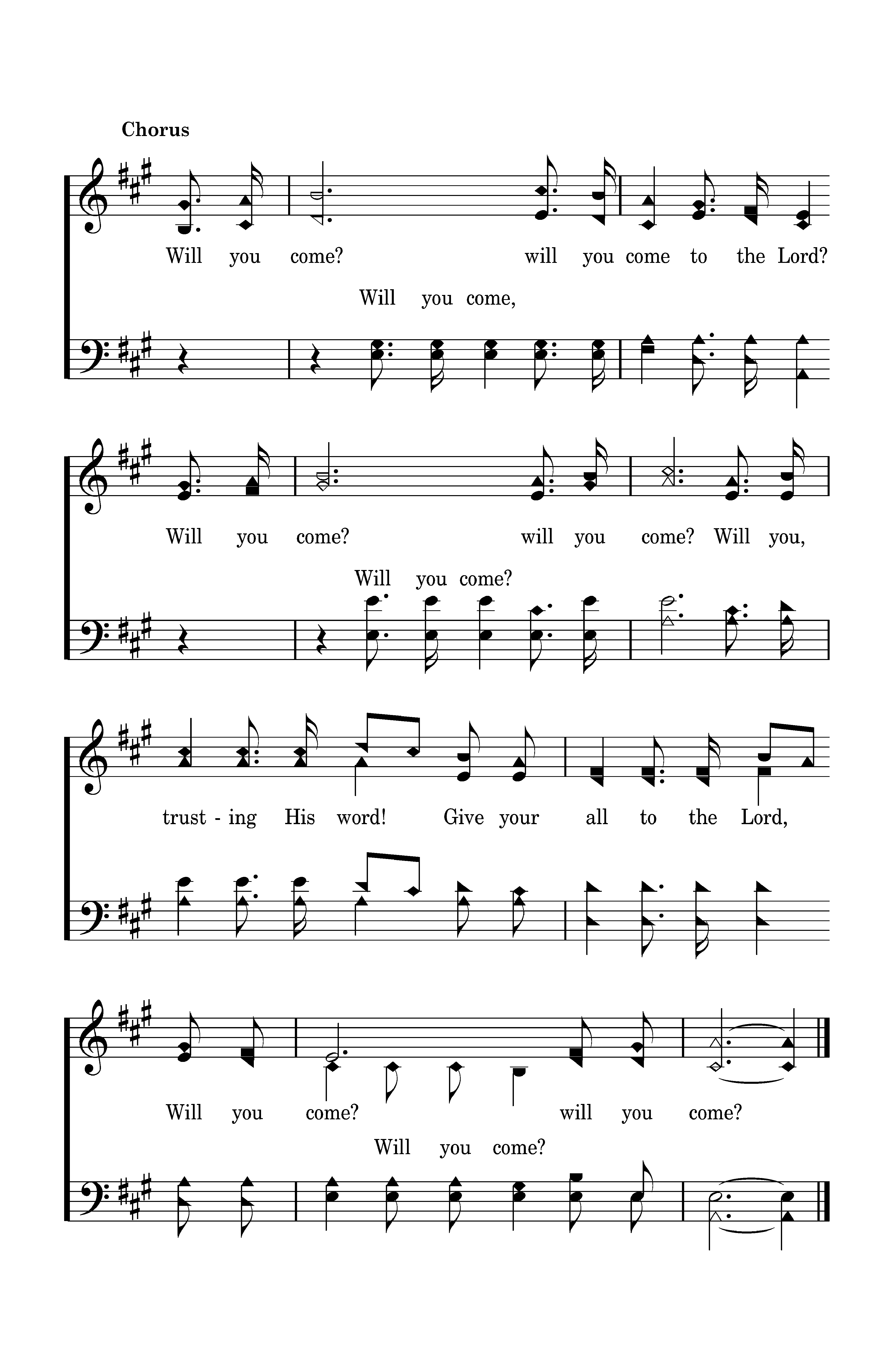 Will you come? will you come to the Lord? Will you come? will you come? Will you, trusting His word! Give your all to the Lord, Will you come? will you come?