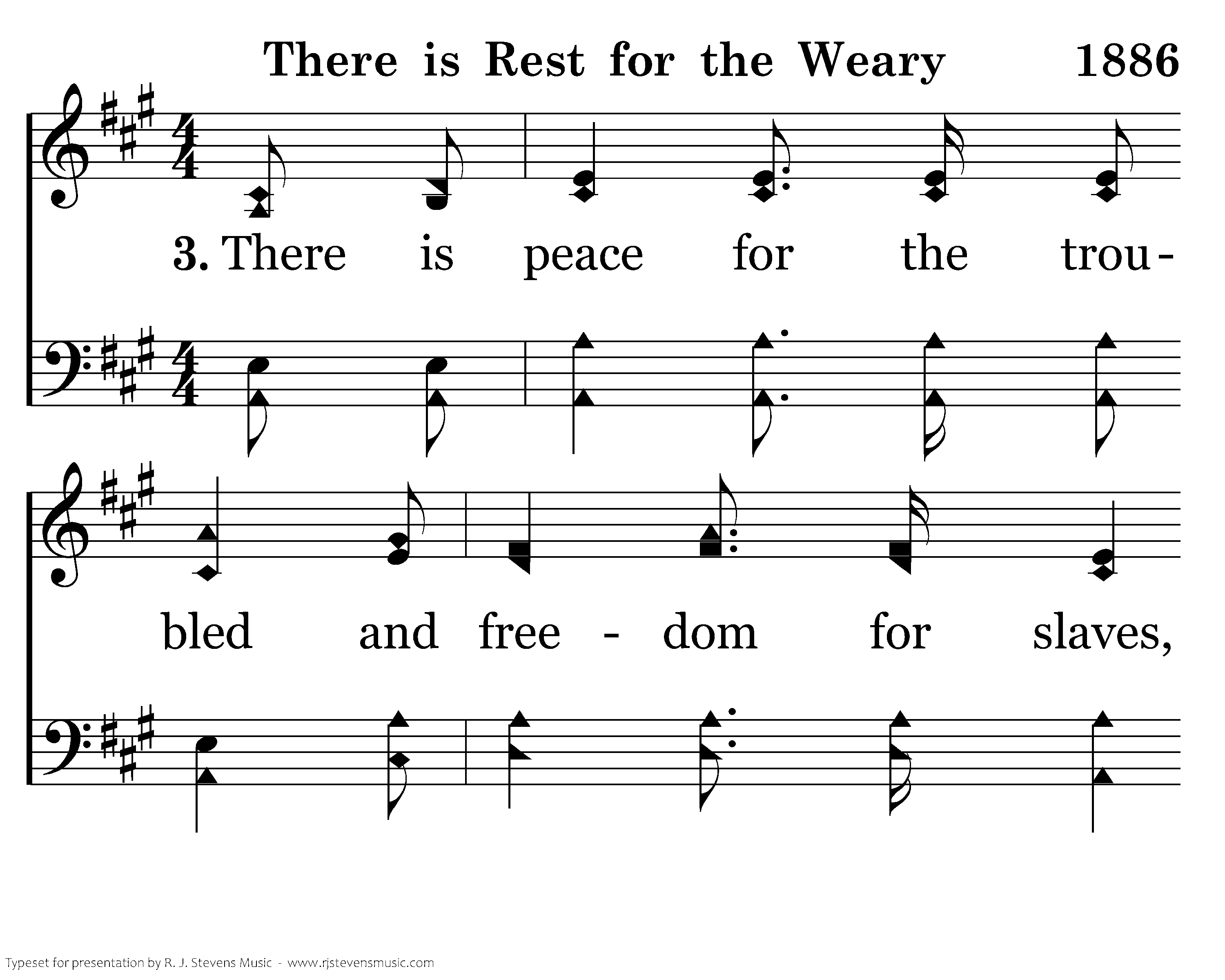 There is peace for the troubled and freedom for slaves, There is hope for the hopeless and light upon graves; Oh, hear the glad message and heed its sweet call! There is room and a welcome with Jesus for all.