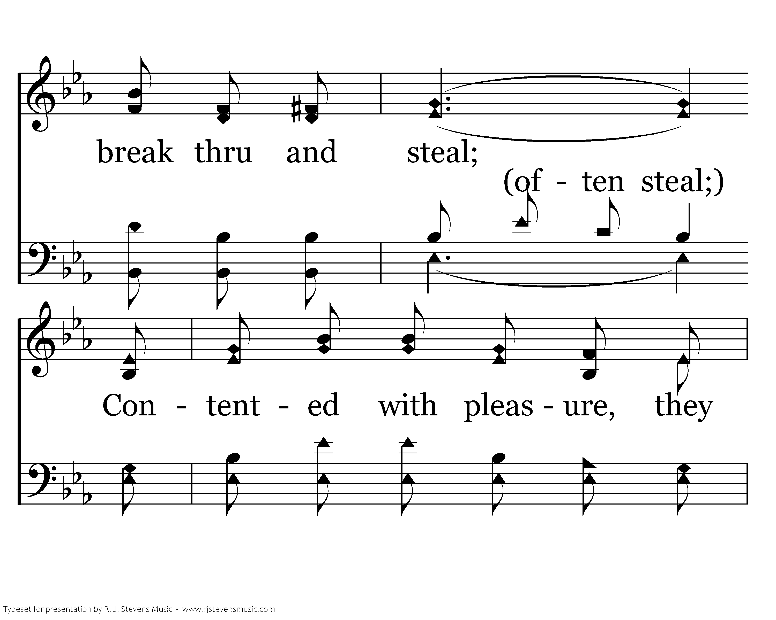 They seem not to know that their treasures will rust, And thieves often break thru and steal; (often steal;) Contented with pleasure, they follow their lust, With sorrow their destiny seal.