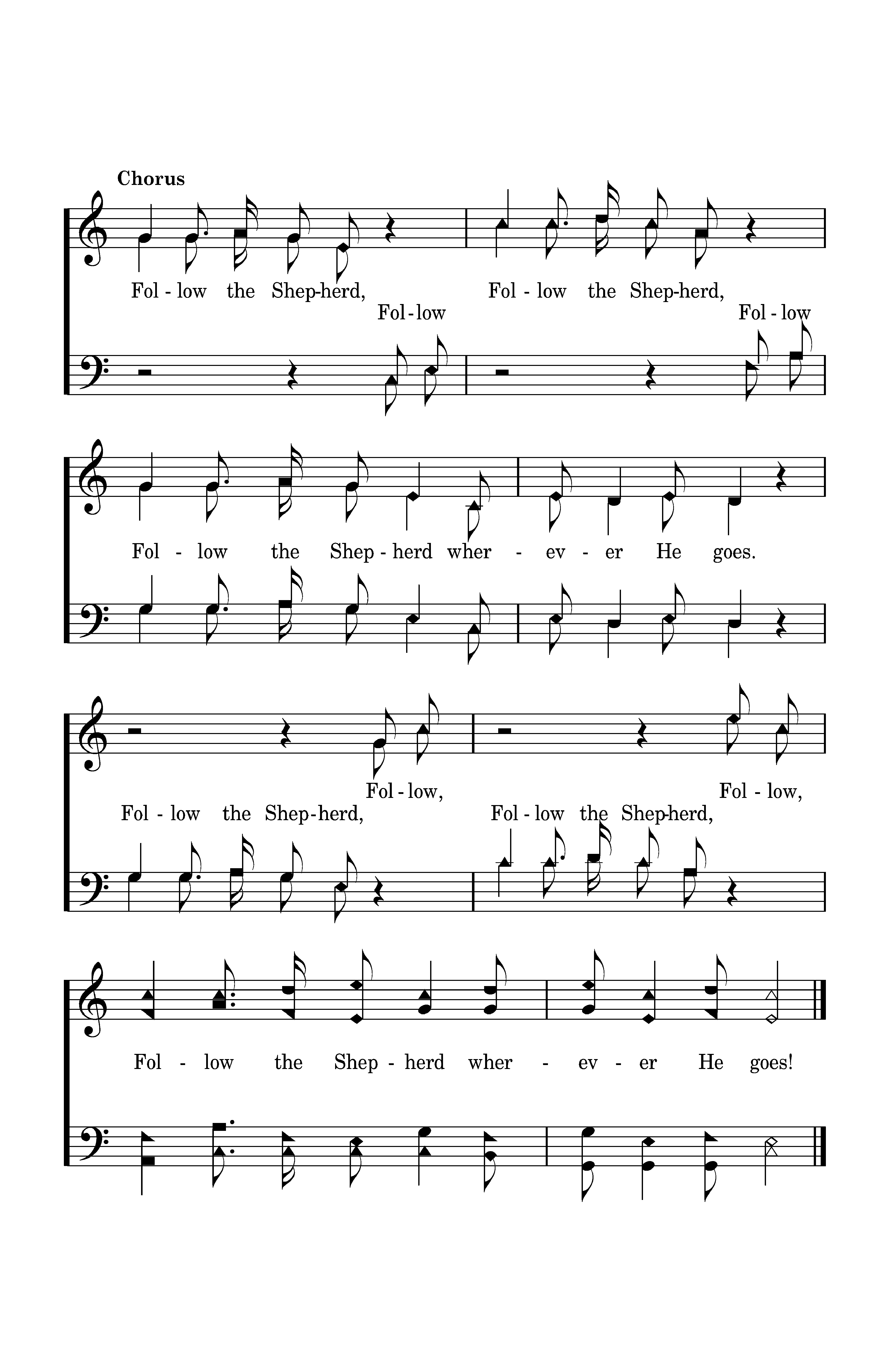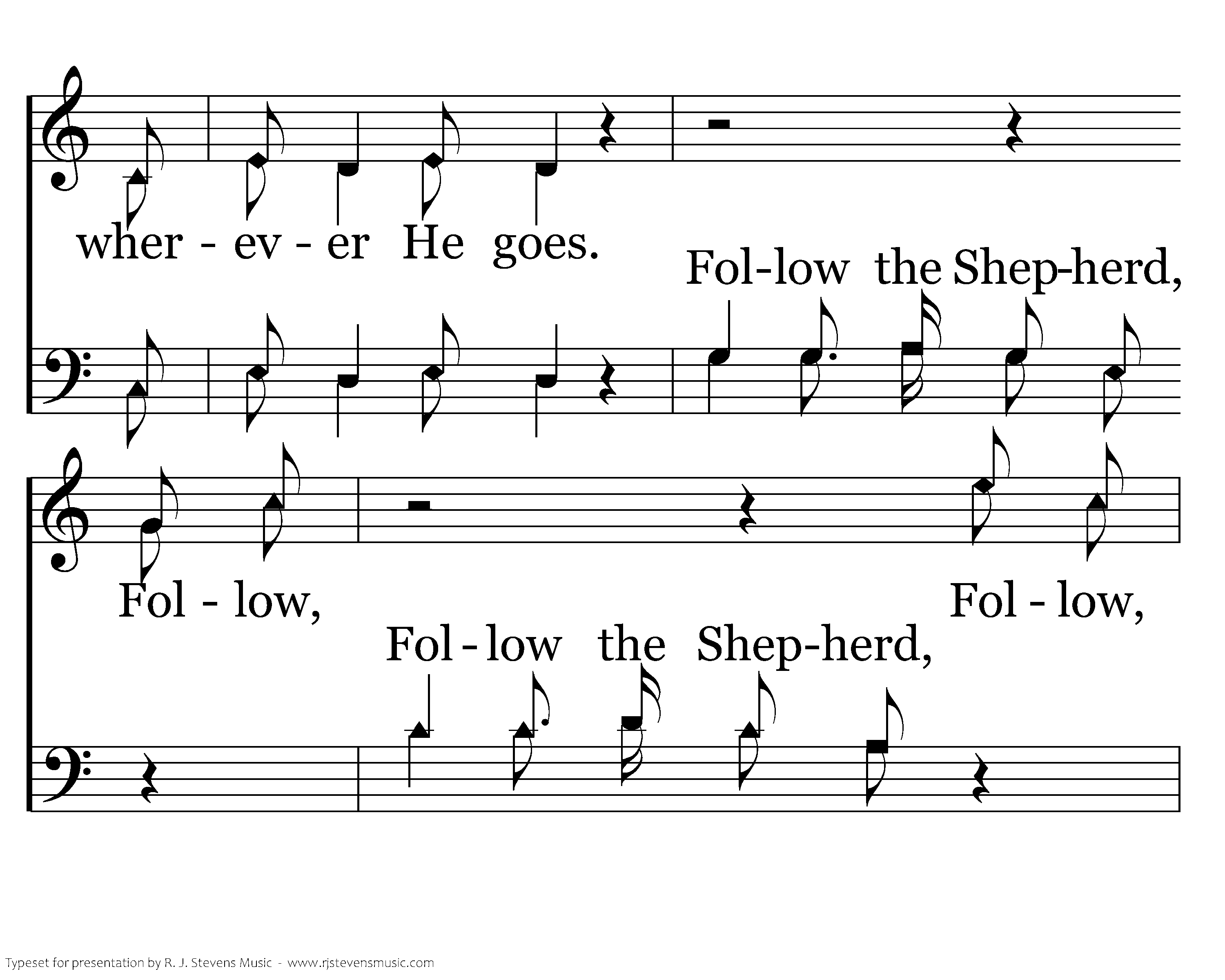 Follow the Shepherd, Follow the Shepherd, Follow the Shepherd wherever He goes. Follow, Follow, Follow the Shepherd wherever He goes! Follow Follow Follow the Shepherd, Follow the Shepherd,