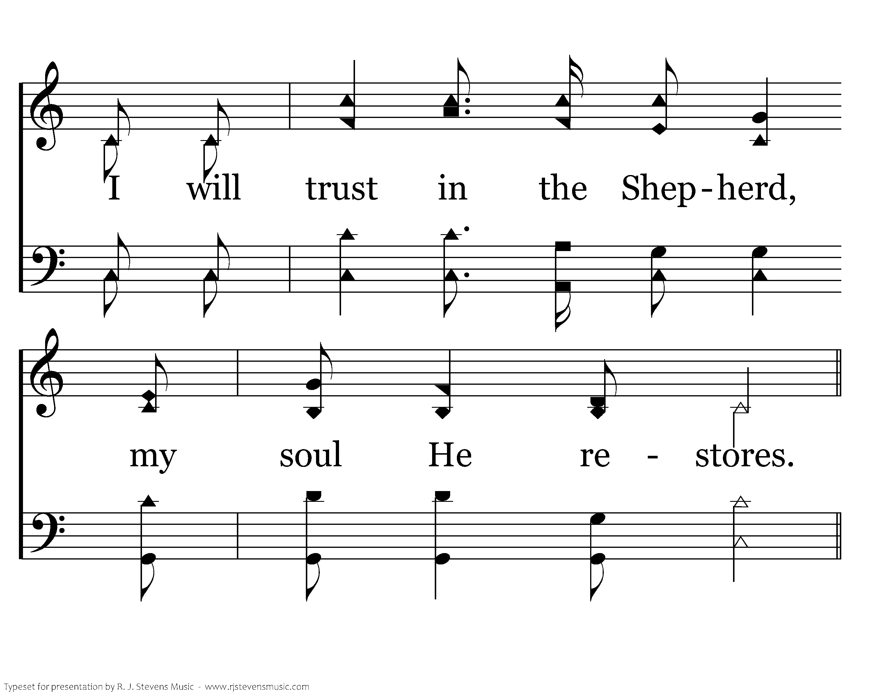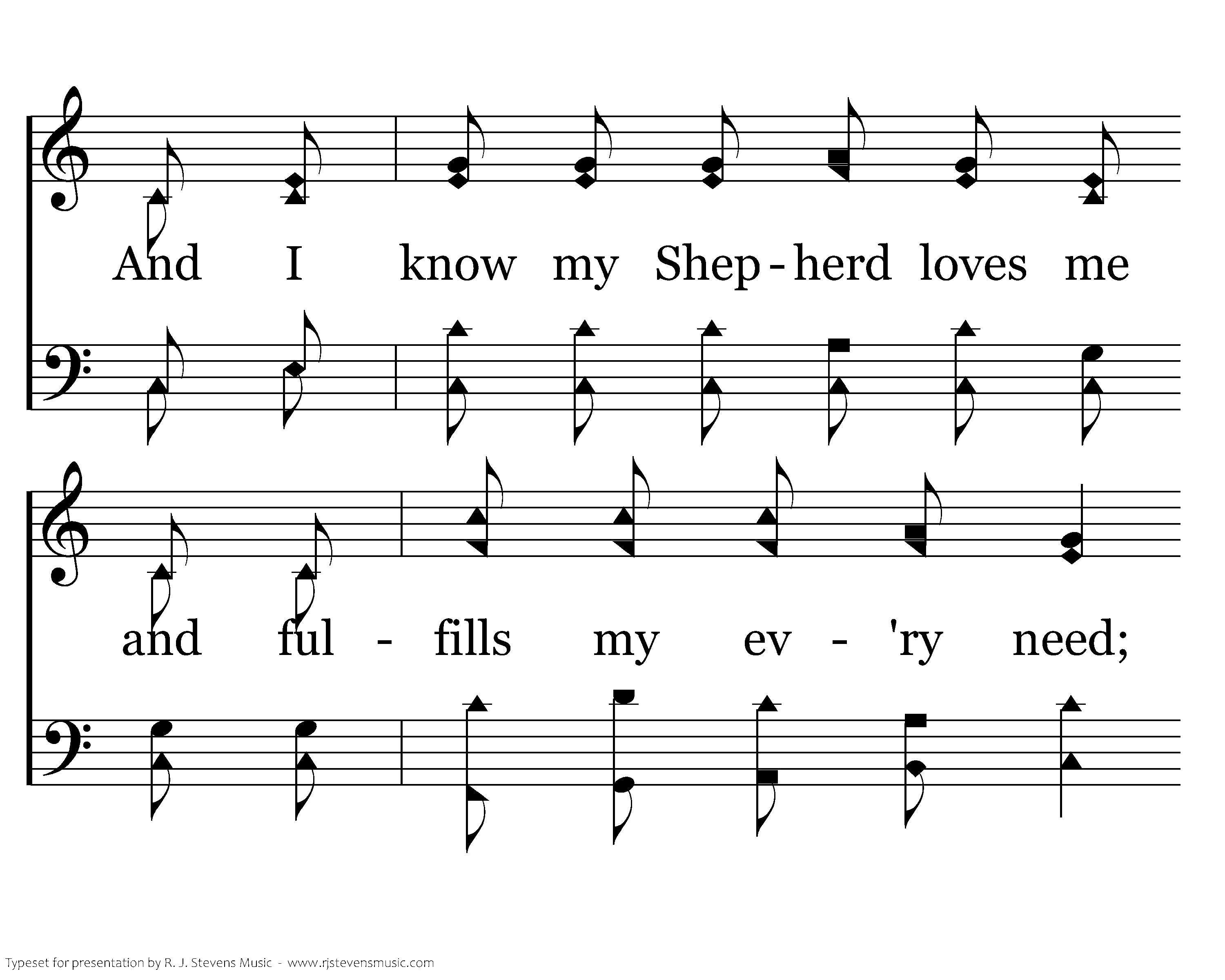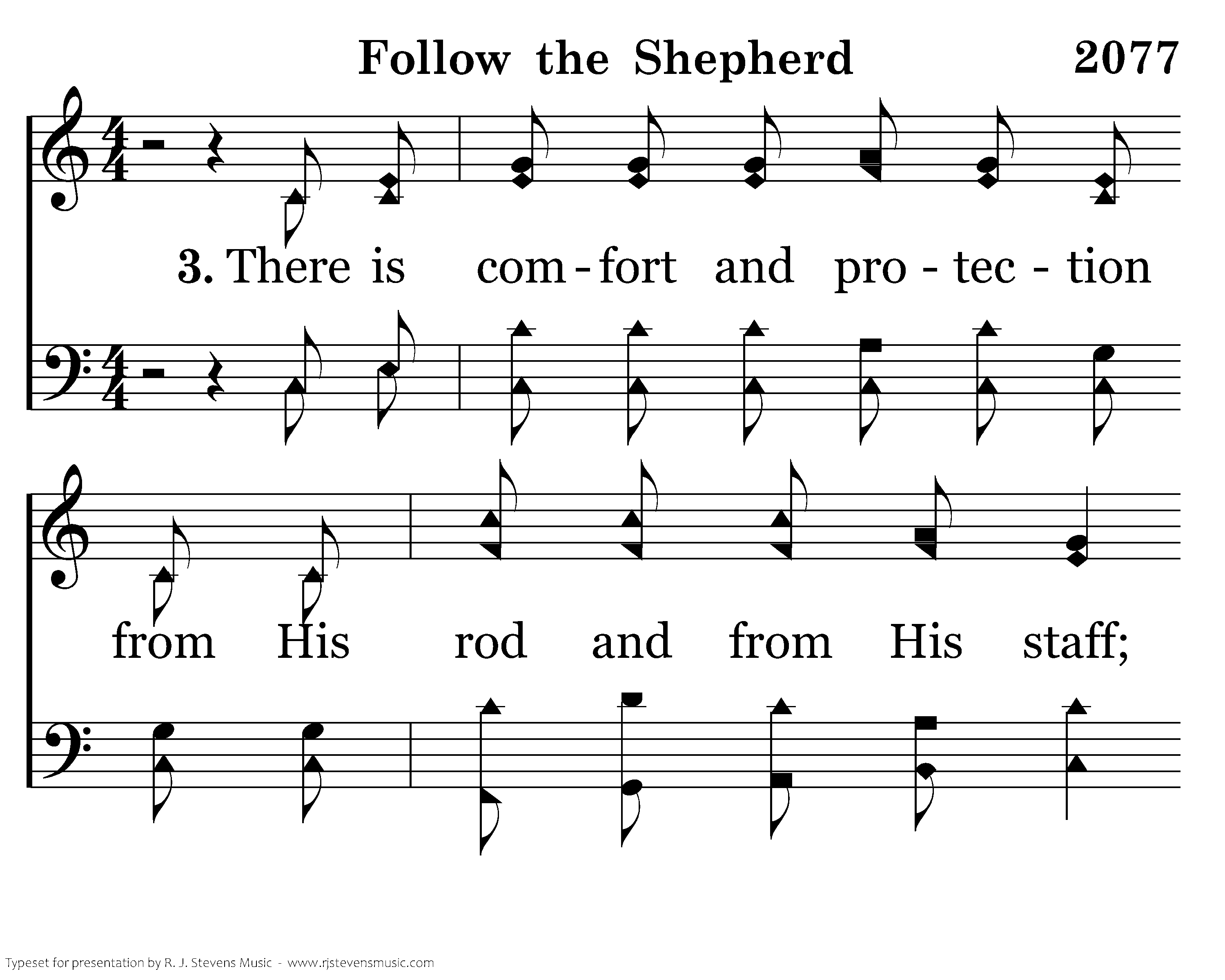 There is comfort and protection from His rod and from His staff; For the sake of His dear name He makes me walk the righteous path. And I know my Shepherd loves me and fulfills my ev'ry need; For the Lord is my Shepherd, my Shepherd indeed.