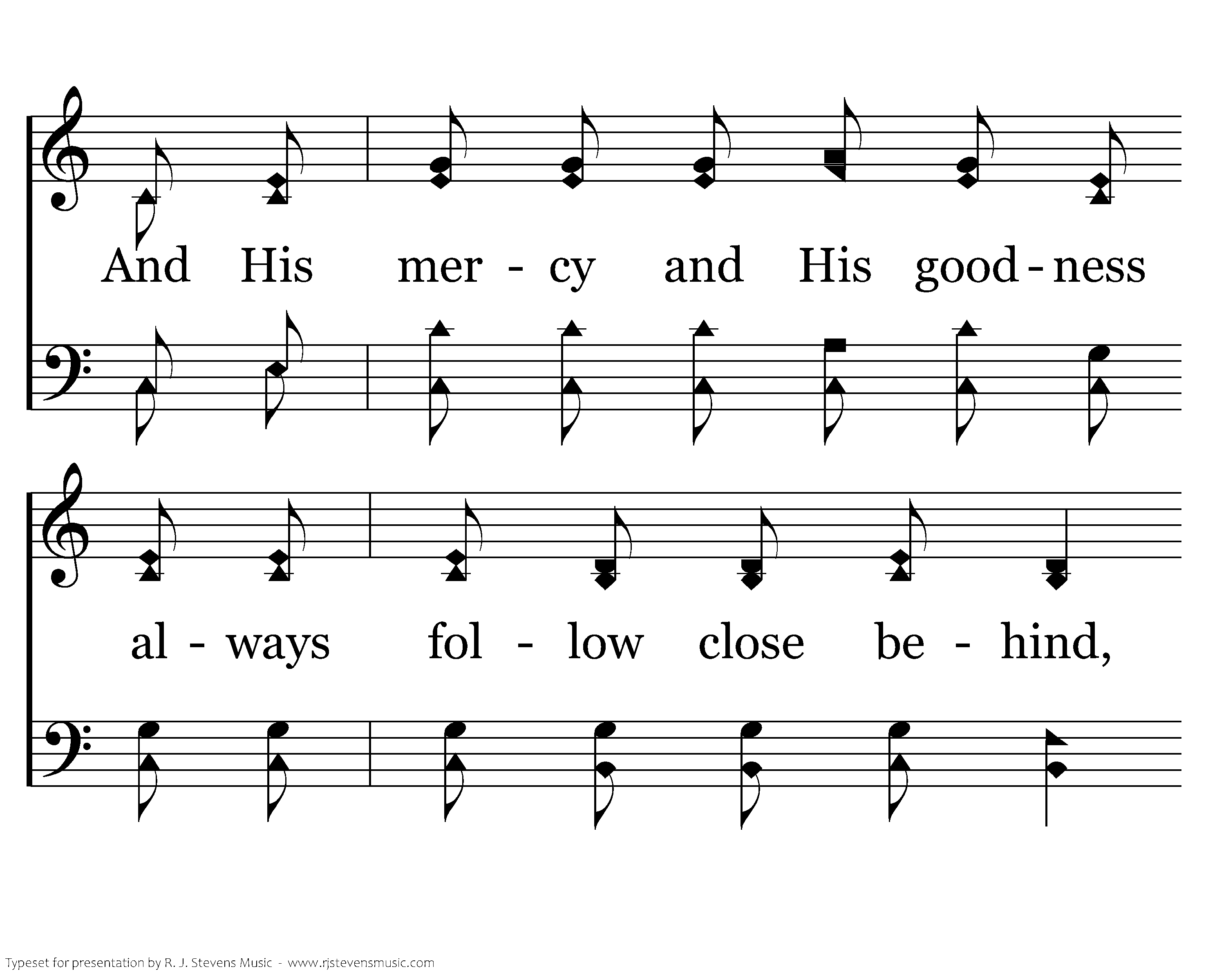 He anoints my head with oil and He gives me peace of mind; And His mercy and His goodness always follow close behind,