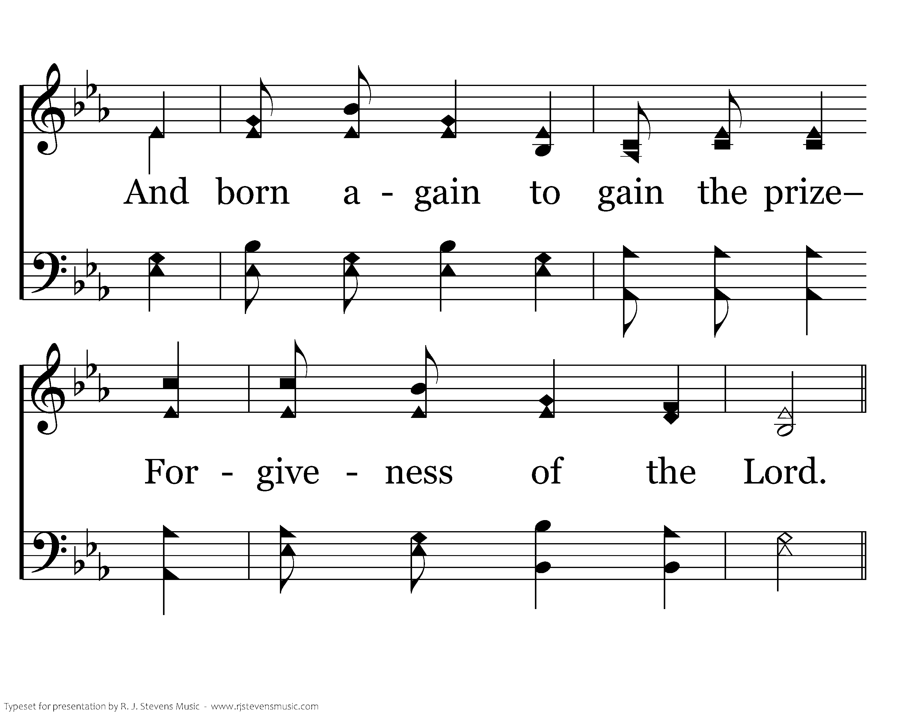 I see the new creation rise, Begotten by the Word; And born again to gain the prize– Forgiveness of the Lord.