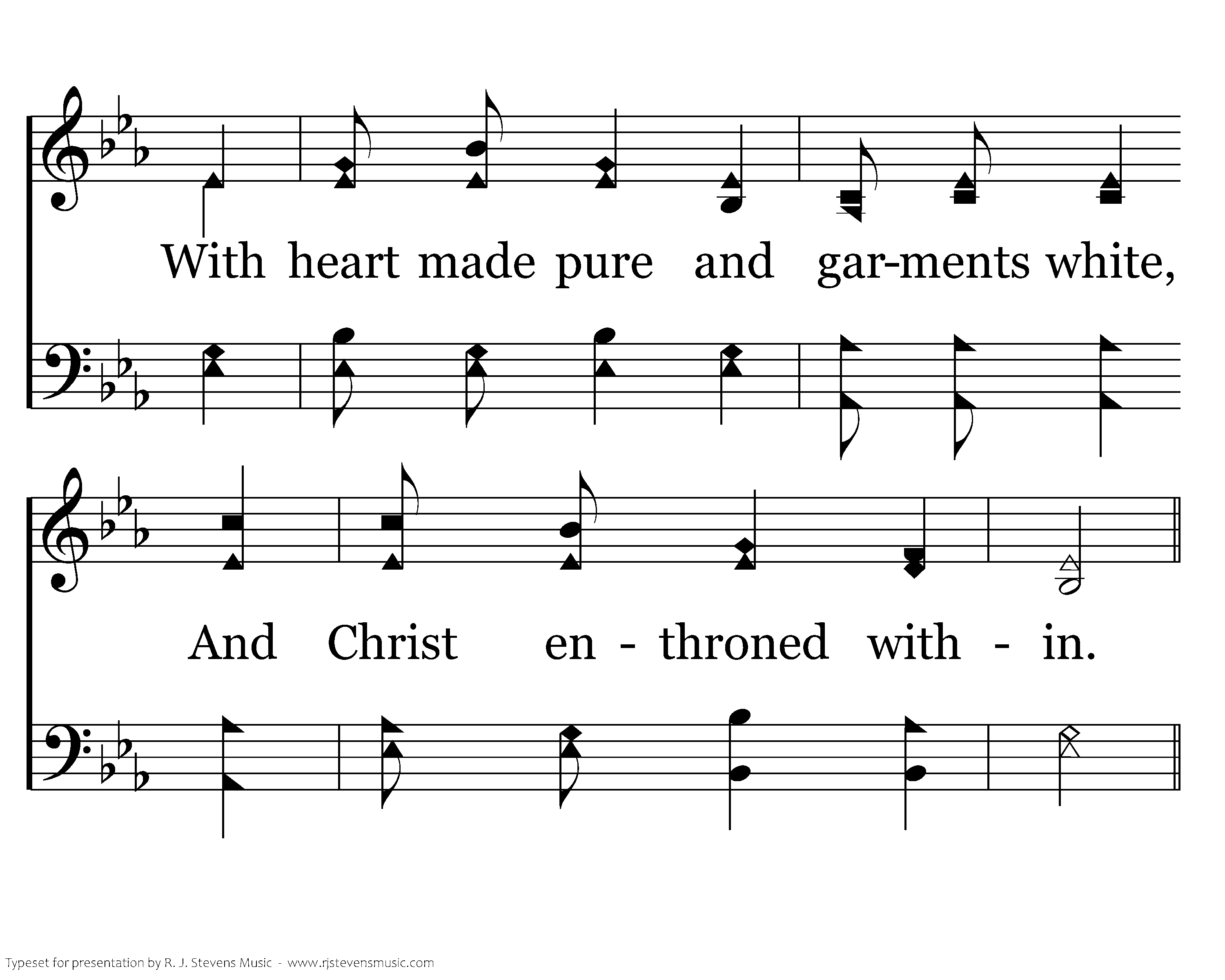 I rise to walk in Heaven’s light, Above the world and sin, With heart made pure and garments white, And Christ enthroned within.