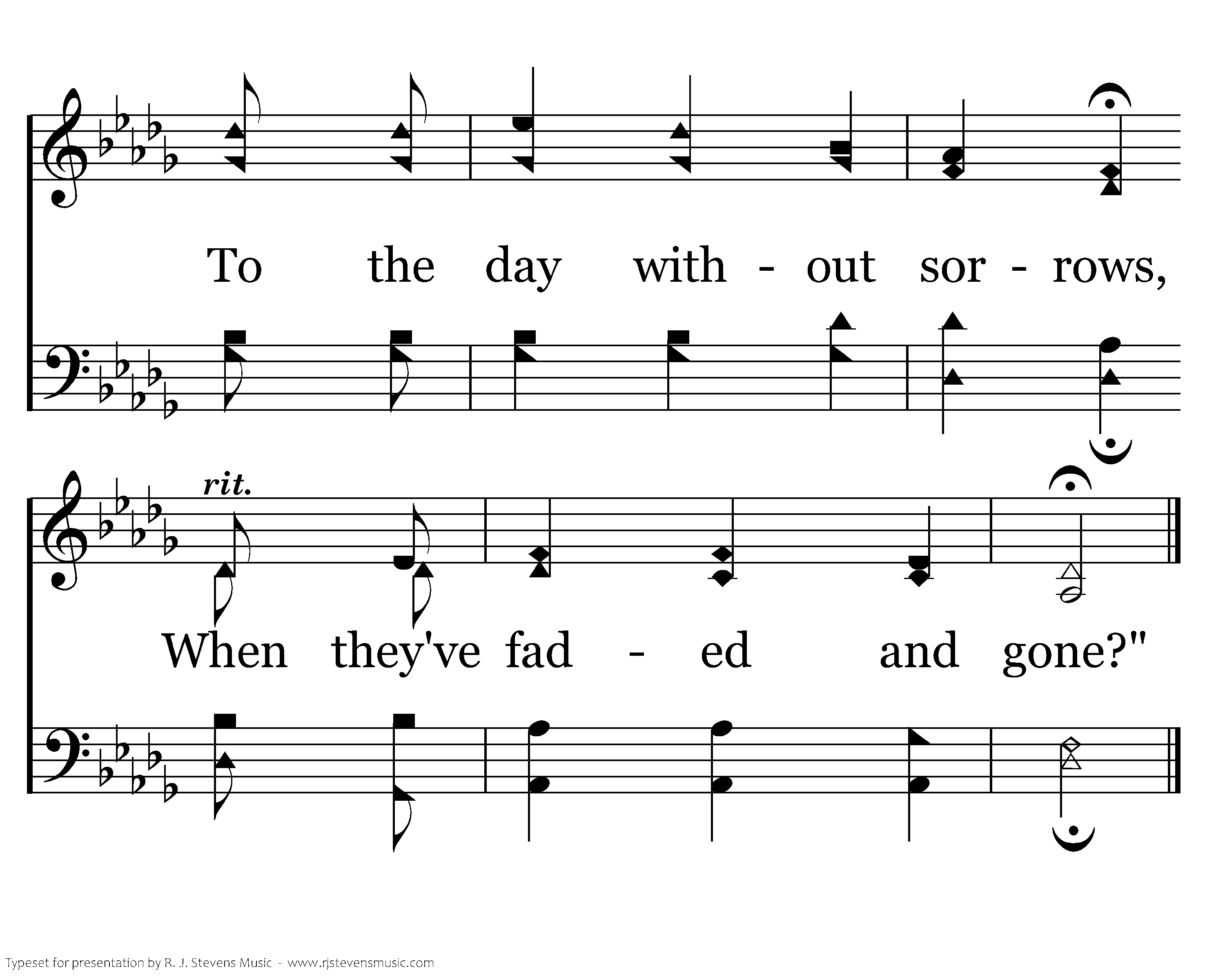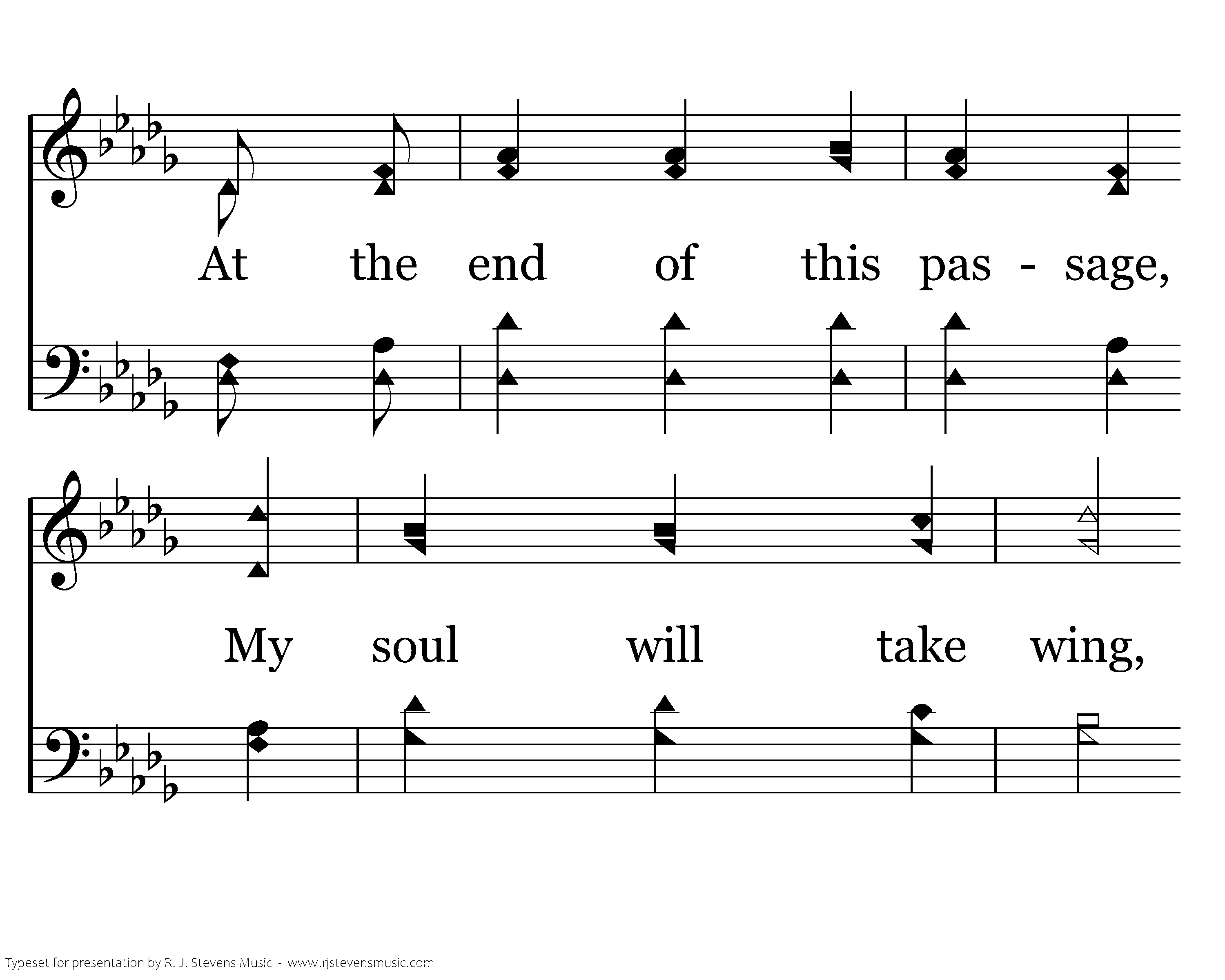 Will it be on the morrow, When we sing the new lay, When we sing with the angels At the end of our way? At the end of this passage, My soul will take wing, As I try my new pinions, On the way to my King.
