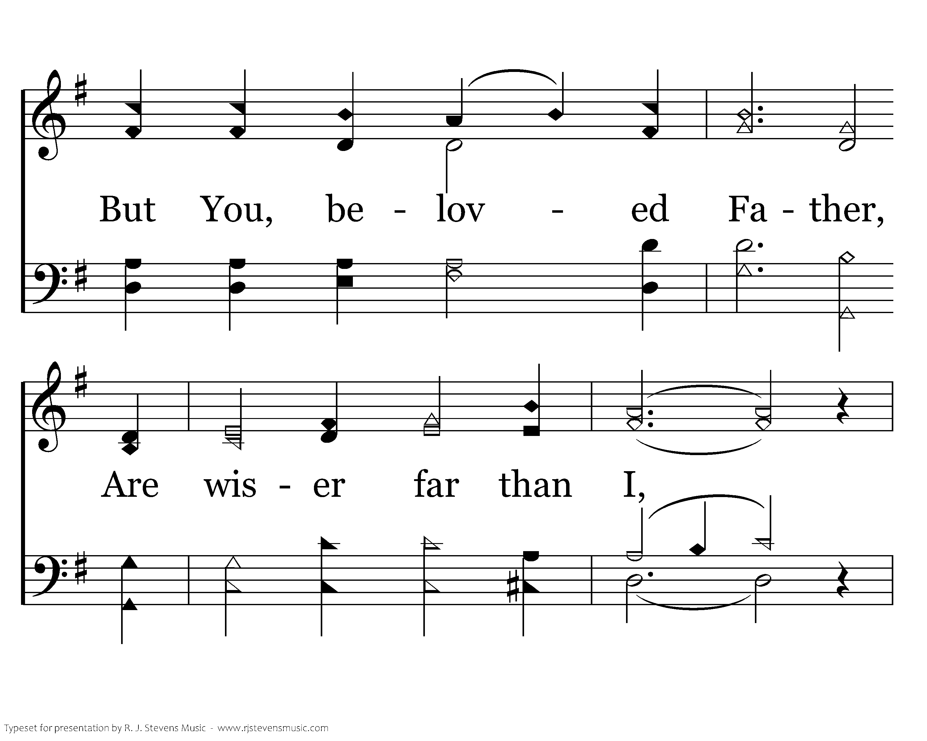In childish understanding, I think that I know best How You should hear my pleading And answer each request. But You, beloved Father, Are wiser far than I, And Your unerring judgment Must shape the best reply.