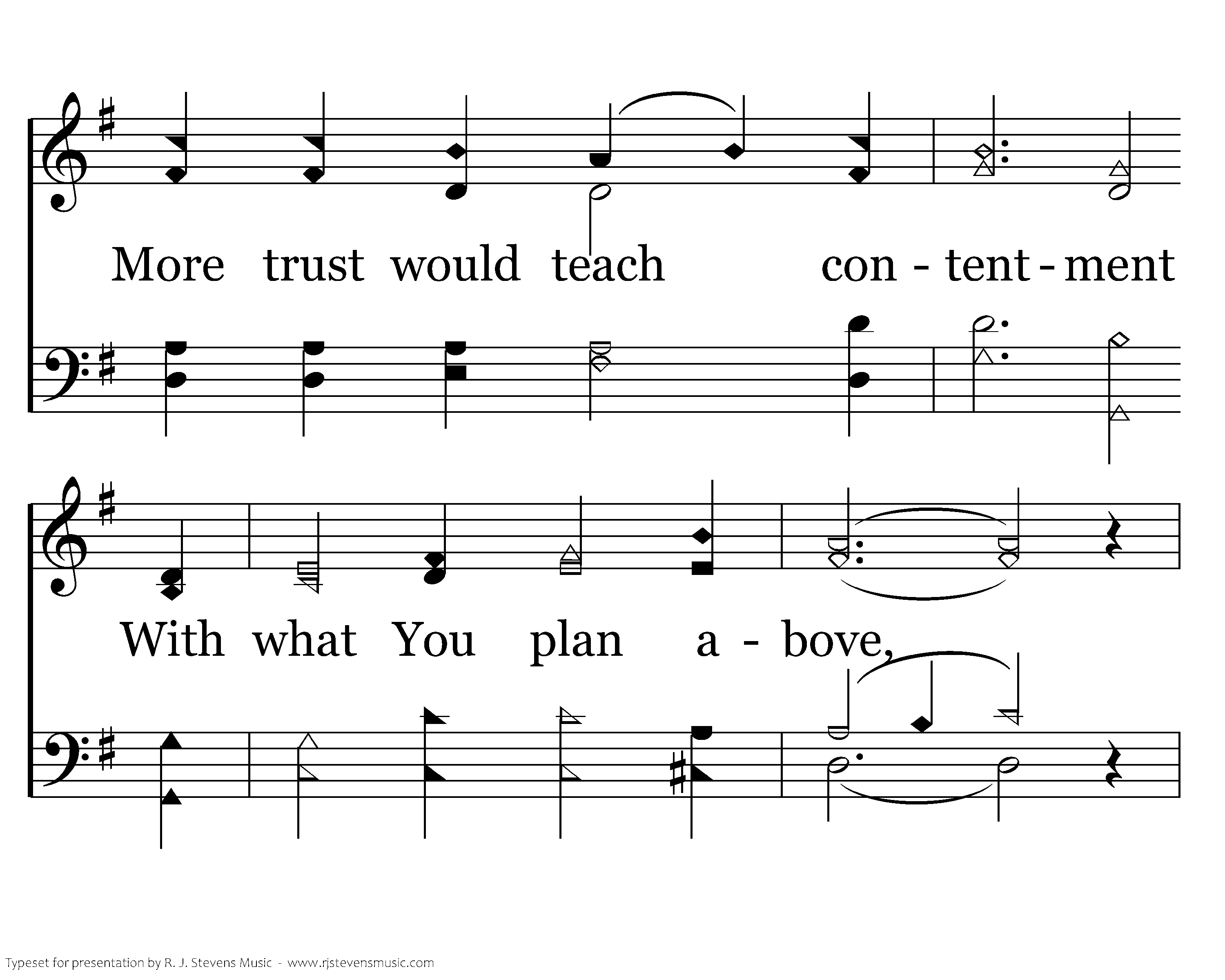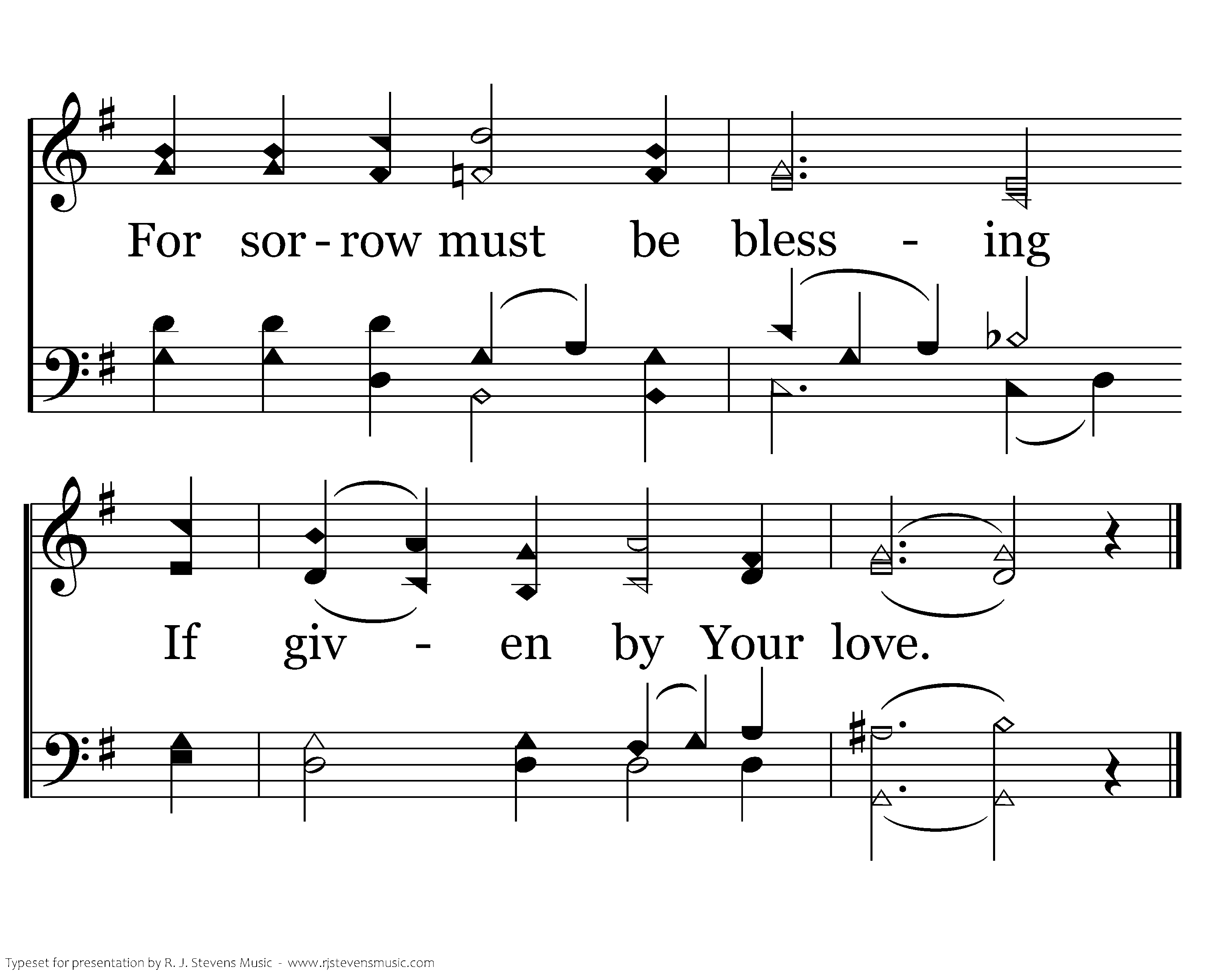 Lord, help me see Your blessings; I have no other need, But faith to see the blessing In all You have decreed. More trust would teach contentment With what You plan above, For sorrow must be blessing If given by Your love.
