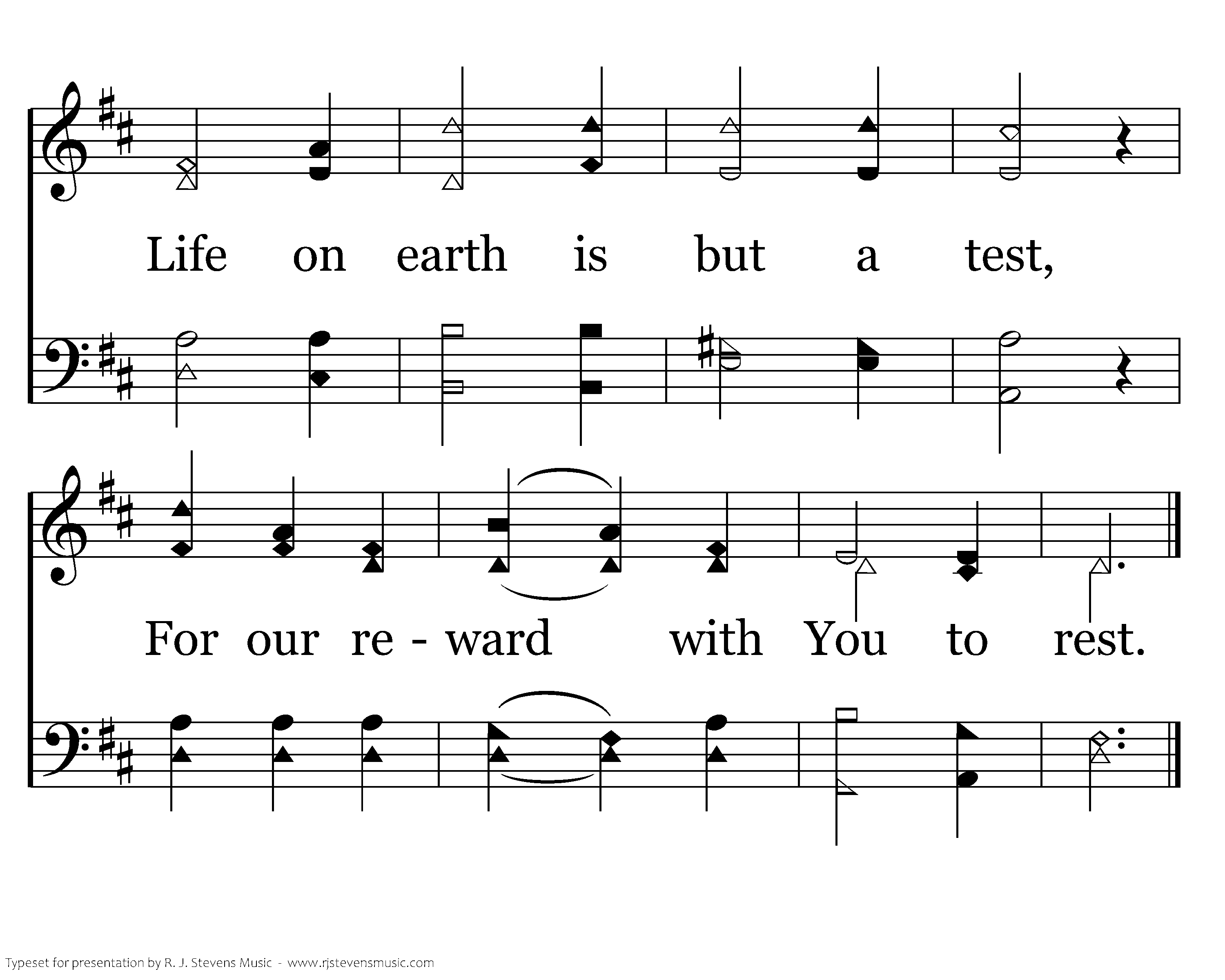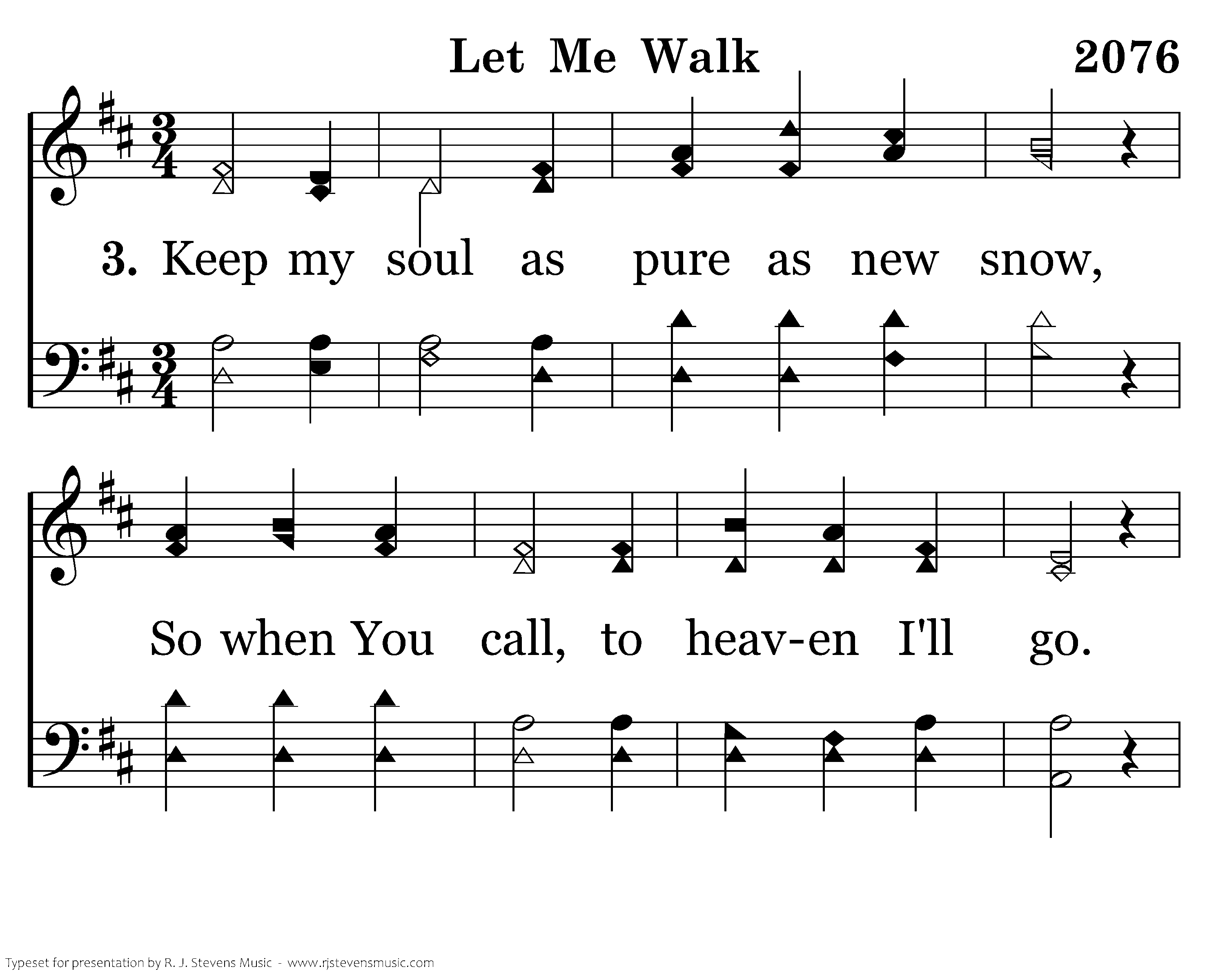 Keep my soul as pure as new snow, So when You call, to heaven I'll go. Life on earth is but a test, For our reward with You to rest.