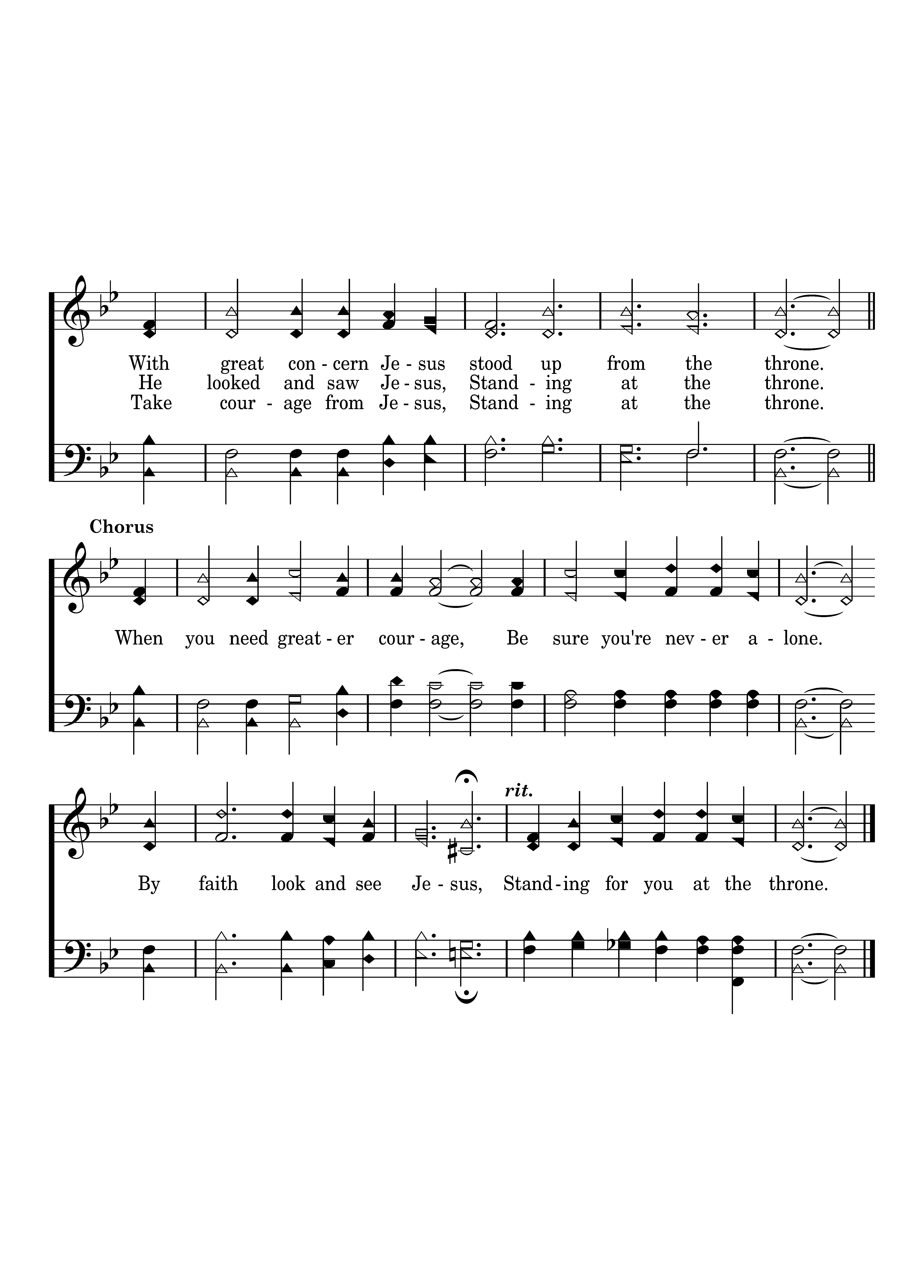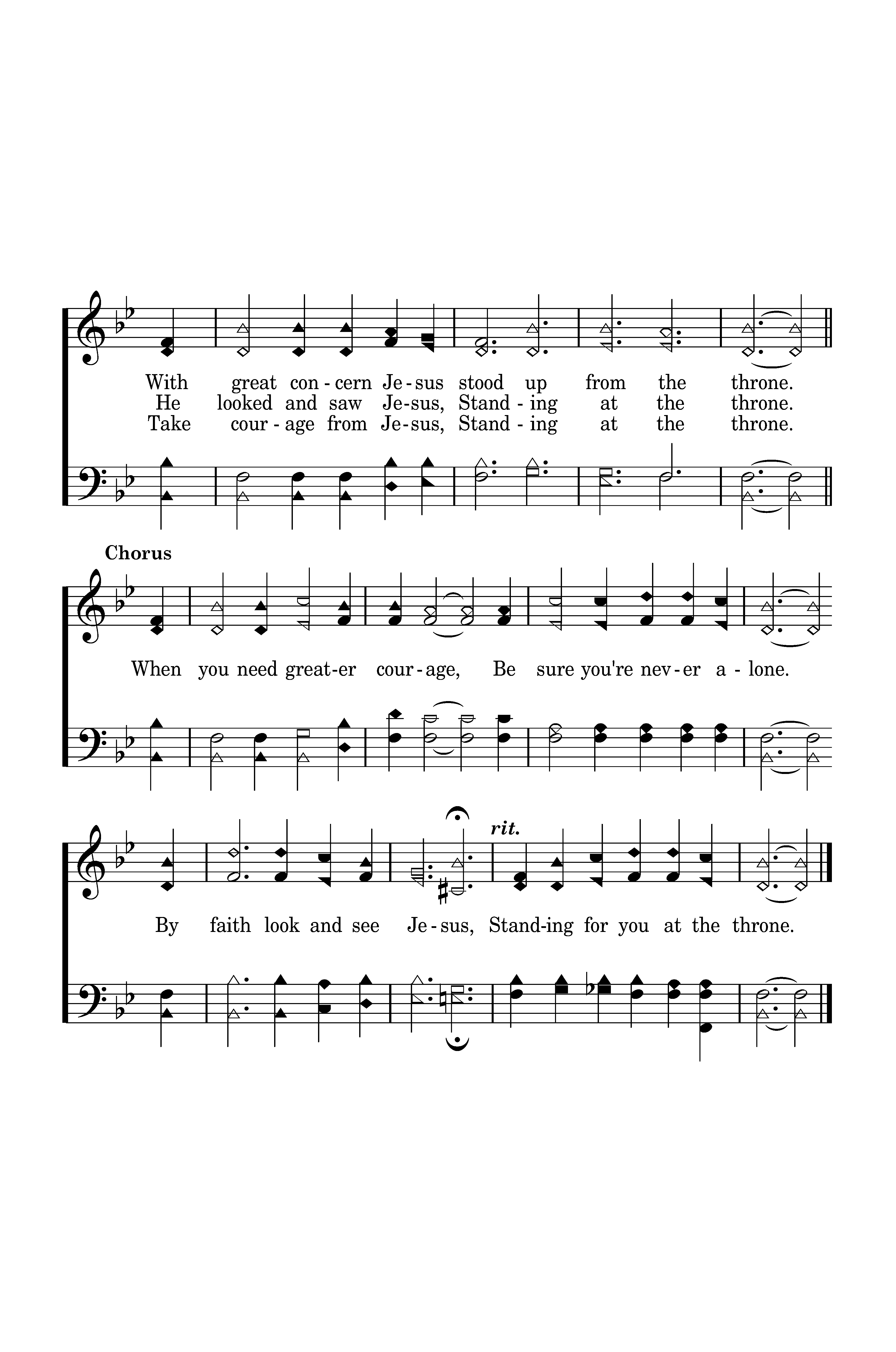 When you need greater courage, Be sure you're never alone. By faith look and see Jesus, Standing for you at the throne.