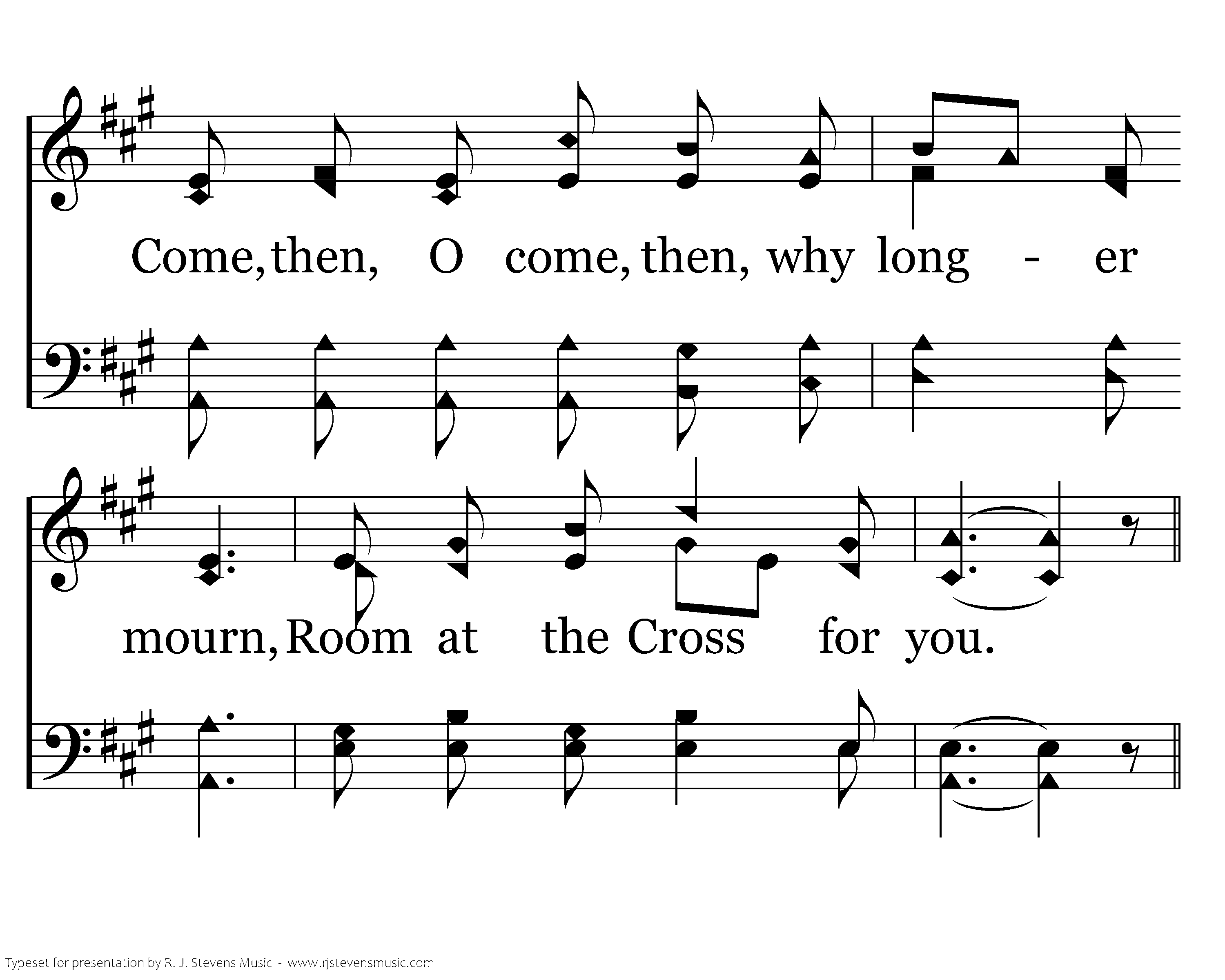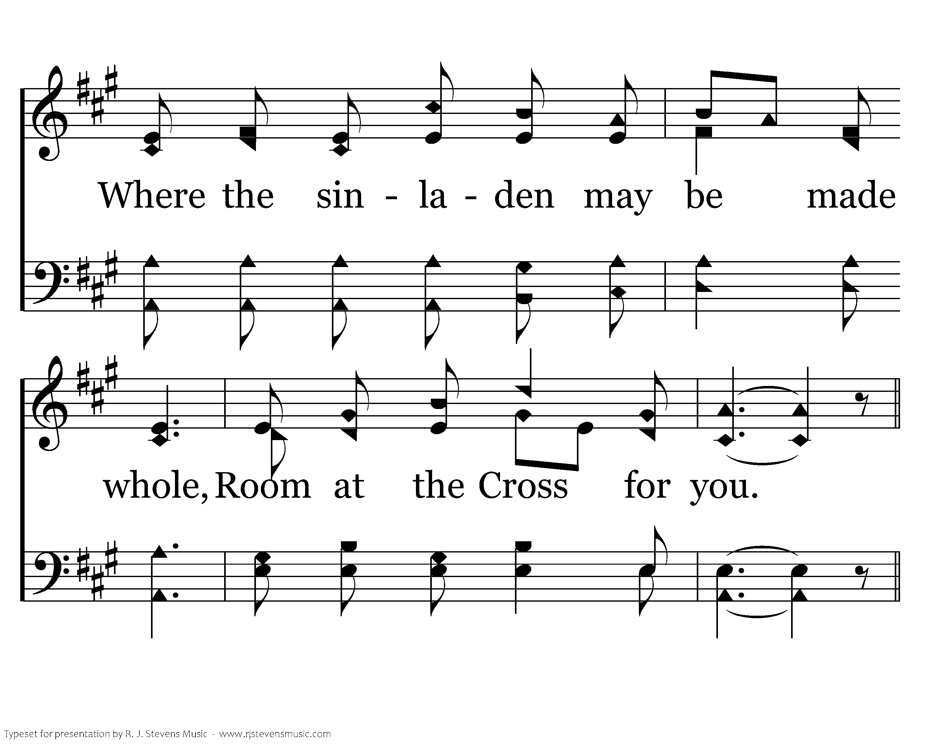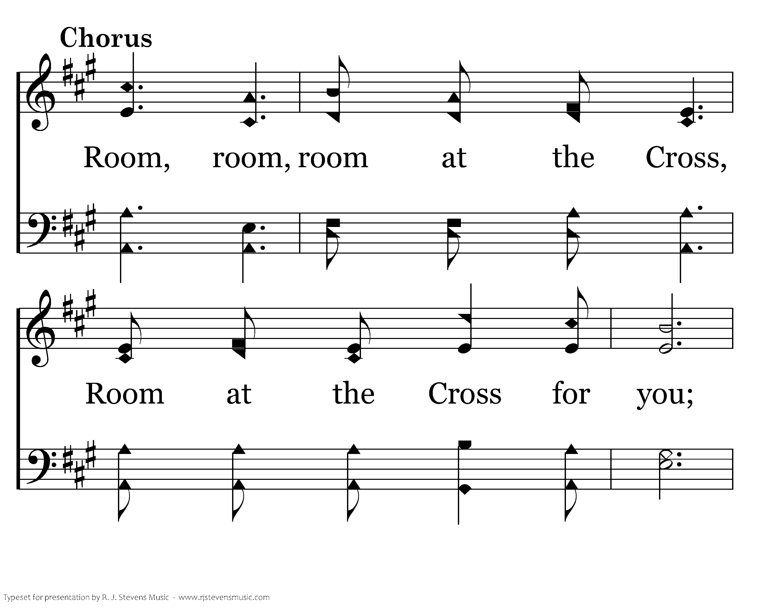 Room, room, room at the Cross, Room at the Cross for you; Room, room, room at the Cross, Room at the Cross for you.