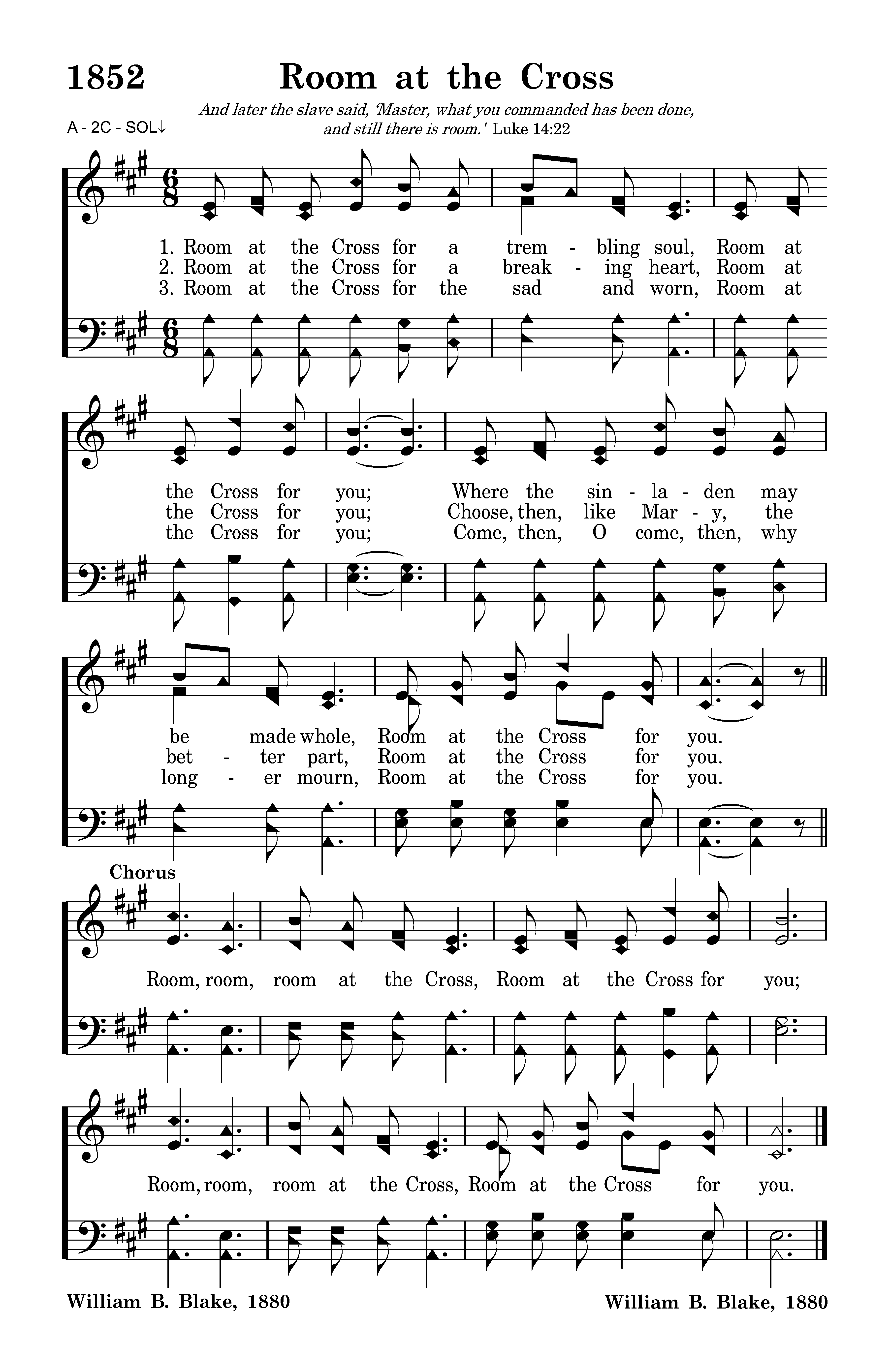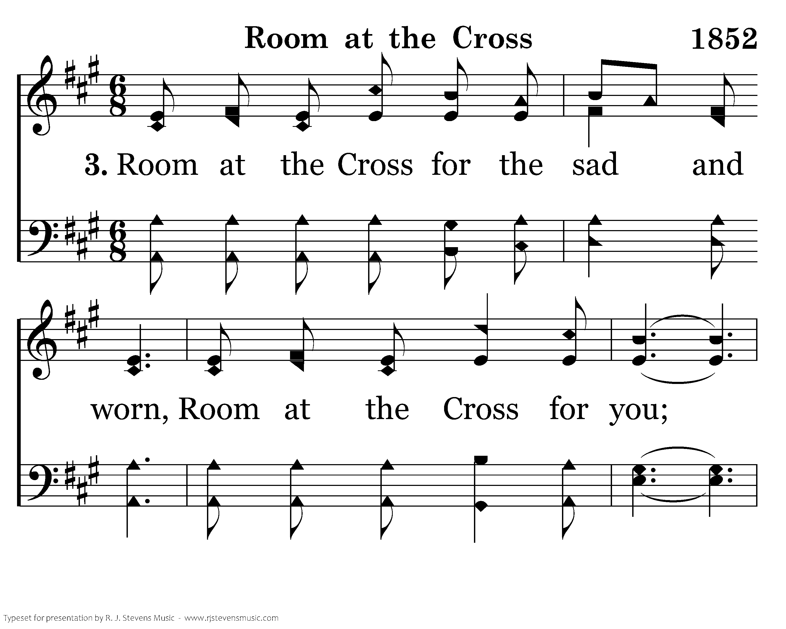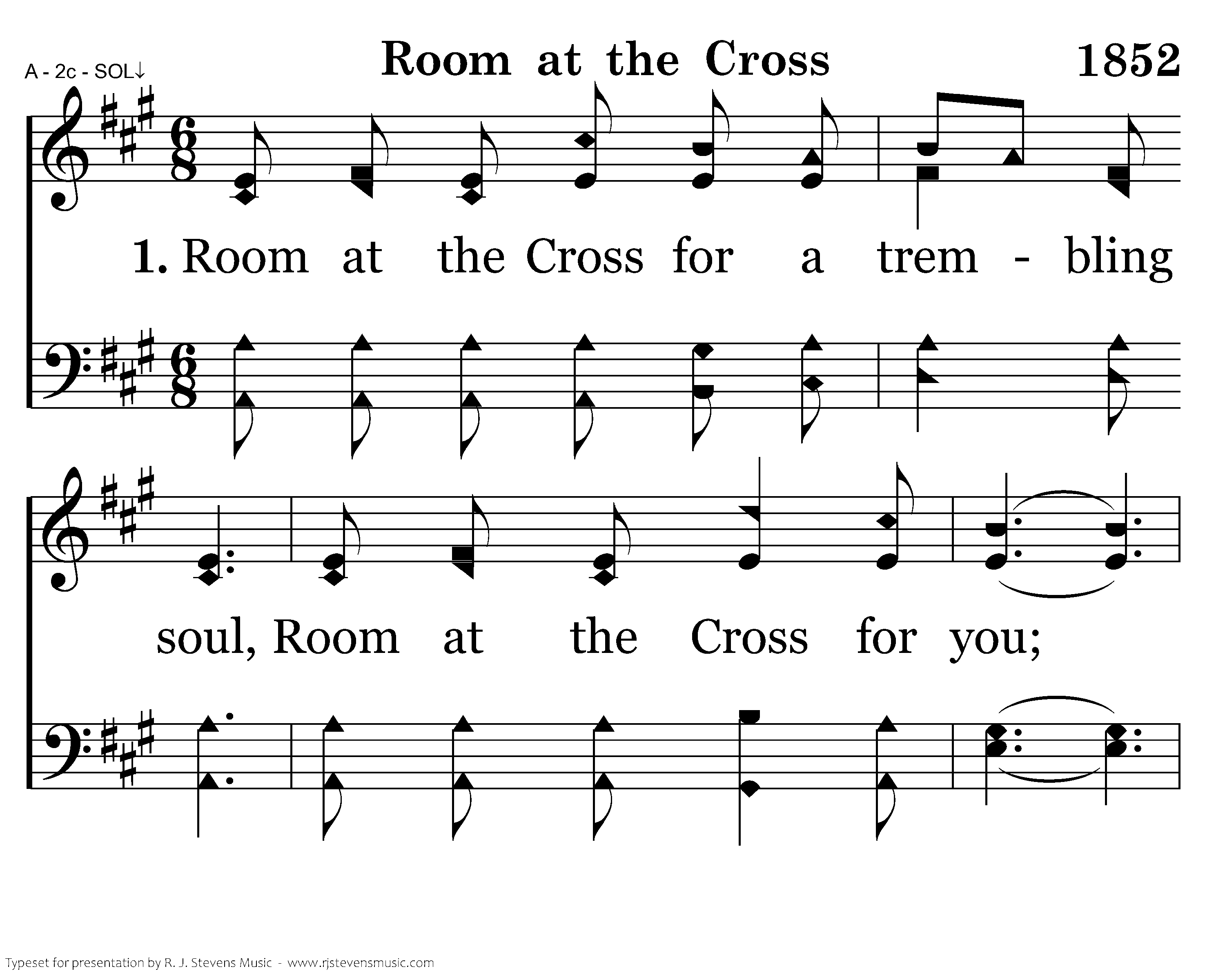 Room, room, room at the Cross, Room at the Cross for you; Room, room, room at the Cross, Room at the Cross for you.