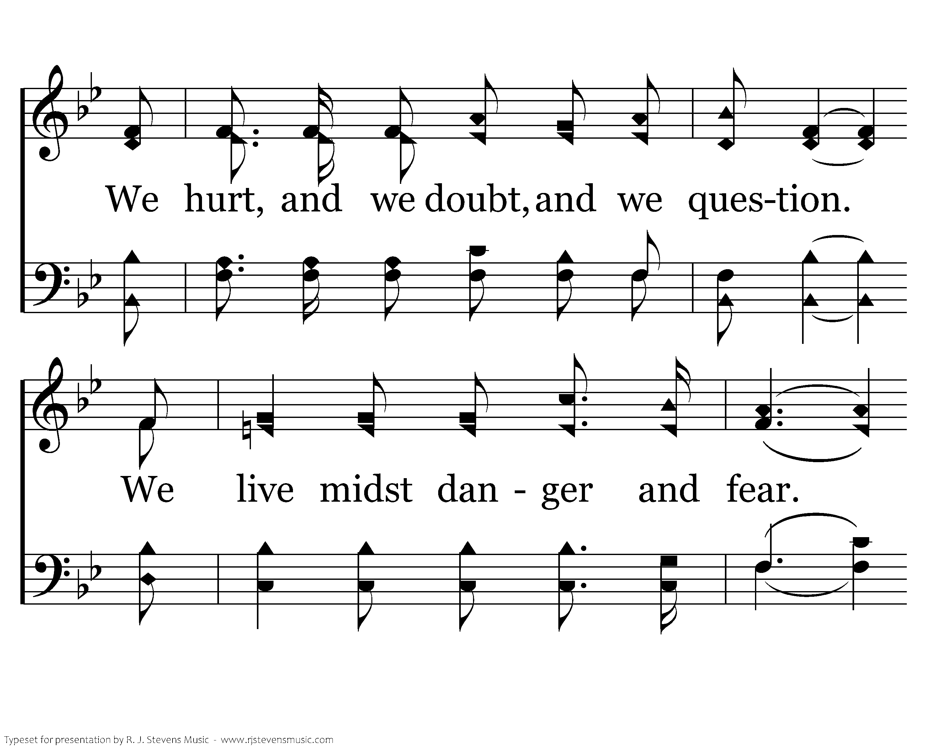 How long, O my Lord, will we cry out? How long, O my Lord, 'til You hear? We hurt, and we doubt, and we question. We live midst danger and fear. Your promises are everlasting. Your answer enlightens our days.