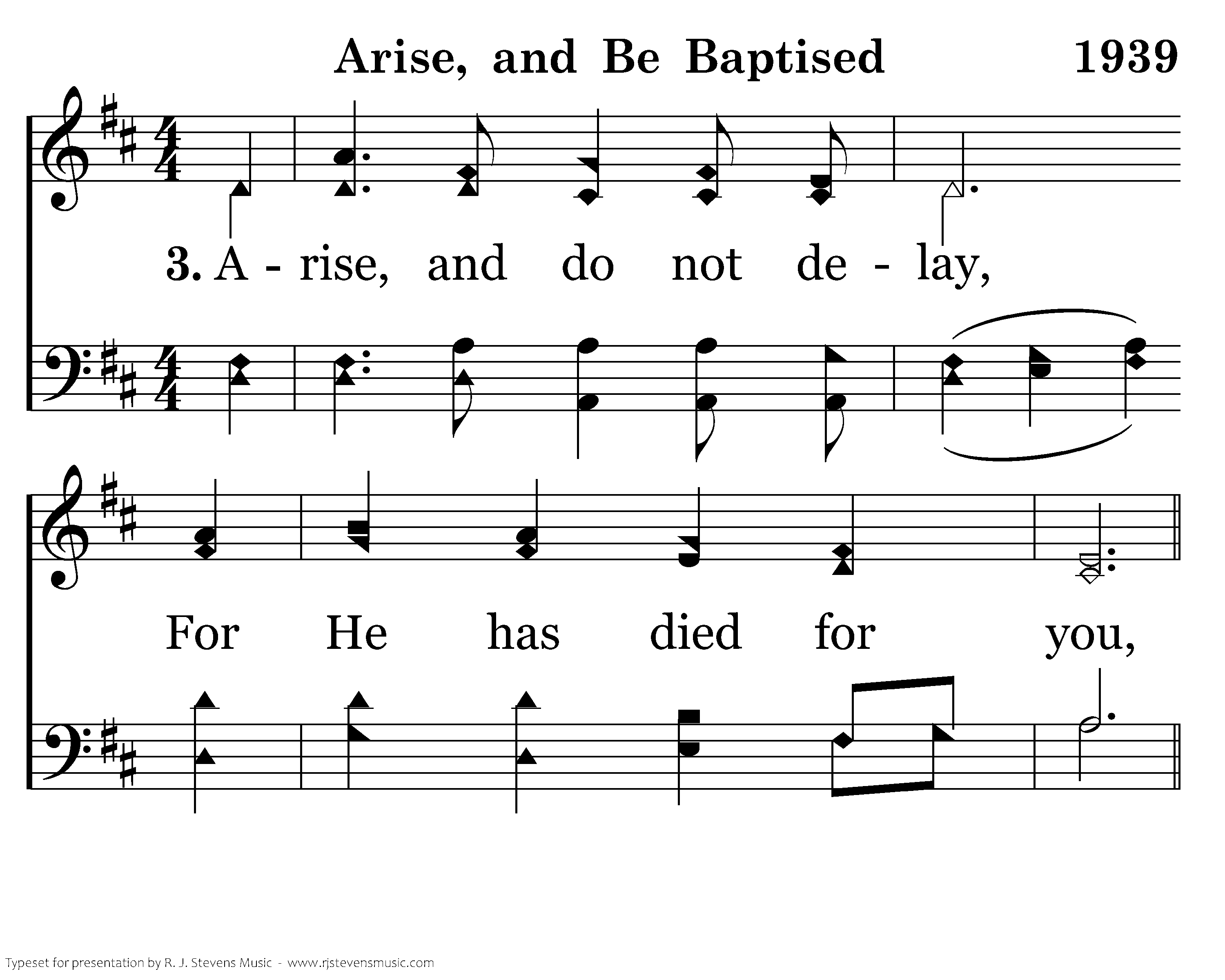 Arise, and do not delay, For He has died for you,