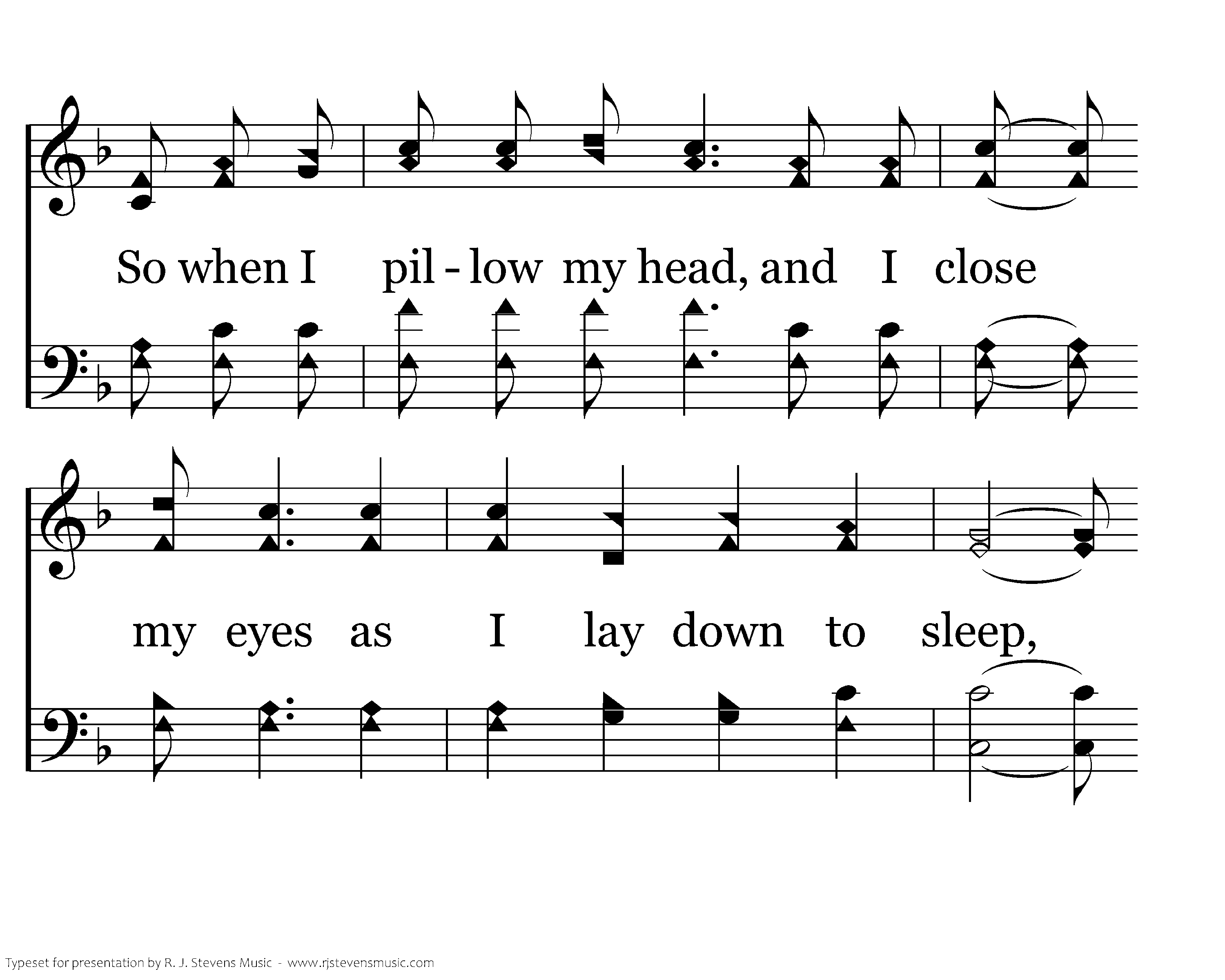 I do not want the guilt, I must feel free of guilt from all my past. I know You say it's true, I can be free and sleep will come at last. So when I pillow my head, and I close my eyes as I lay down to sleep, I know I'm safe with You, the guilt's removed and all is well at last.