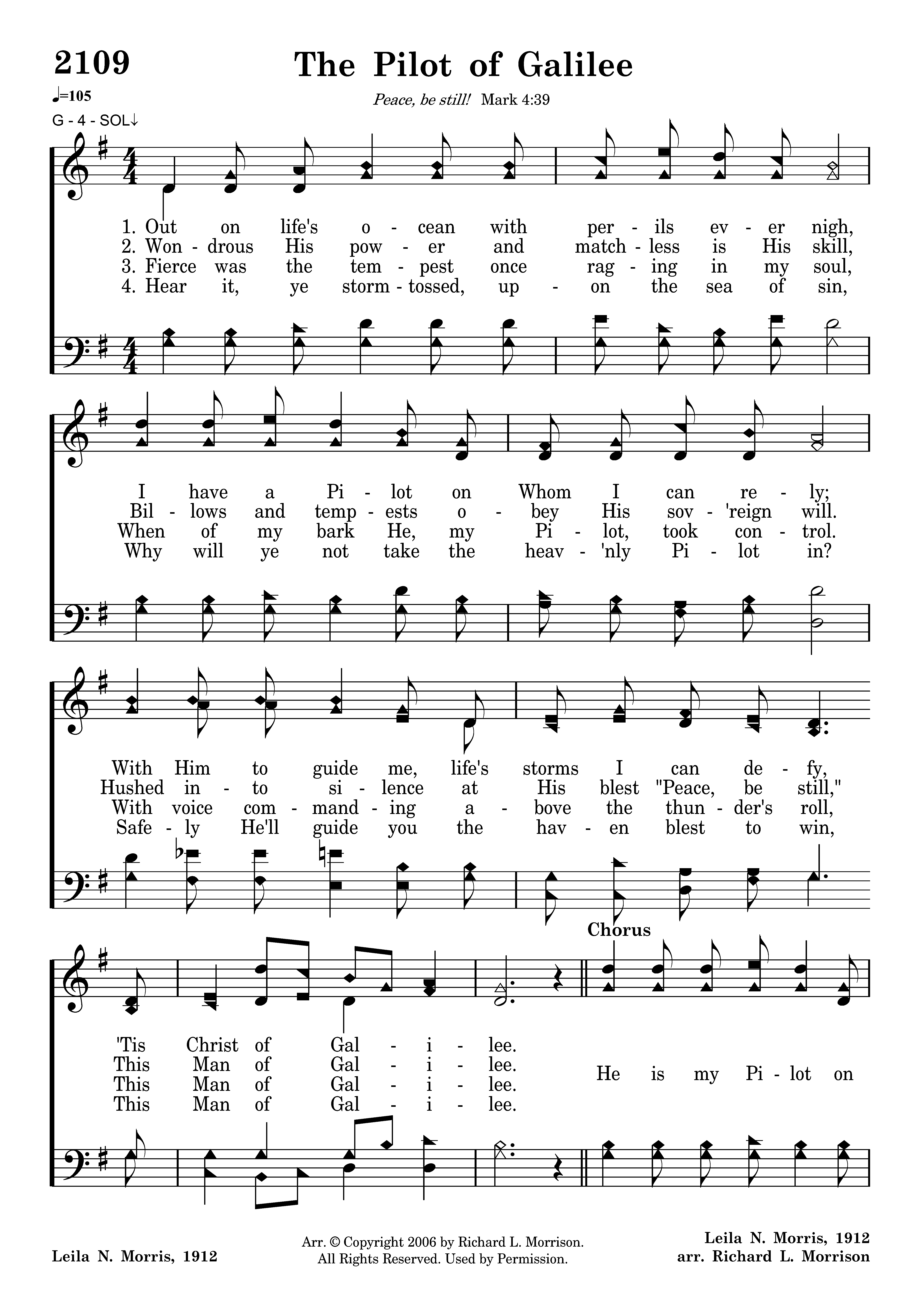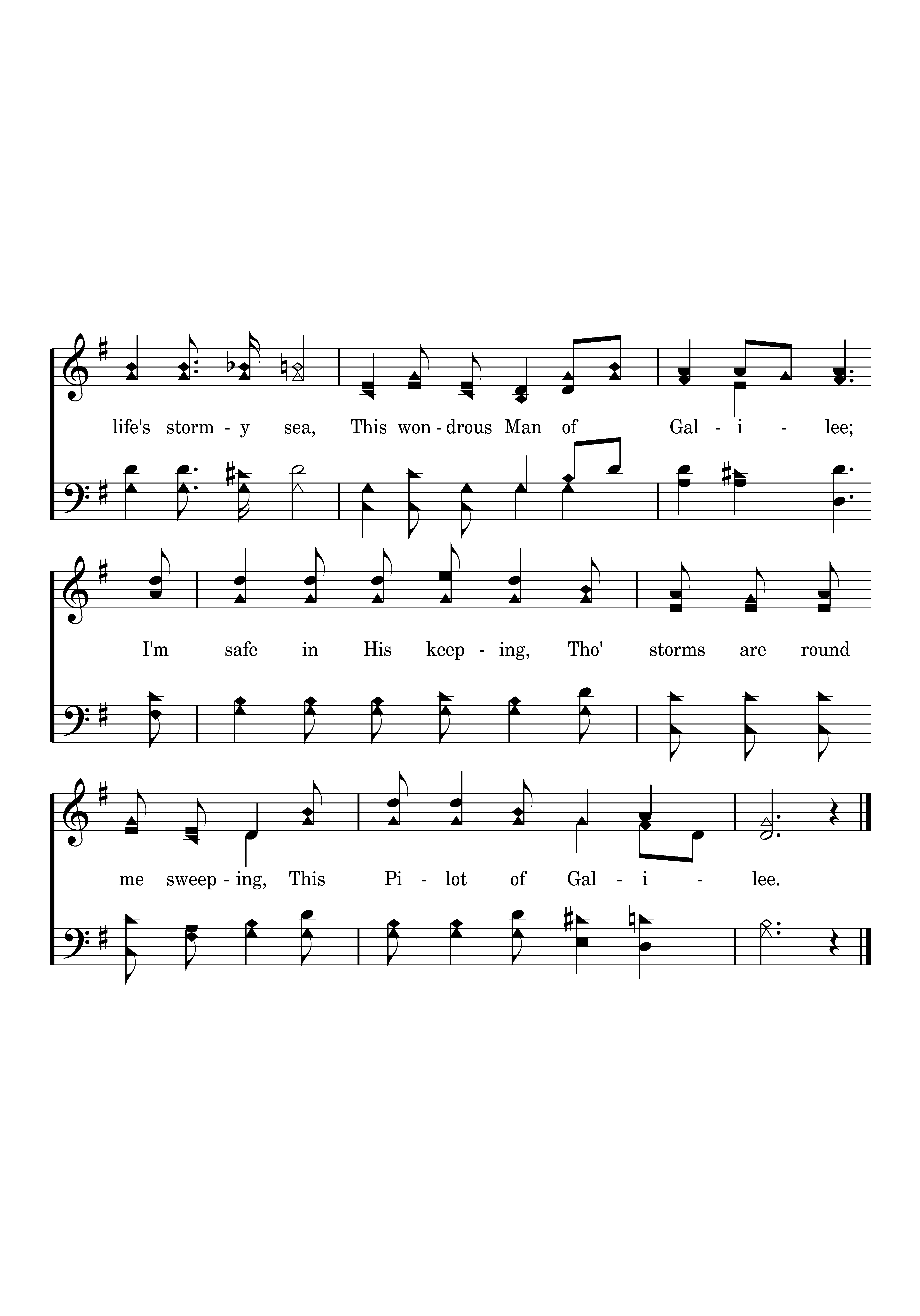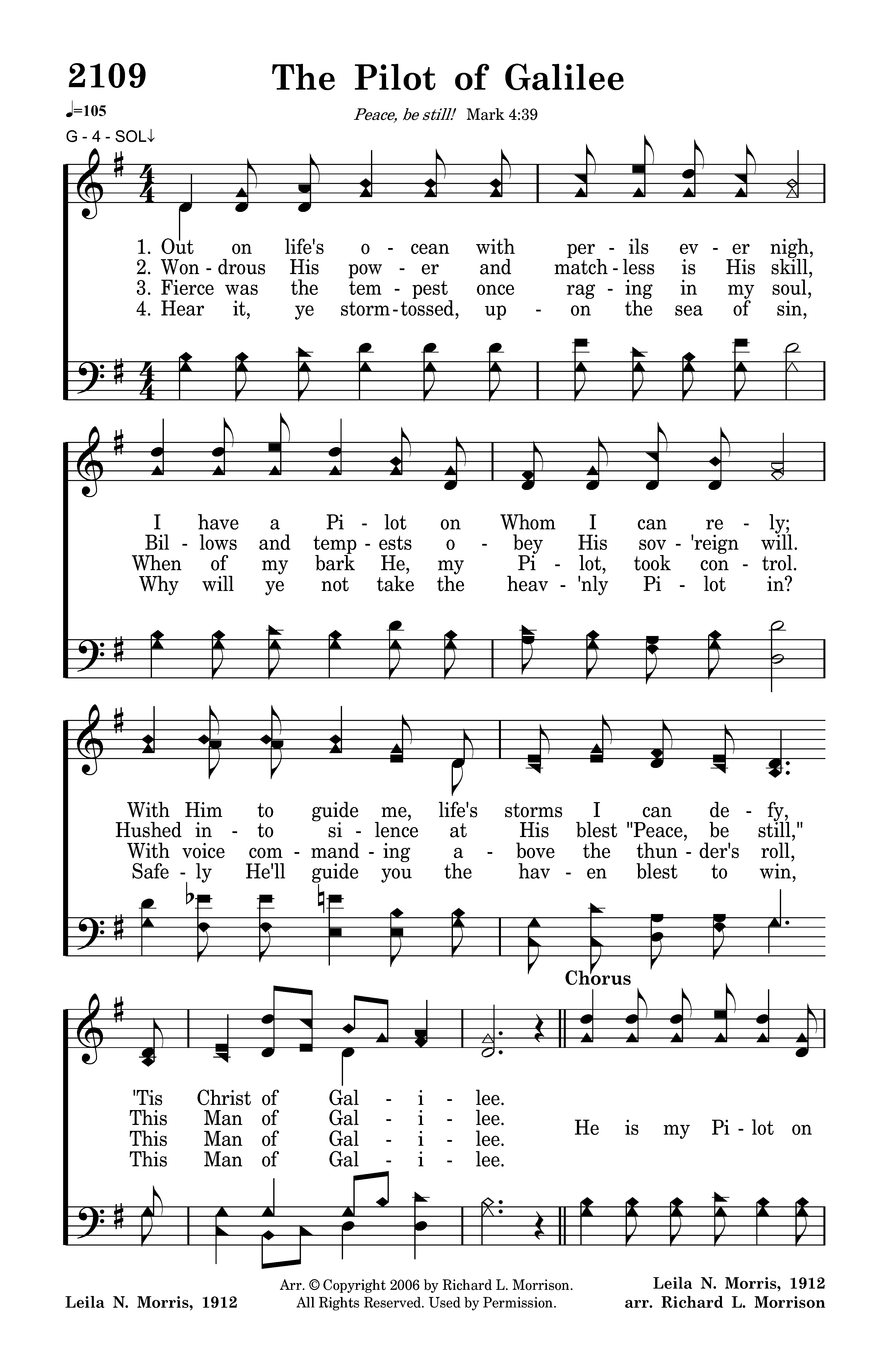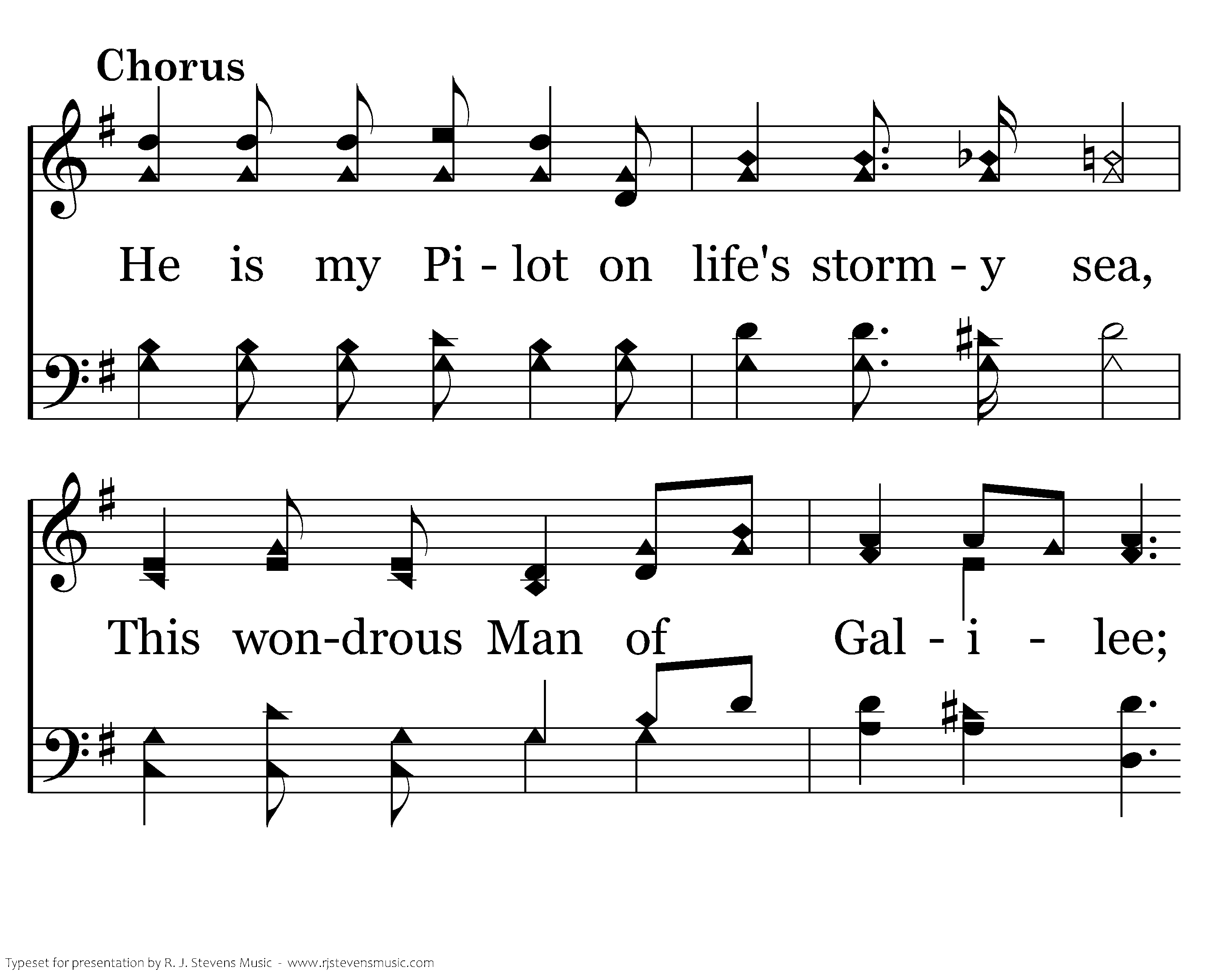 He is my Pilot on life's stormy sea, This wondrous Man of Galilee; I'm safe in His keeping, Tho' storms are round me sweeping, This Pilot of Galilee.