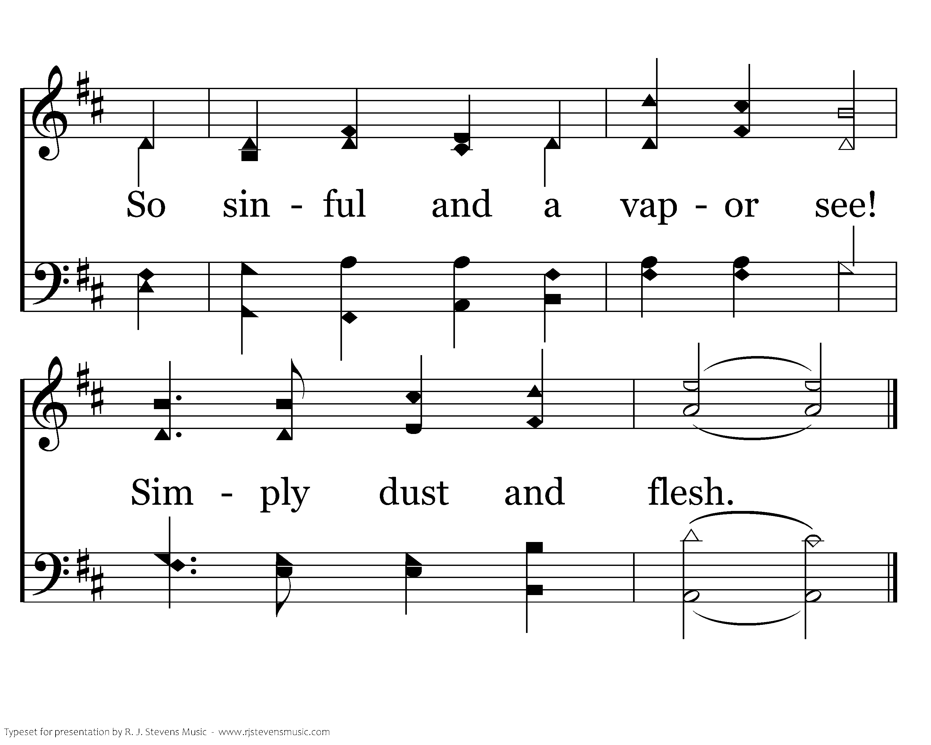 What is man to You? So feeble we, So foolish be, So sinful and a vapor see! Simply dust and flesh.