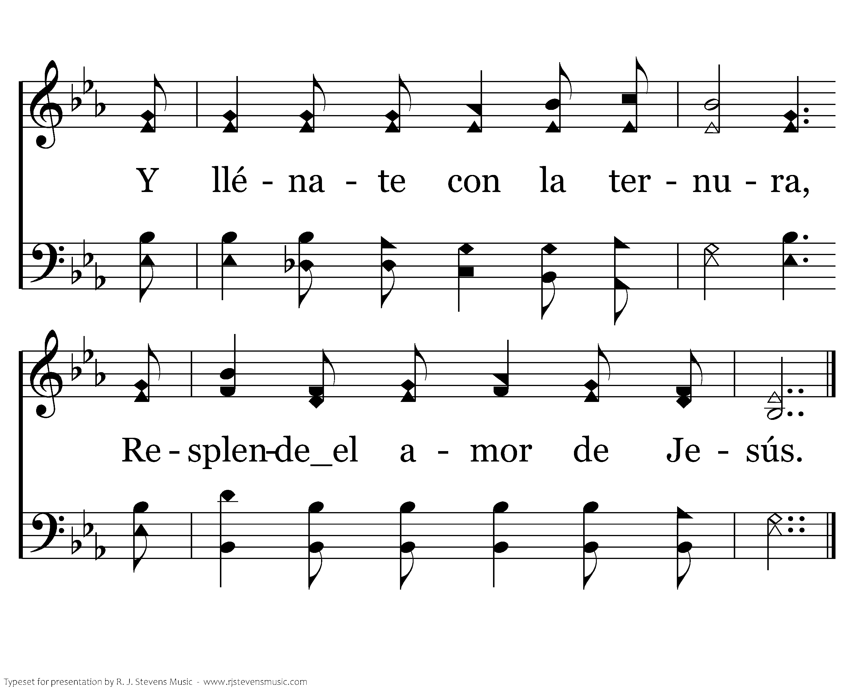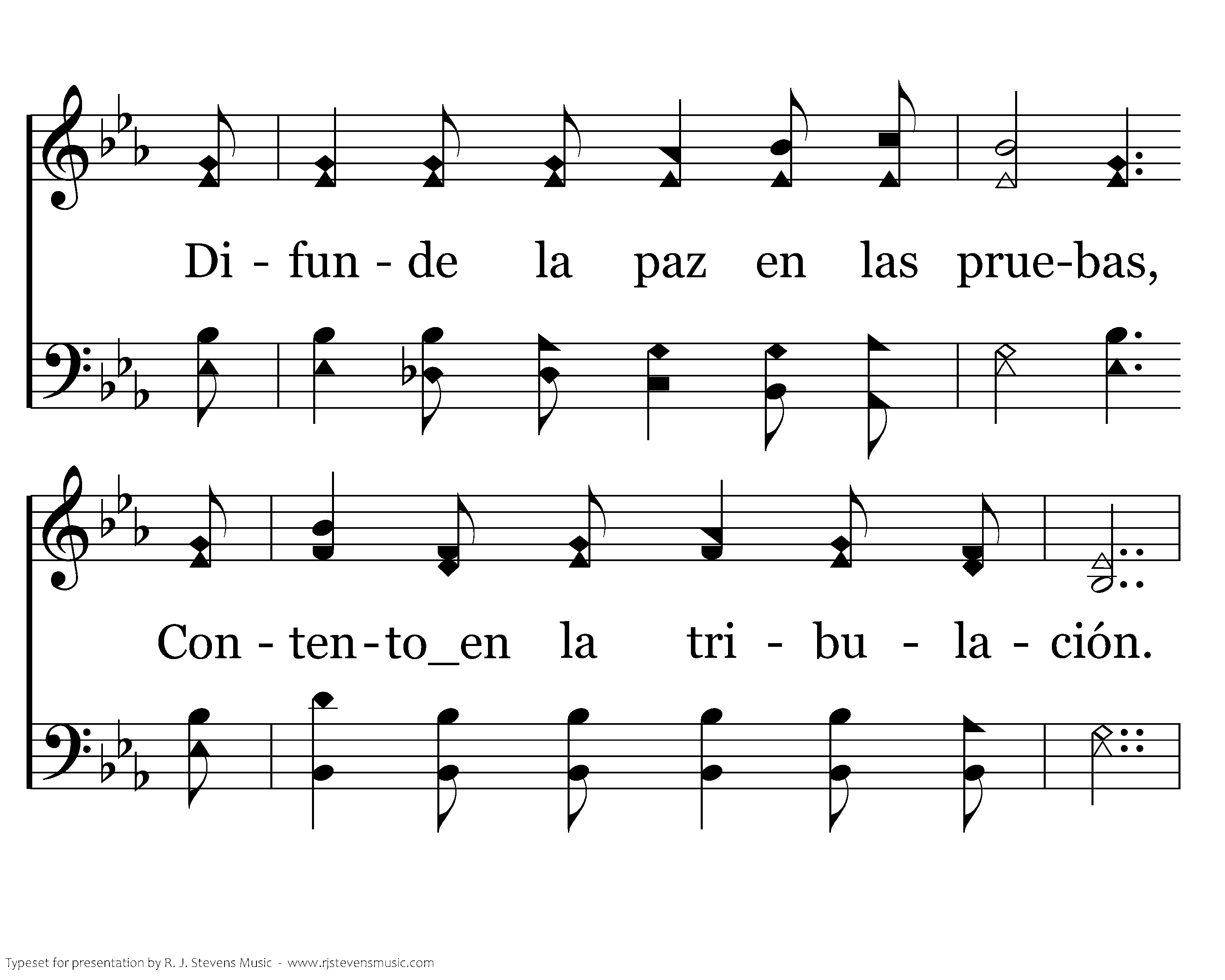 Sazona tu vida con gracias; Y mezclael amor de Jesús; Difunde la paz en las pruebas, Contentoen la tribulación. Re lum bra con el evangelio; Relle na de fi de li dad; Espar ce se mi llas del rei no; Vertien do la san ta ver dad.