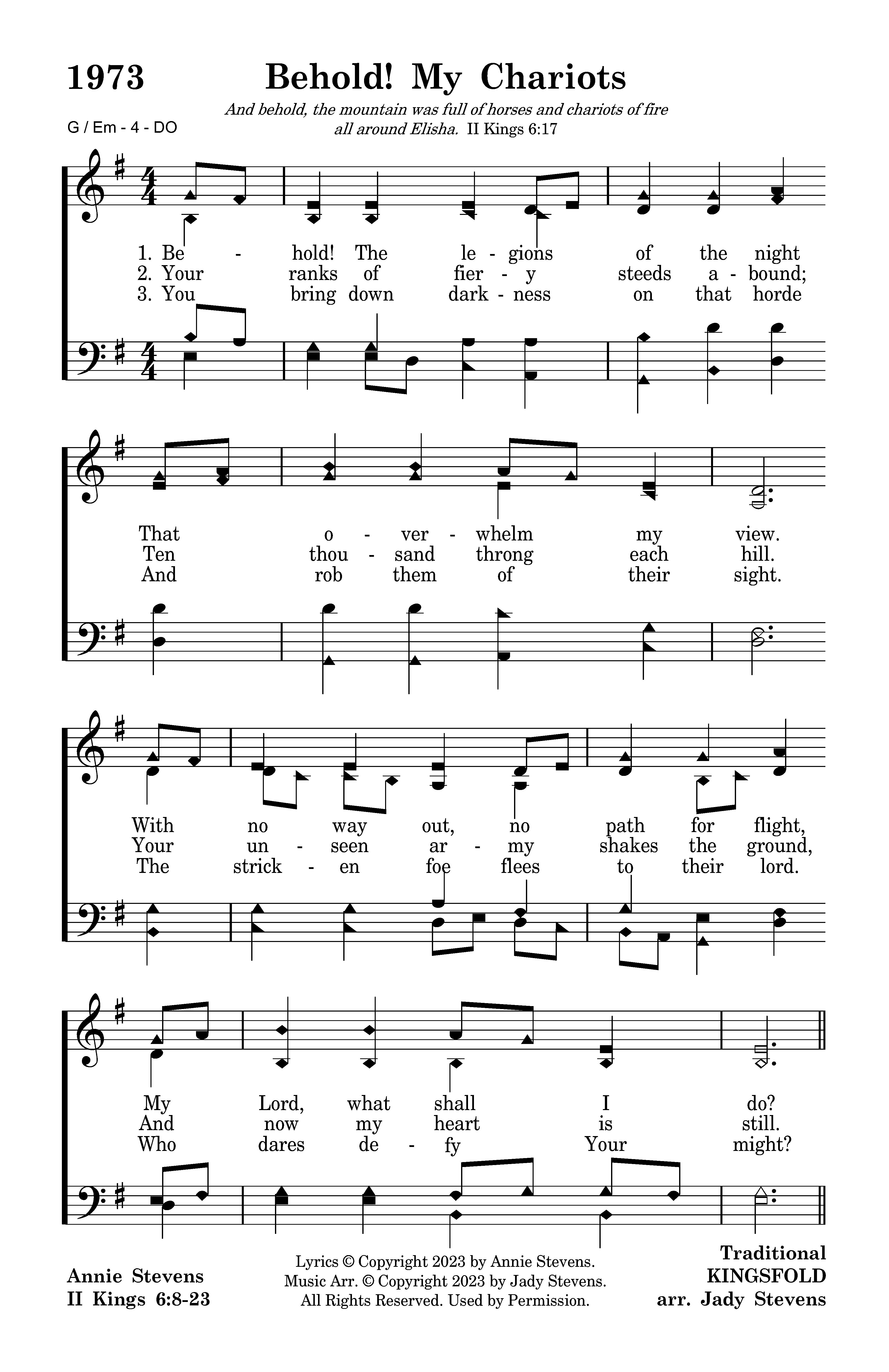 - Lyrics © Copyright 2023 by Annie Stevens. Music Arr. © Copyright 2023 by Jady Stevens. All Rights Reserved. Used by Permission.