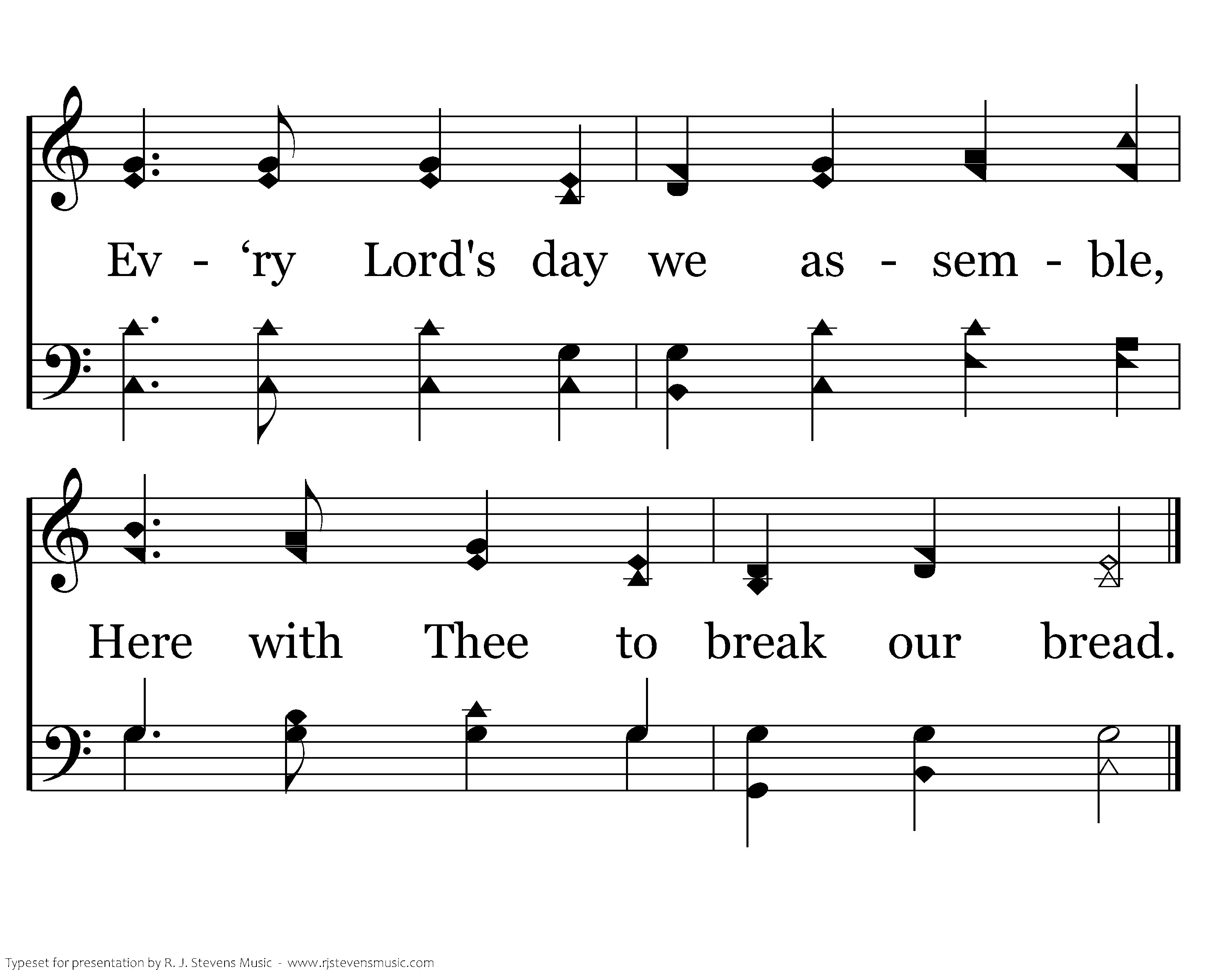 Lord, within Thy holy temple, At this table Thou hast spread; Ev‘ry Lord's day we assemble, Here with Thee to break our bread.