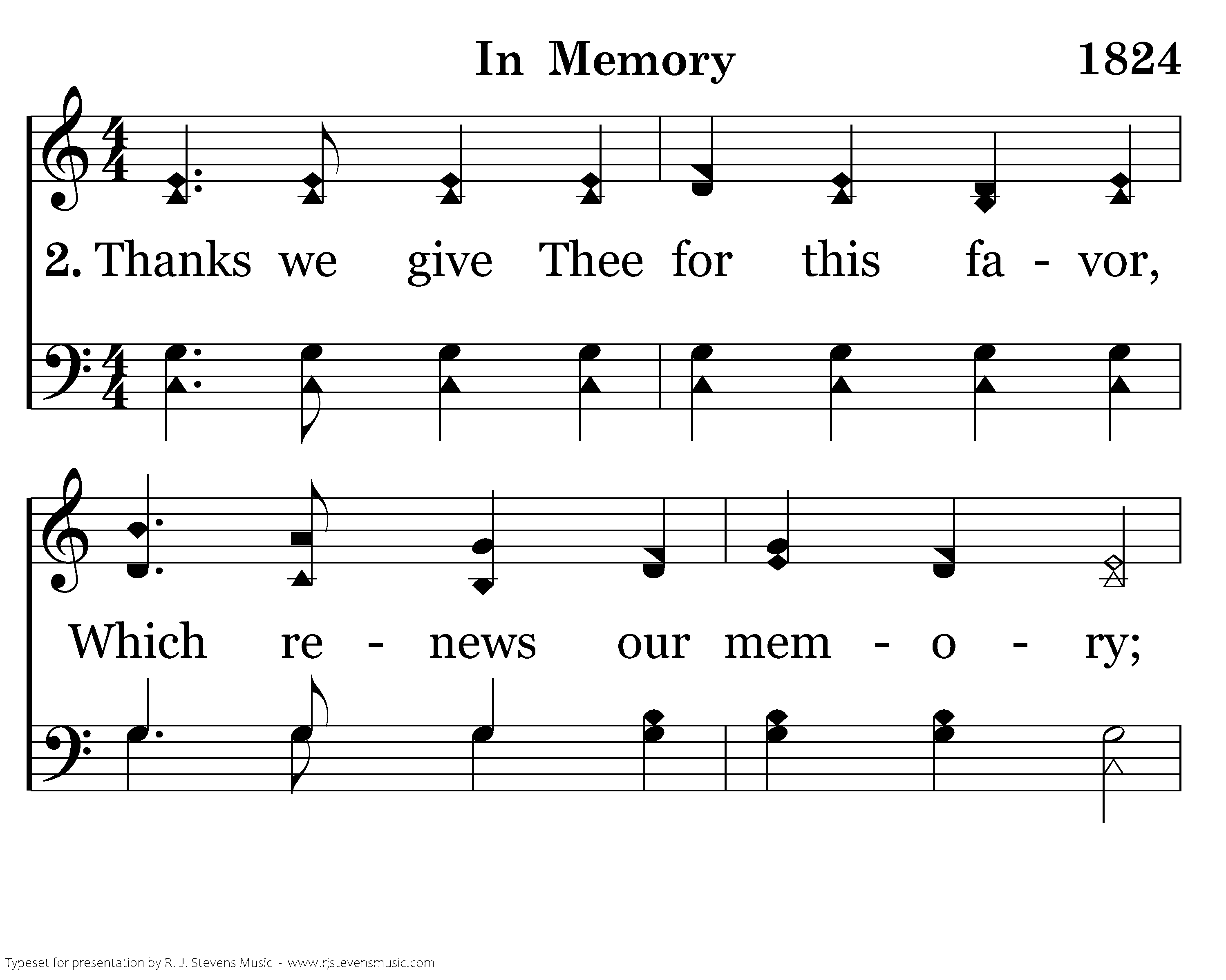 Thanks we give Thee for this favor, Which renews our memory; To discern our dying Savior, on the cross of Calvary.