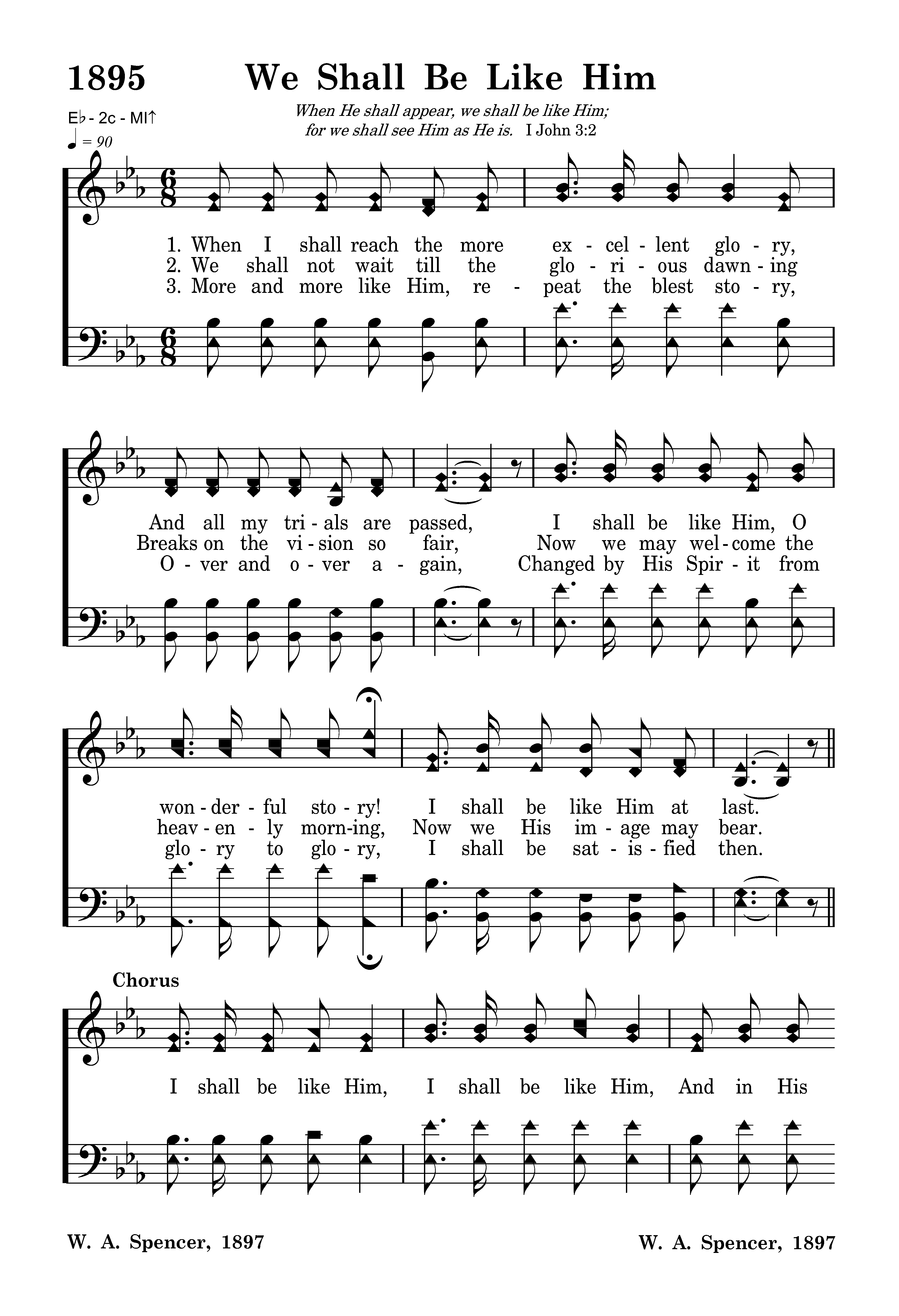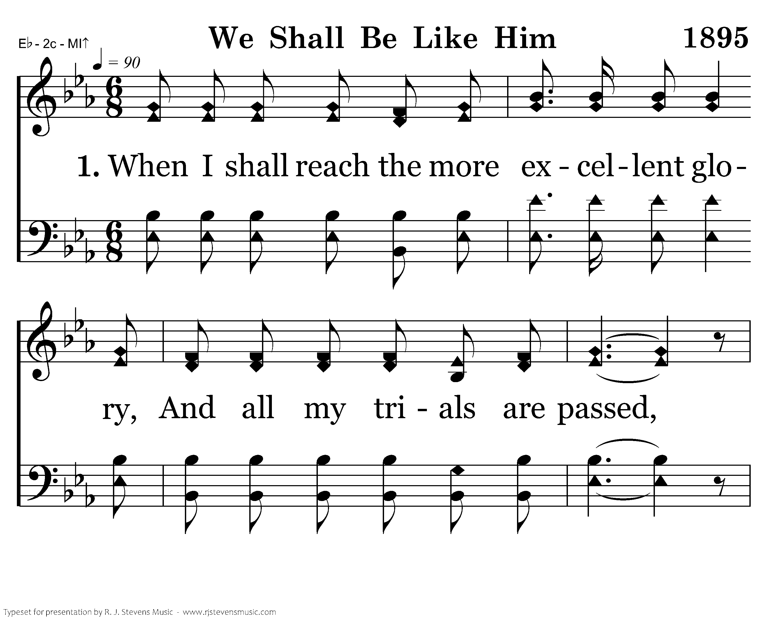 When I shall reach the more excellent glory, And all my trials are passed, I shall be like Him, O wonderful story! I shall be like Him at last.