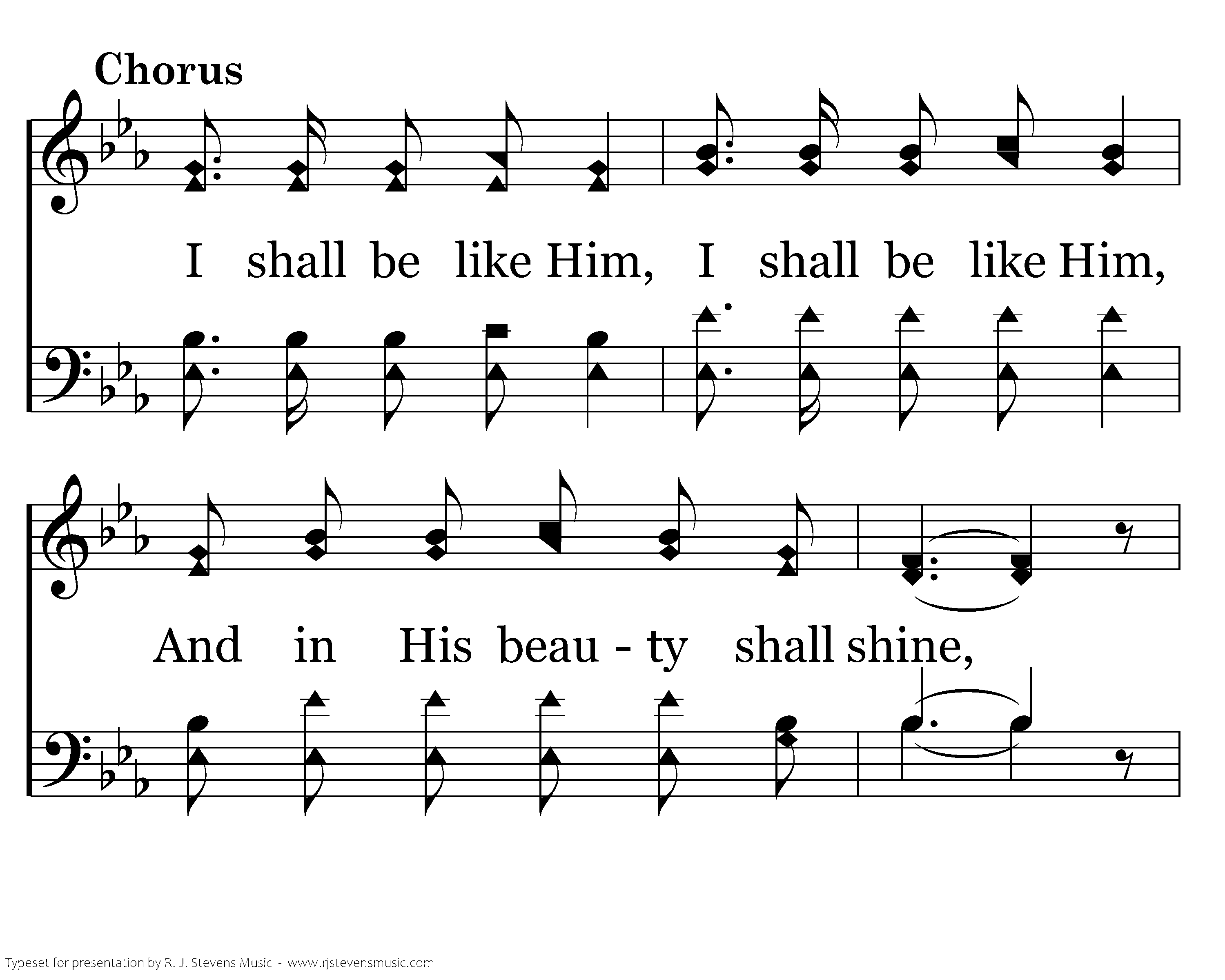I shall be like Him, I shall be like Him, And in His beauty shall shine, I shall be like Him, wondrously like Him, Jesus, my Savior divine.